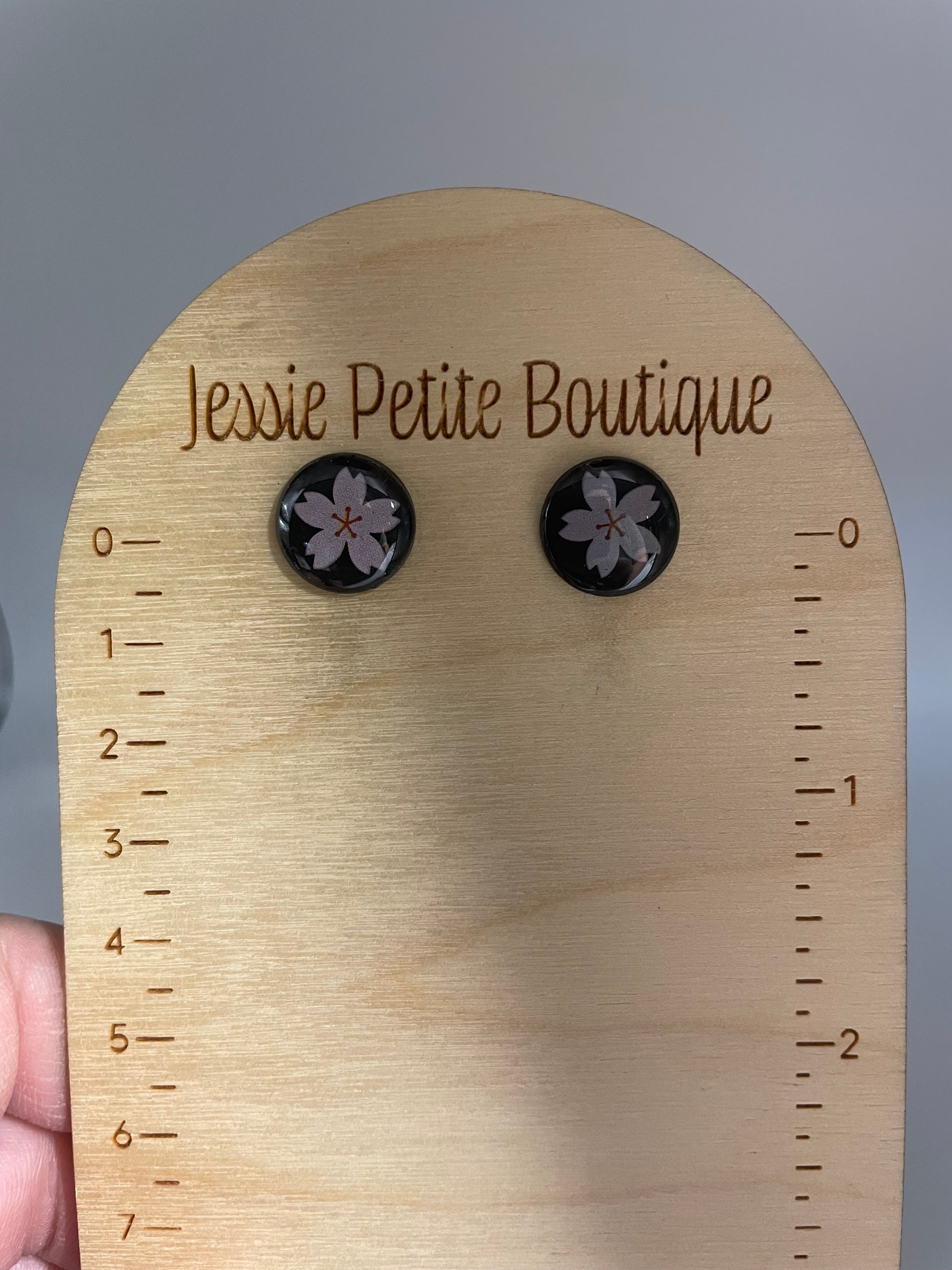 Cherry Blossom Resin Stud Earrings – Stainless Steel