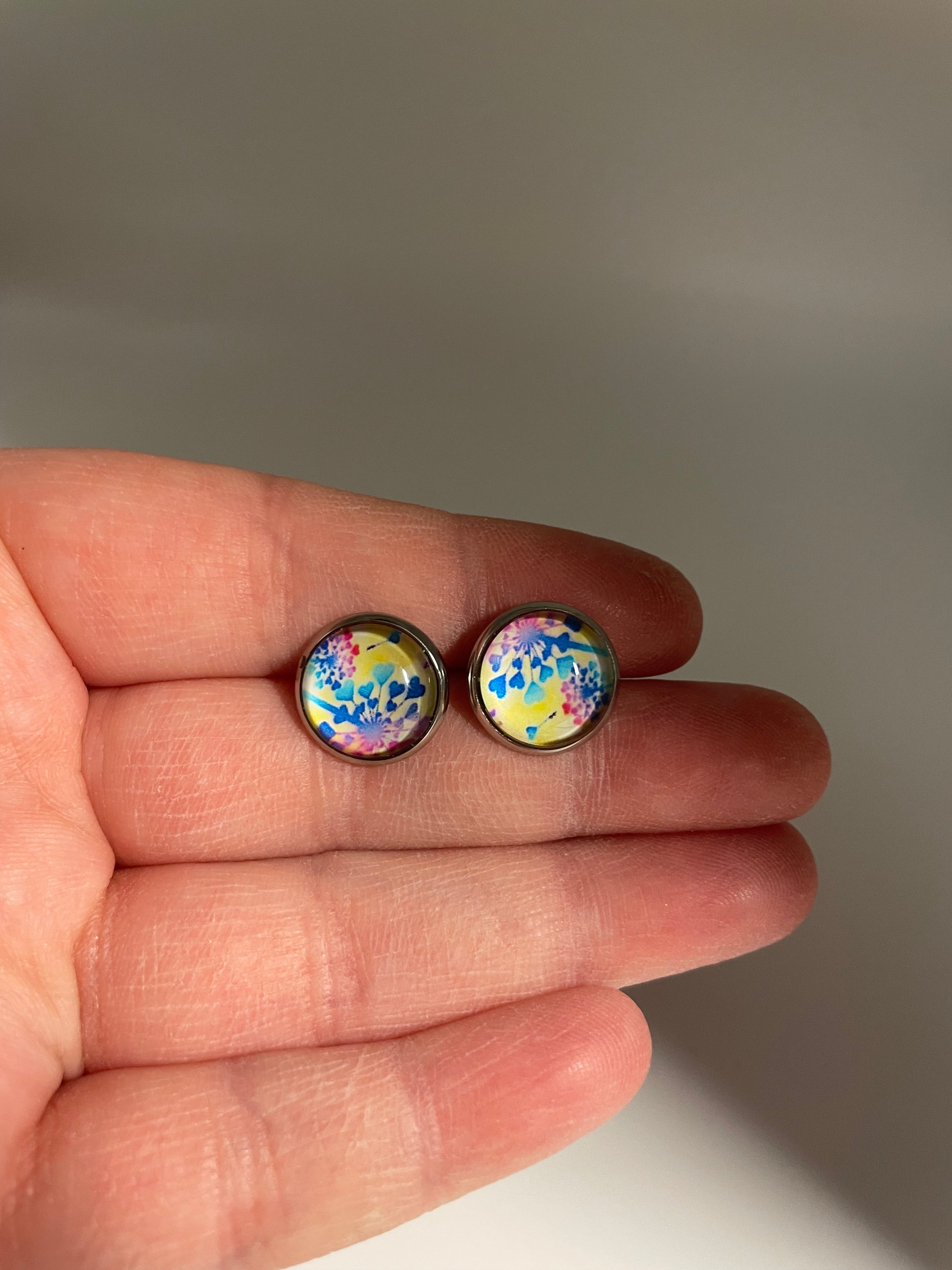 Colorful Dandelion Glass Cabochon Stud Earrings – Stainless Steel