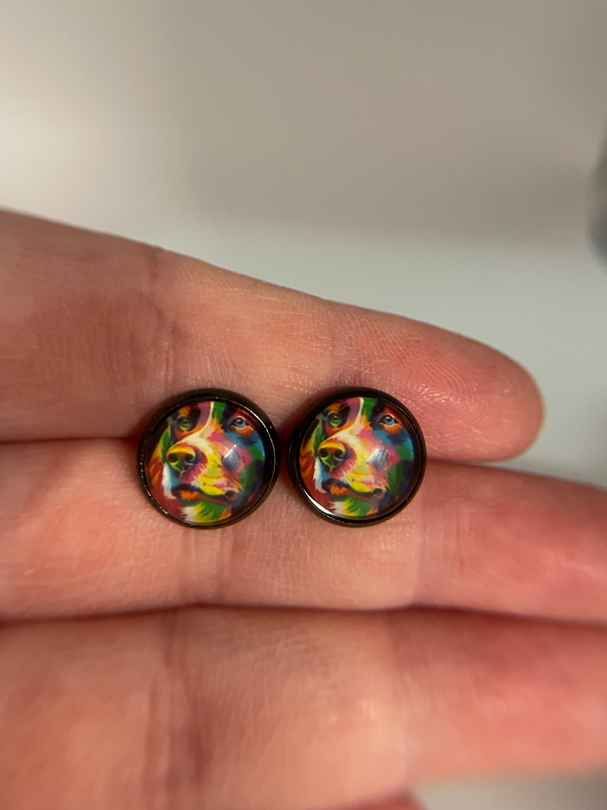 Colorful Dog Stud Earrings-Stainless Steel+Nickel Free