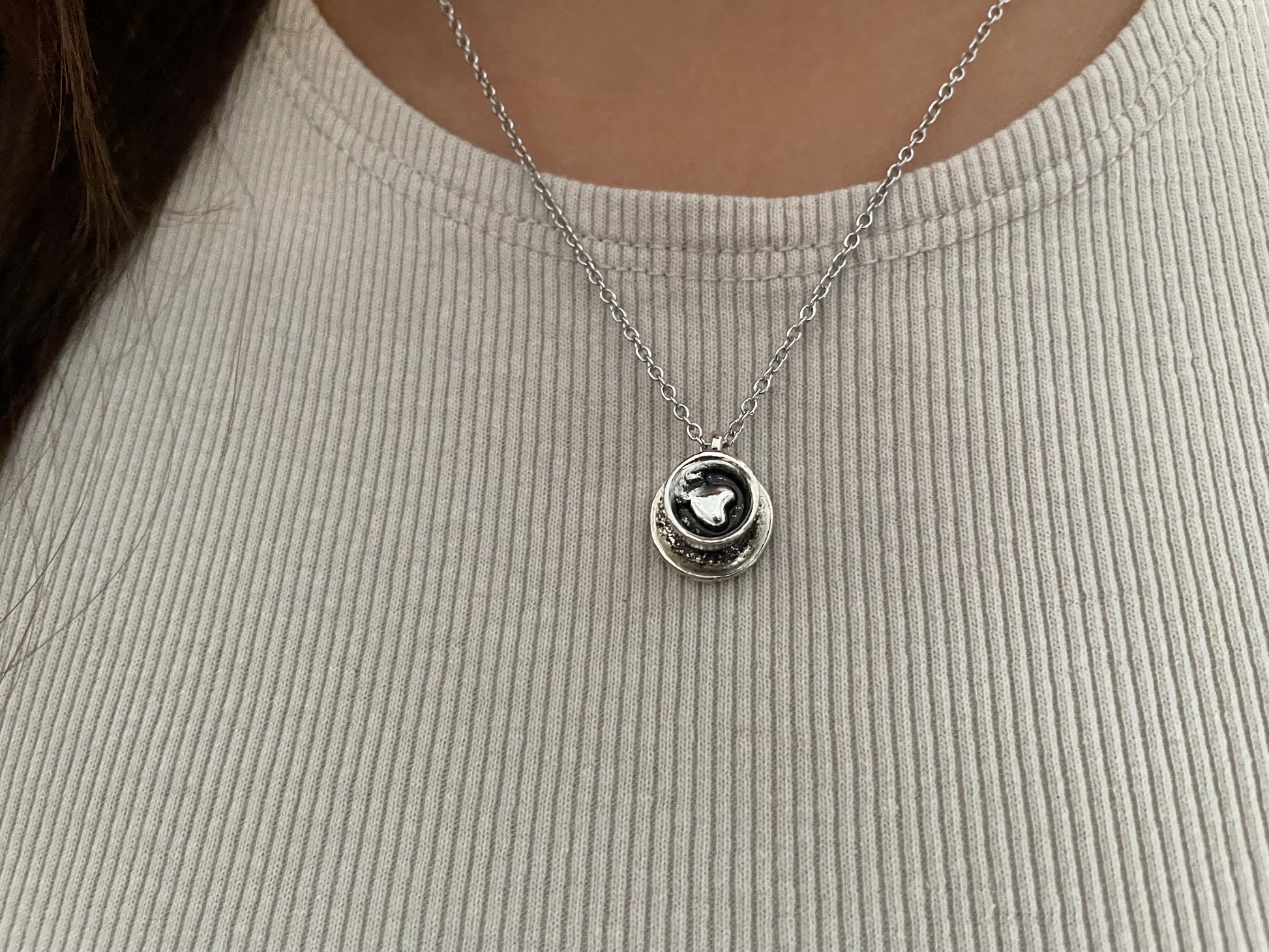This Cup of Love Necklace is the perfect piece for coffee lovers and romantics alike. The petite silver pendant features an adorable cup of coffee with a heart detail, crafted from stainless steel and nickel-free alloy to ensure durability and a polished finish. The 17-inch chain includes an extension for flexible length options, adding a sweet and stylish charm to any outfit.