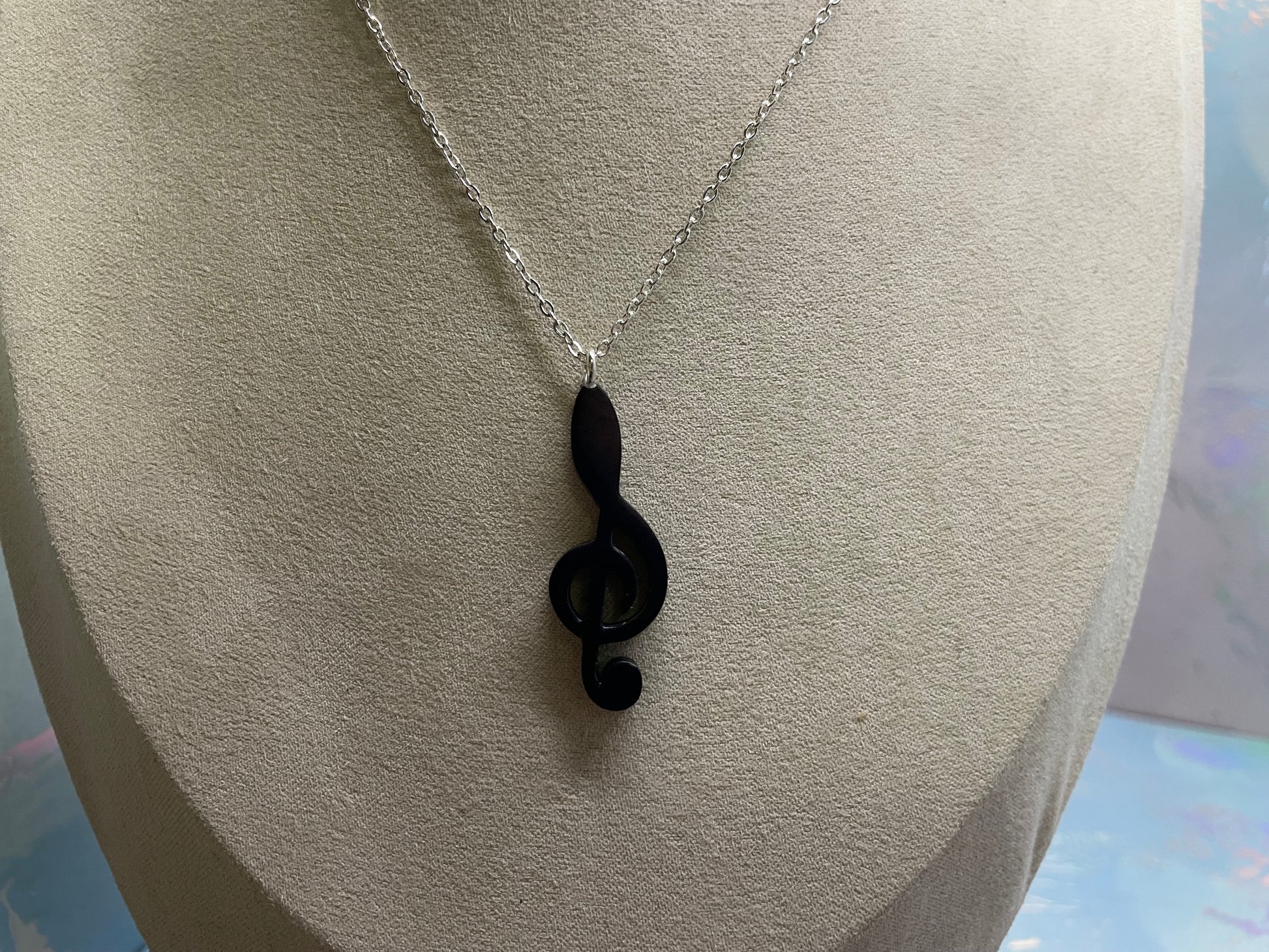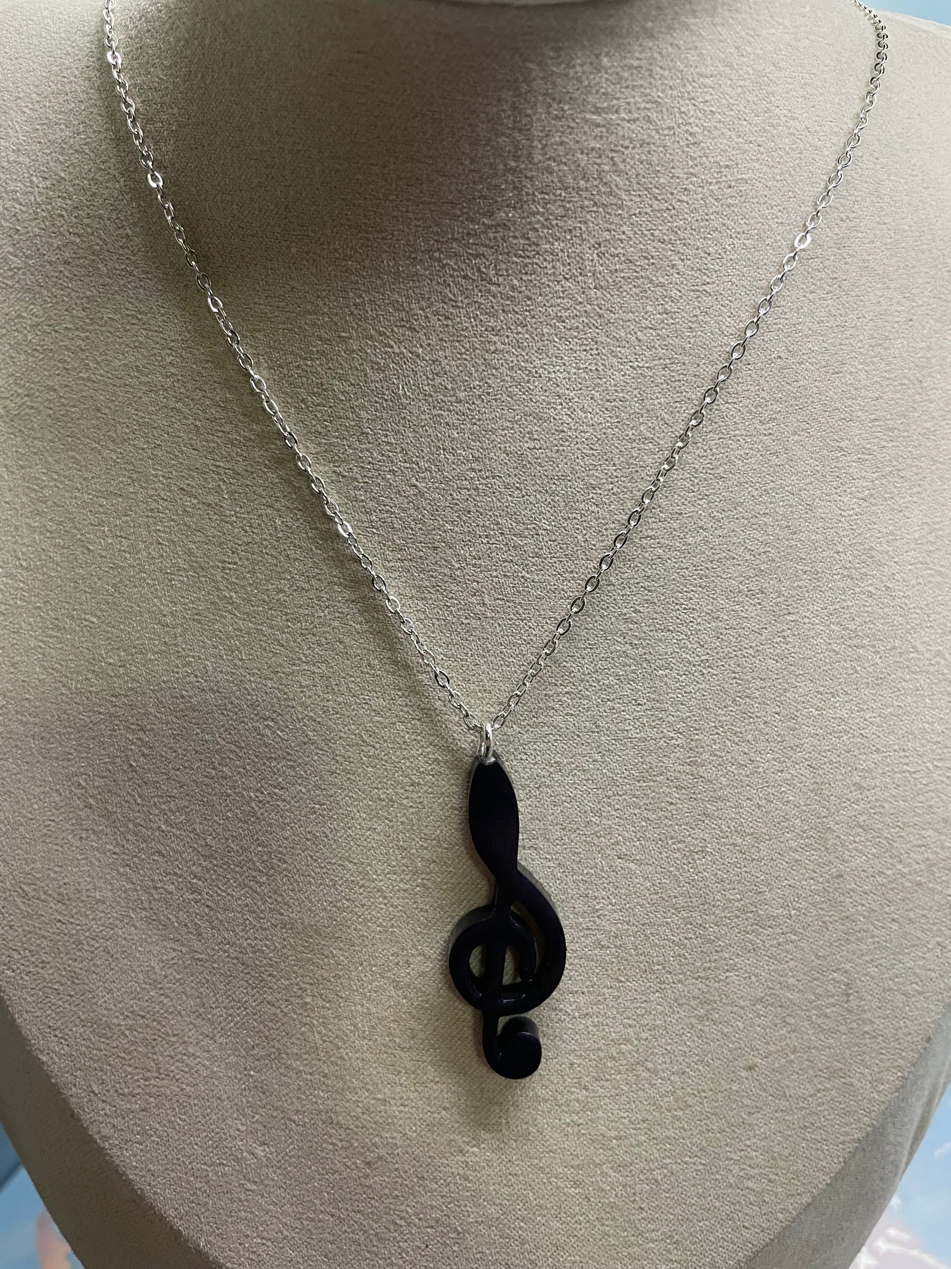 This minimalist necklace features a sleek treble clef pendant with a smooth, sculptural silhouette. Finished in a deep dark blue with subtle depth, it offers a refined nod to music lovers while remaining understated and easy to wear every day.