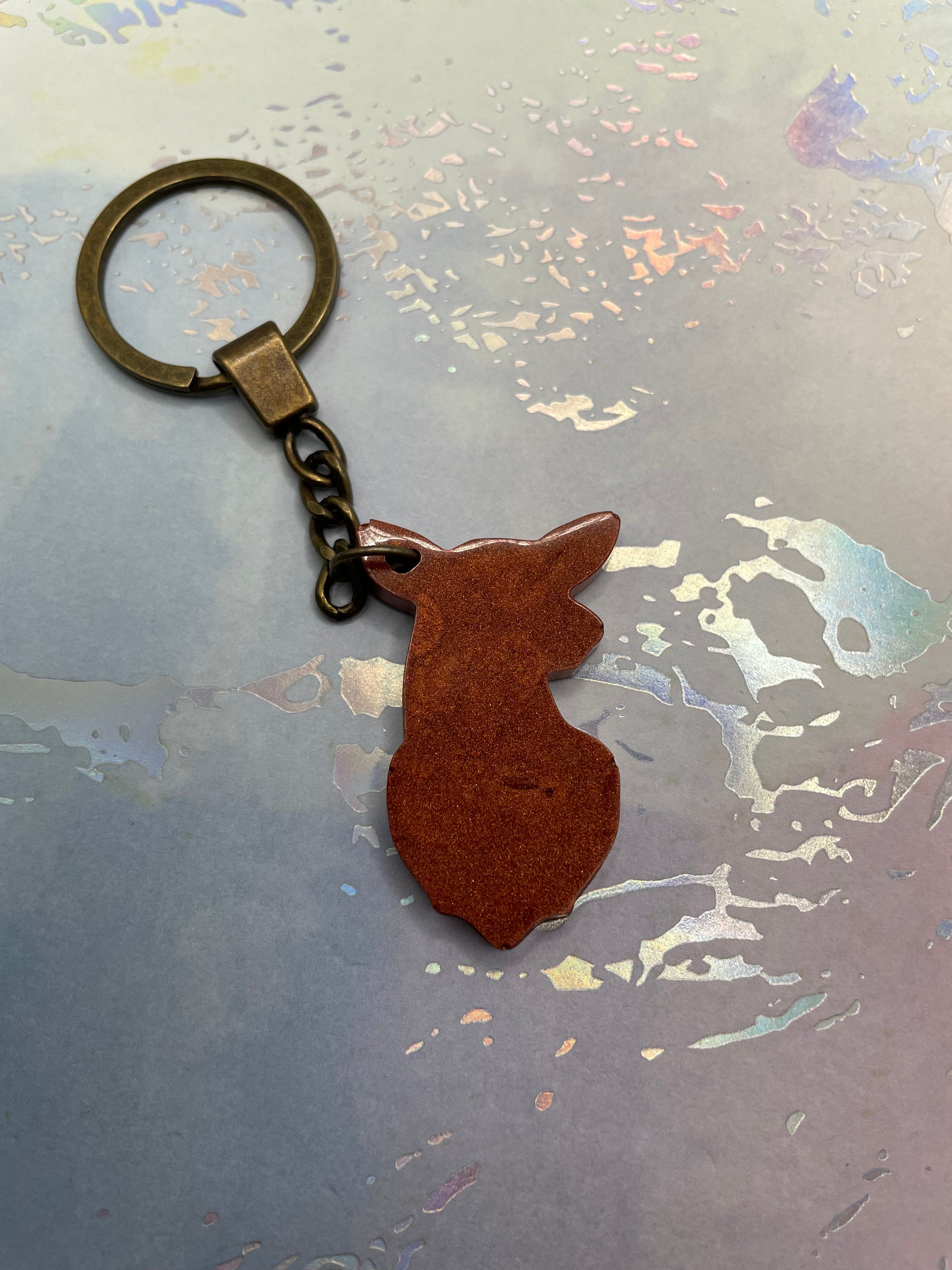 This elegant deer-shaped keychain is handcrafted from resin and finished with mica powder, giving it a warm, subtle shimmer. Its clean silhouette and earthy tones make it a timeless accessory, perfect for nature lovers and those who appreciate minimalist, handcrafted details.