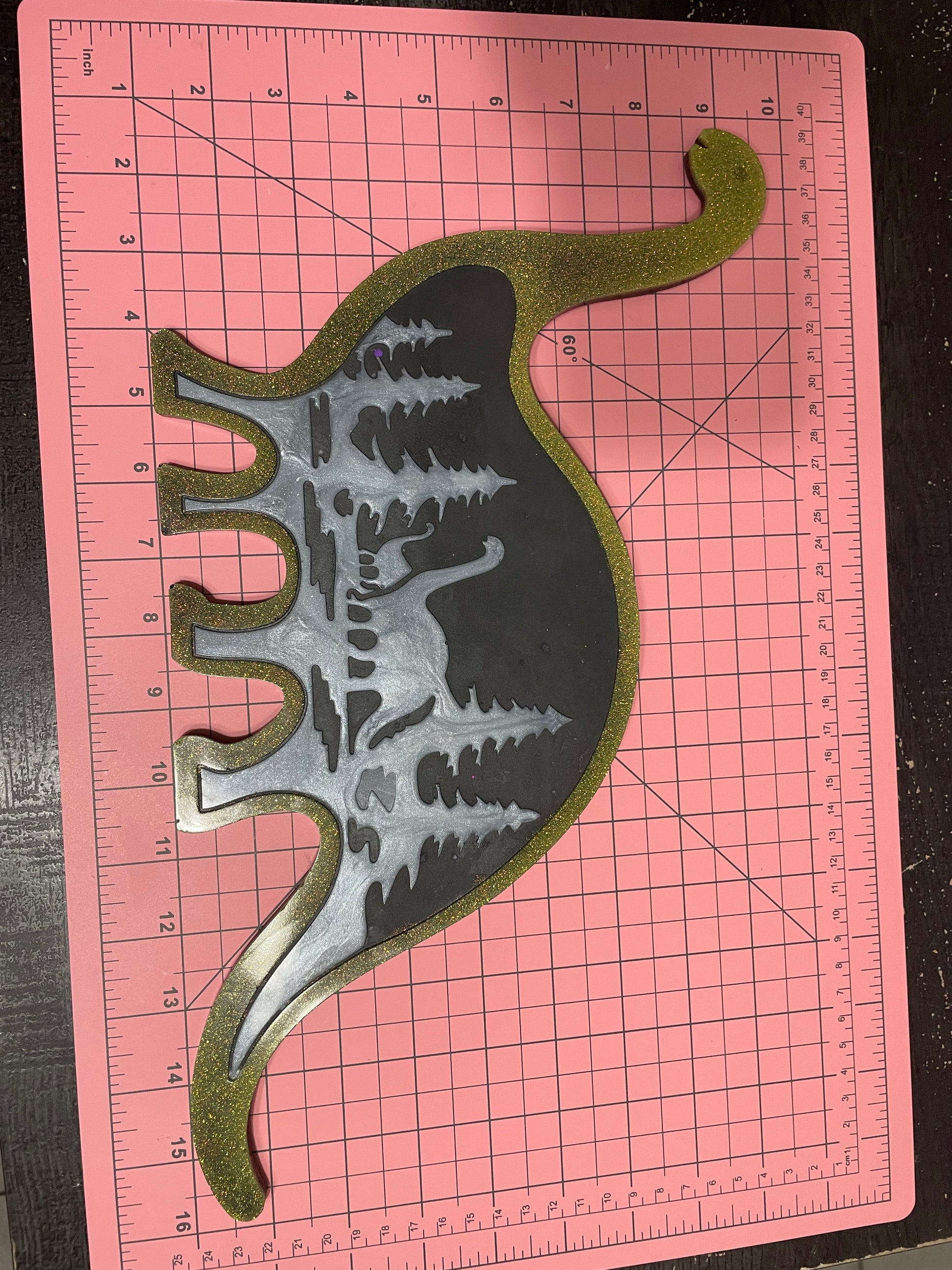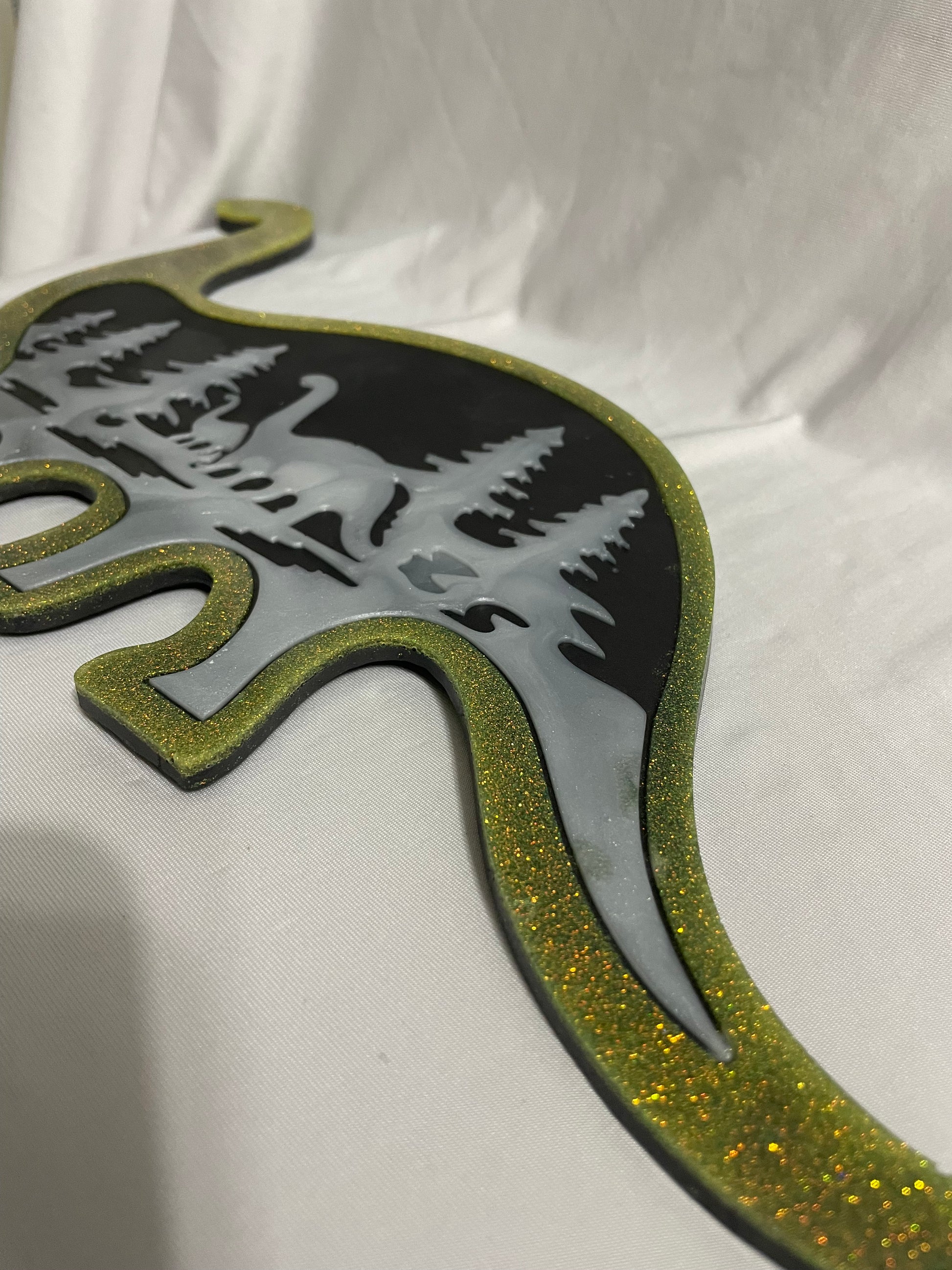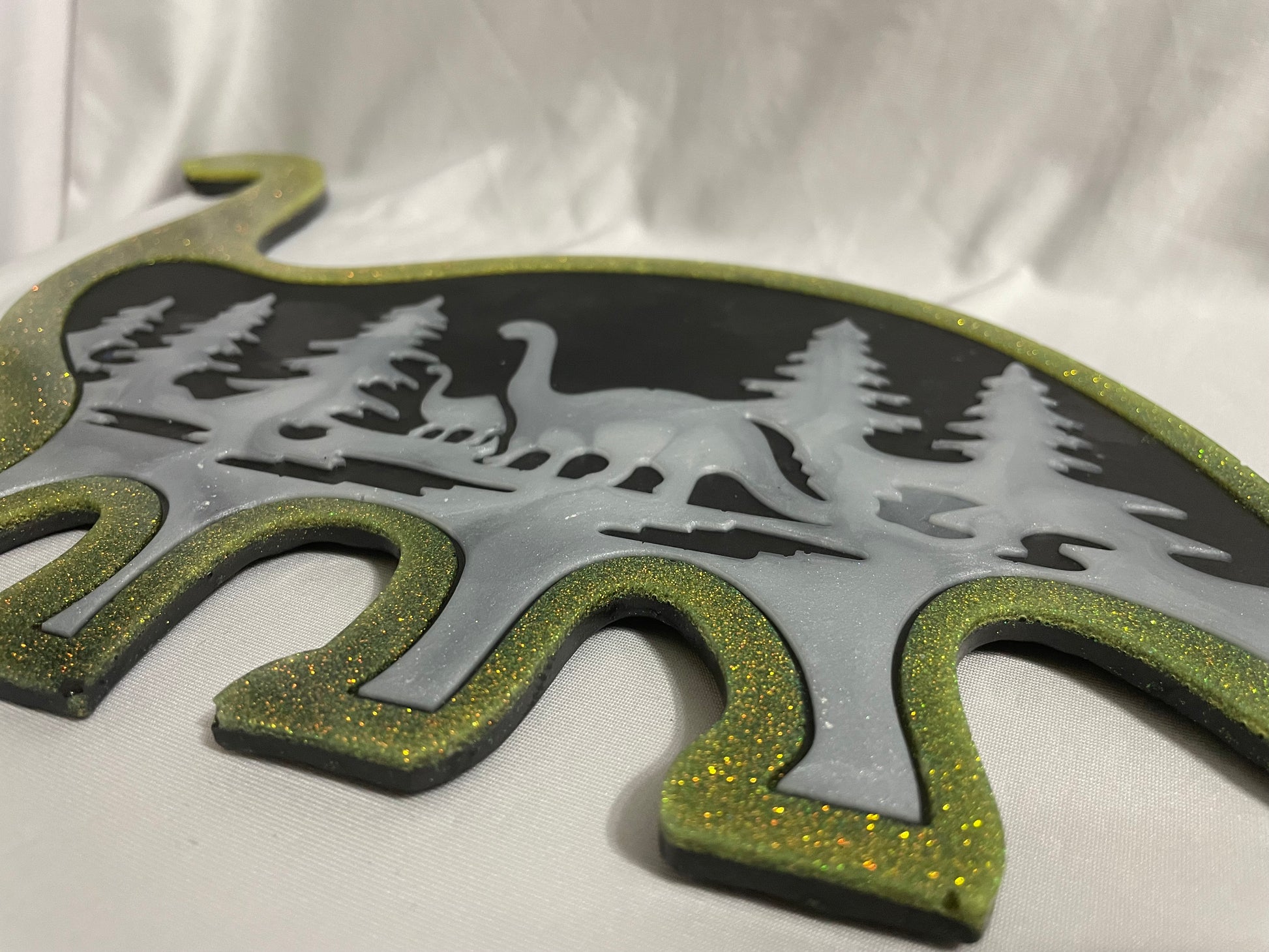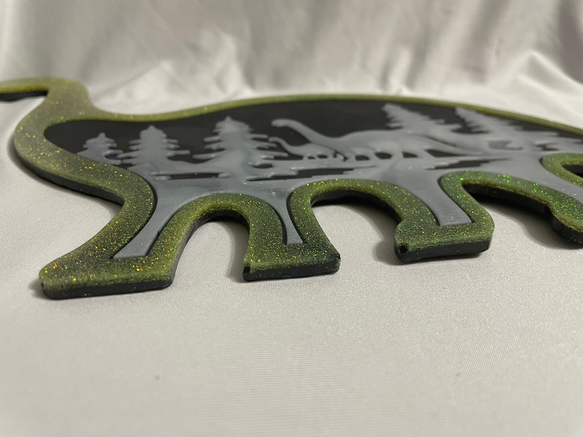 Bring prehistoric charm to any room with this Dinosaur Wall Art! Shaped like a gentle long-necked dinosaur, this piece is filled with a dreamy forest scene.