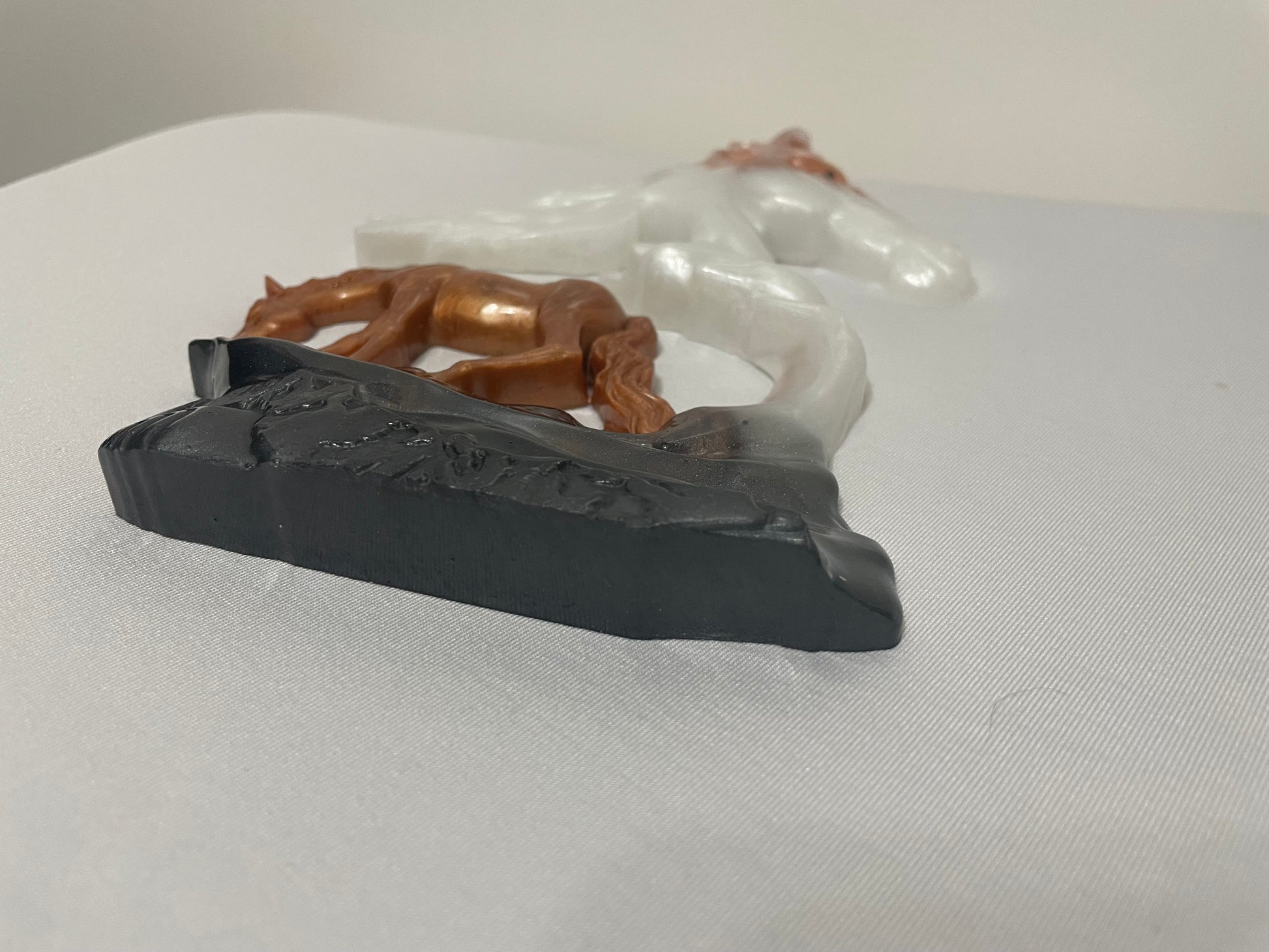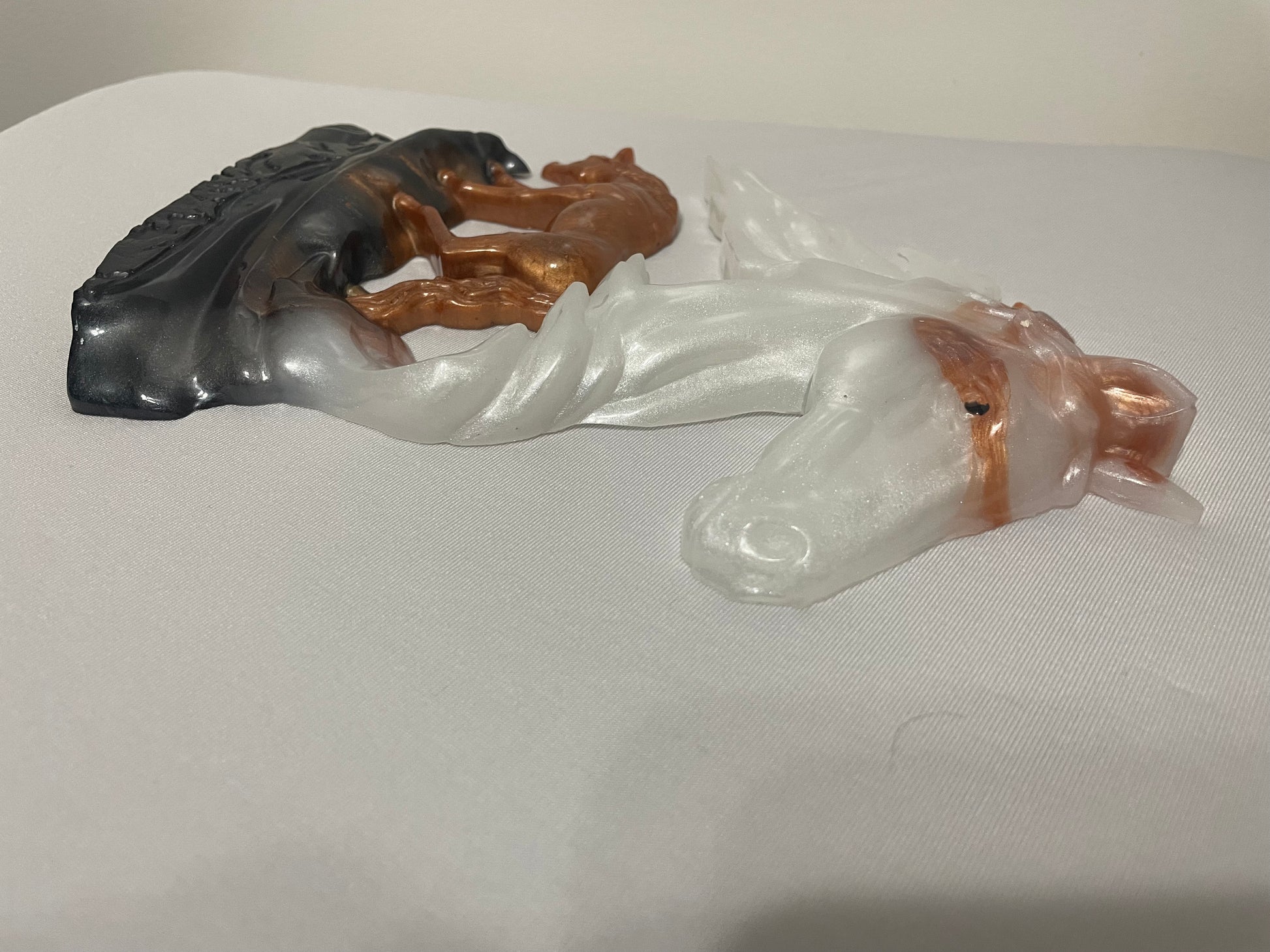 Add a touch of elegance and strength to your space with this handmade resin wall decoration featuring two beautifully detailed horses. 🐎 Each piece captures the grace and motion of these majestic animals, highlighted by shimmering mica powder for a refined finish.