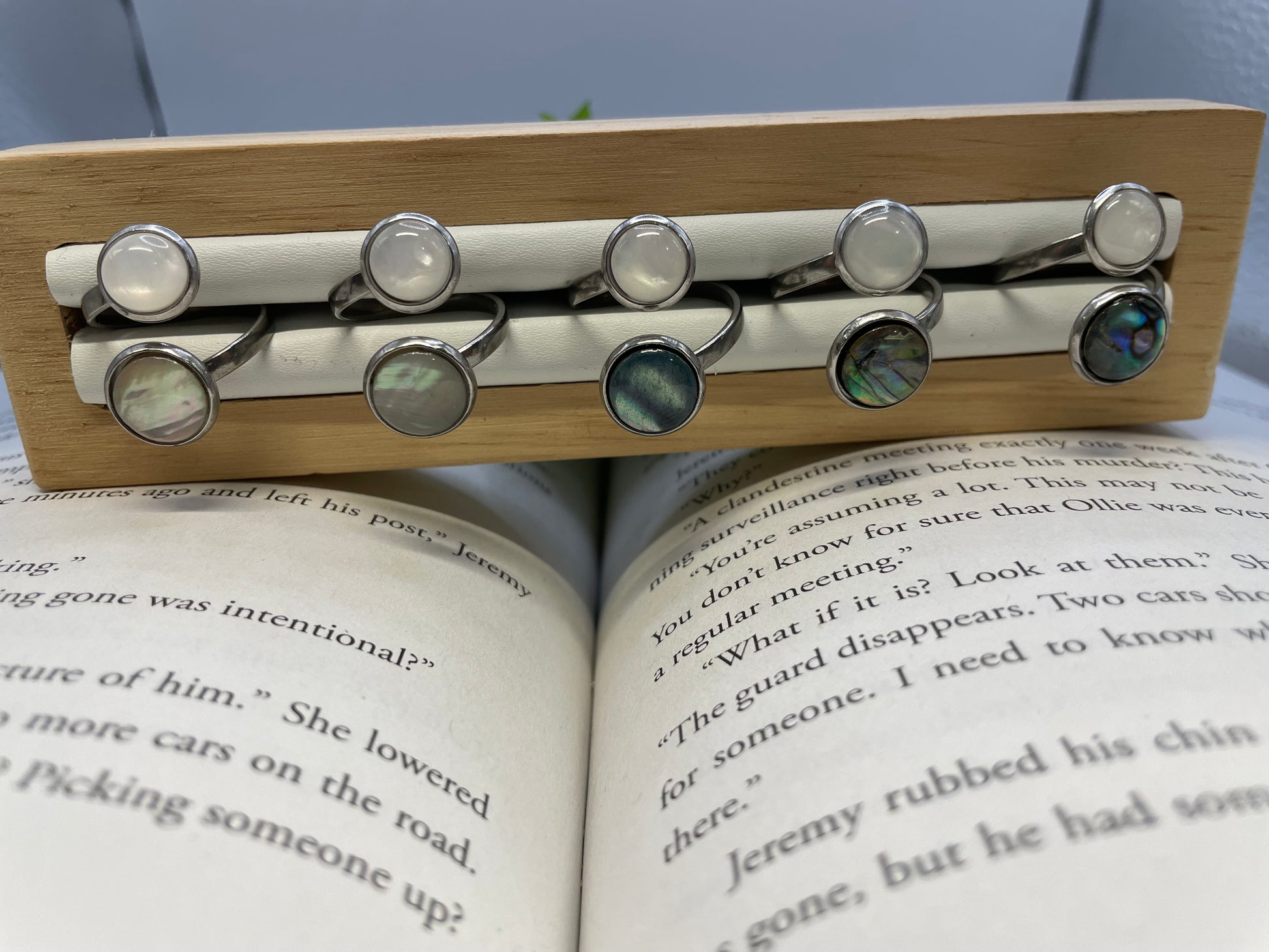 A perfect balance of simplicity and elegance, this double cabochon ring highlights the natural shimmer of real shell. The luminous surfaces catch the light beautifully, revealing soft iridescent reflections that change with every movement.