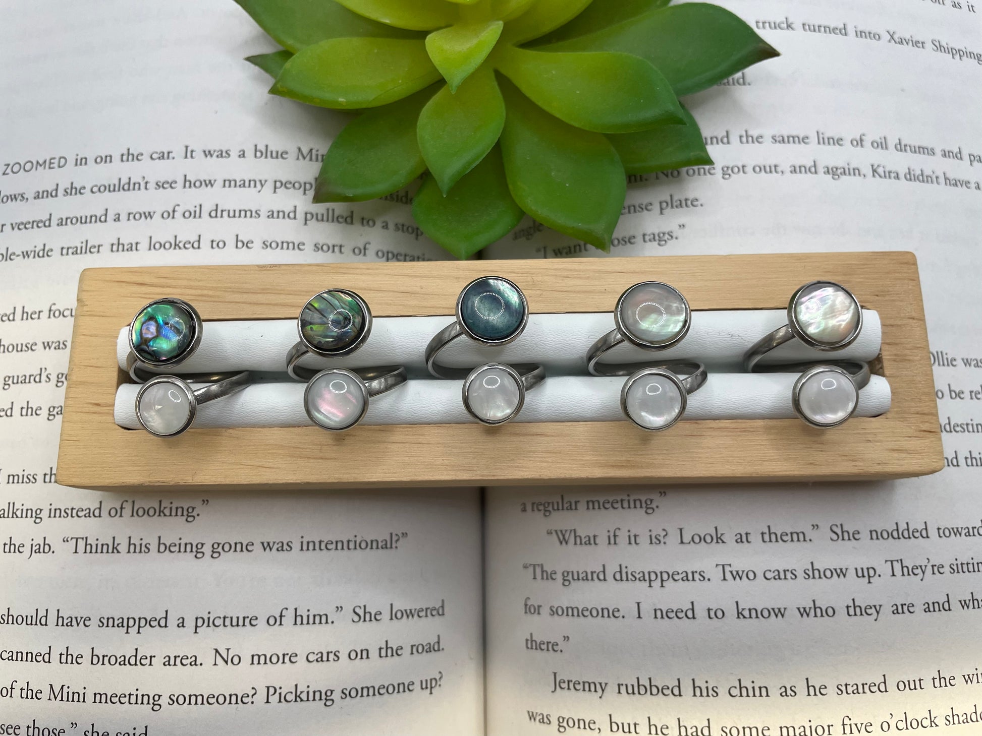 Double Shell Cabochon Ring – Stainless Steel (Adjustable)