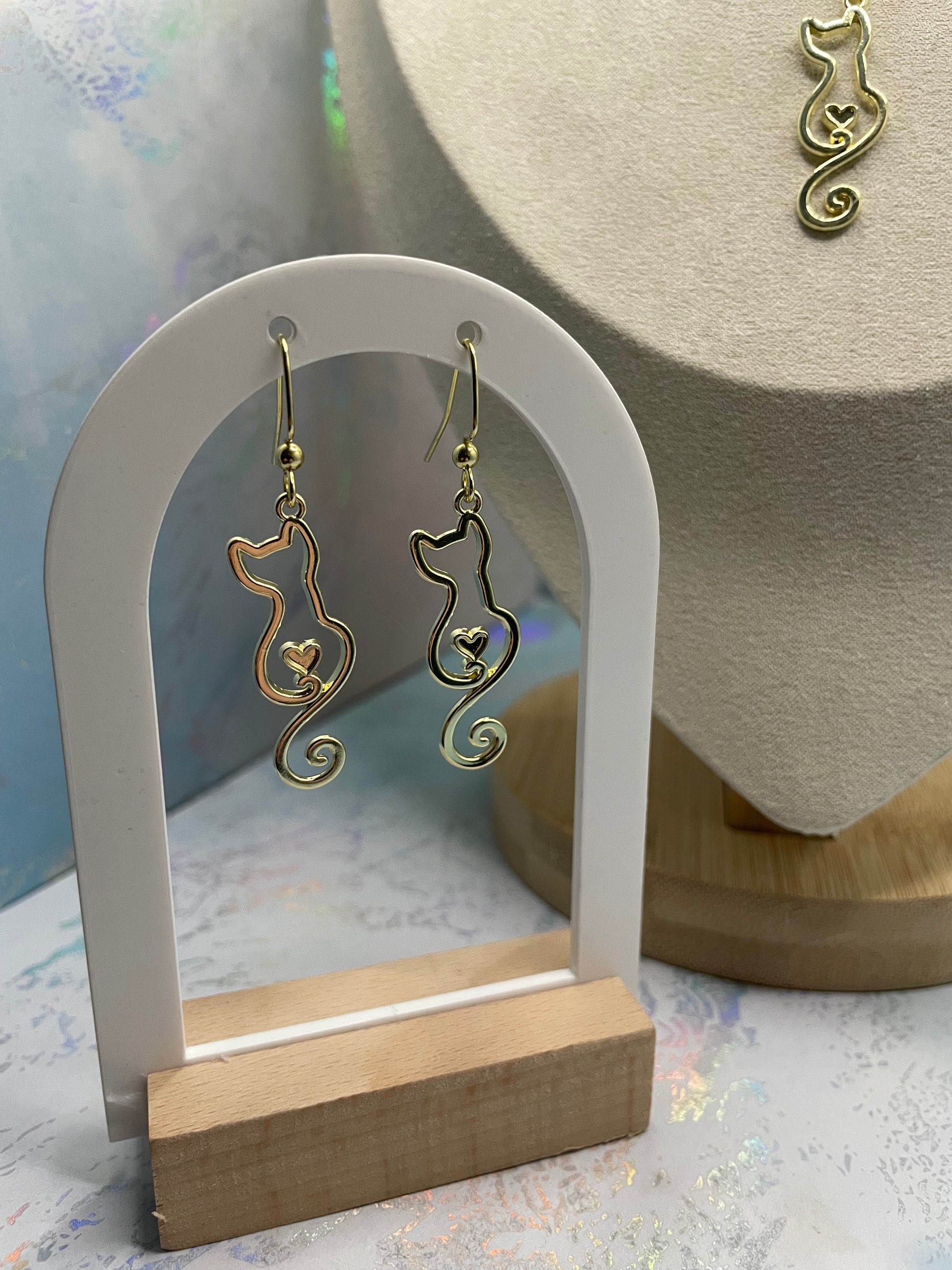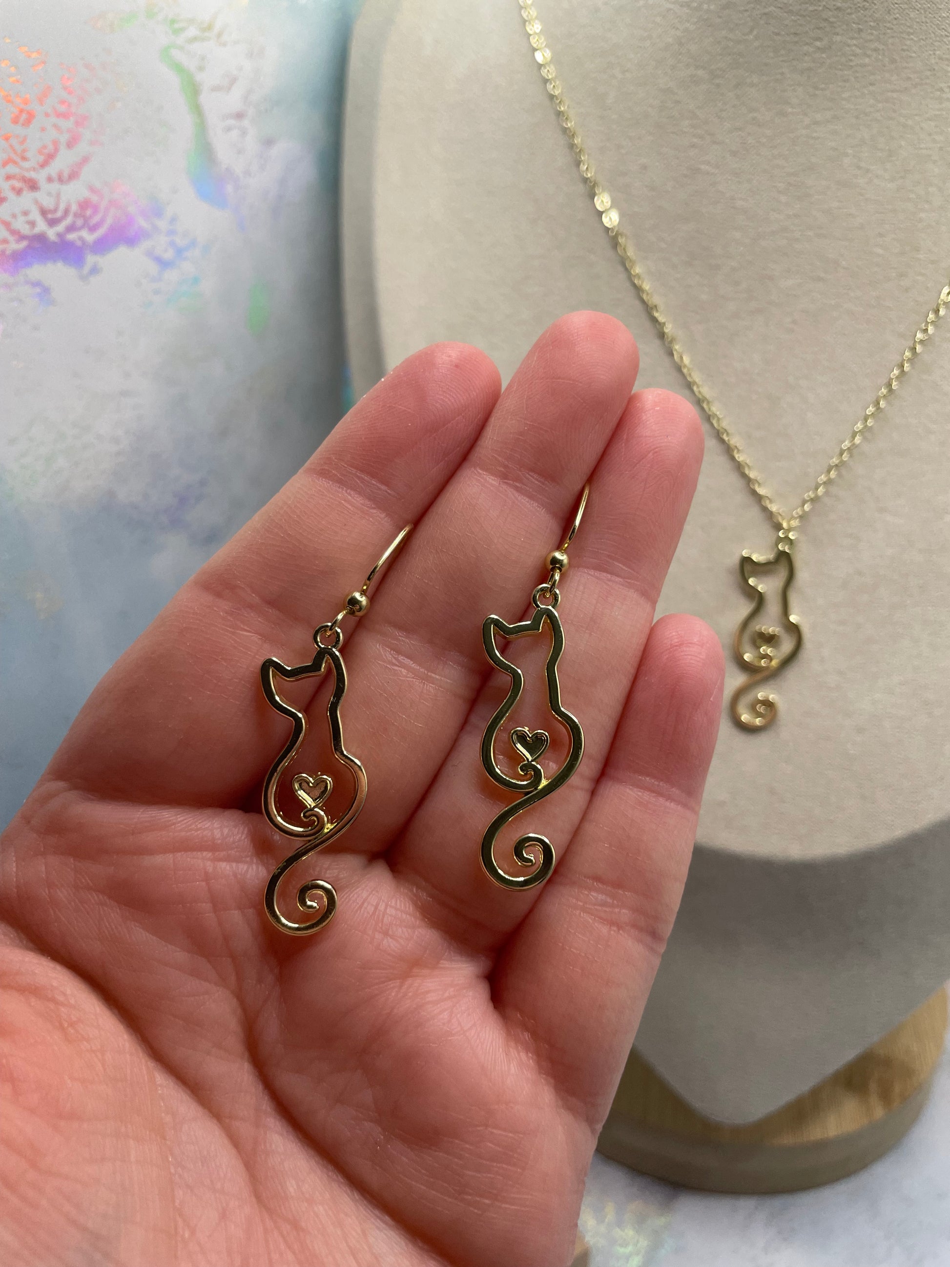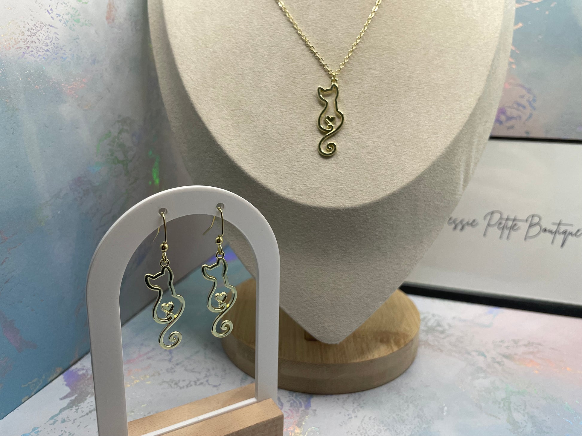 Elegant Cat with Heart Gold Set-NICKEL FREE