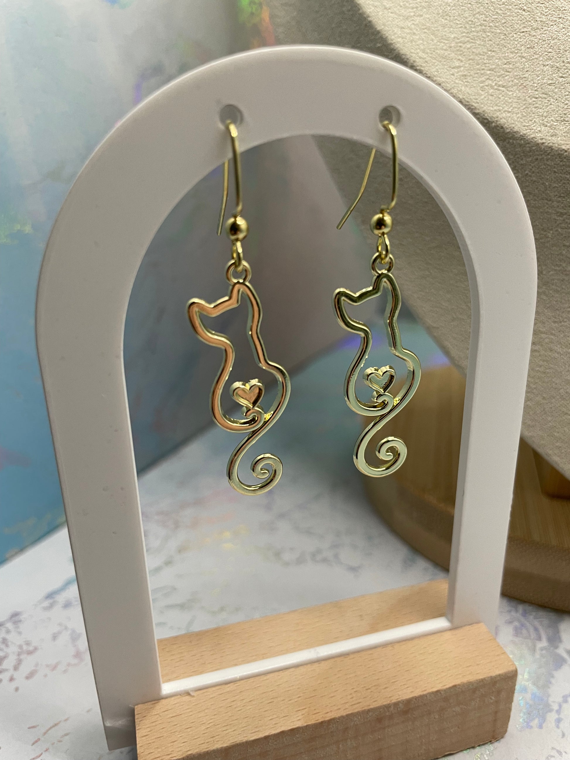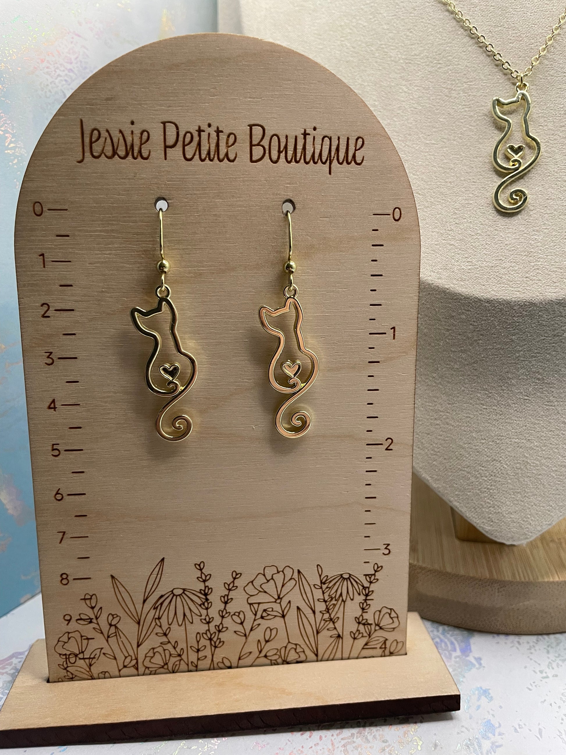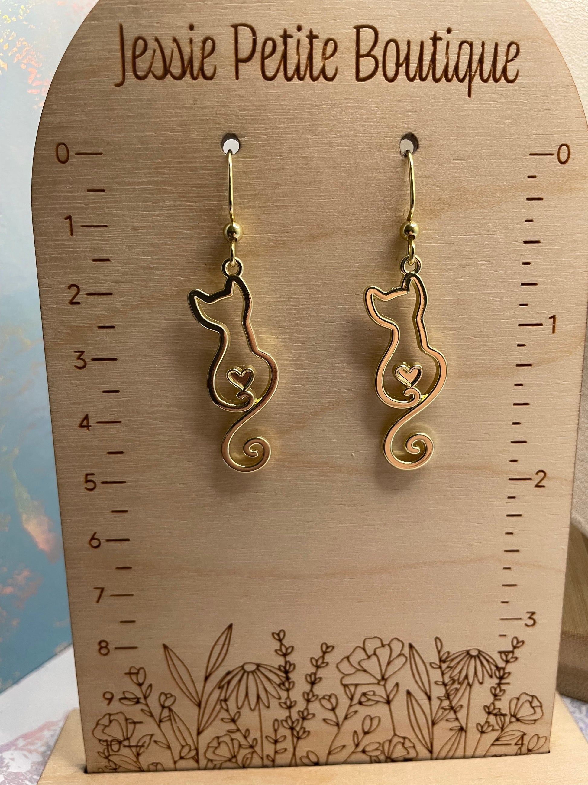 Elegant Cat with Heart Gold Set-NICKEL FREE