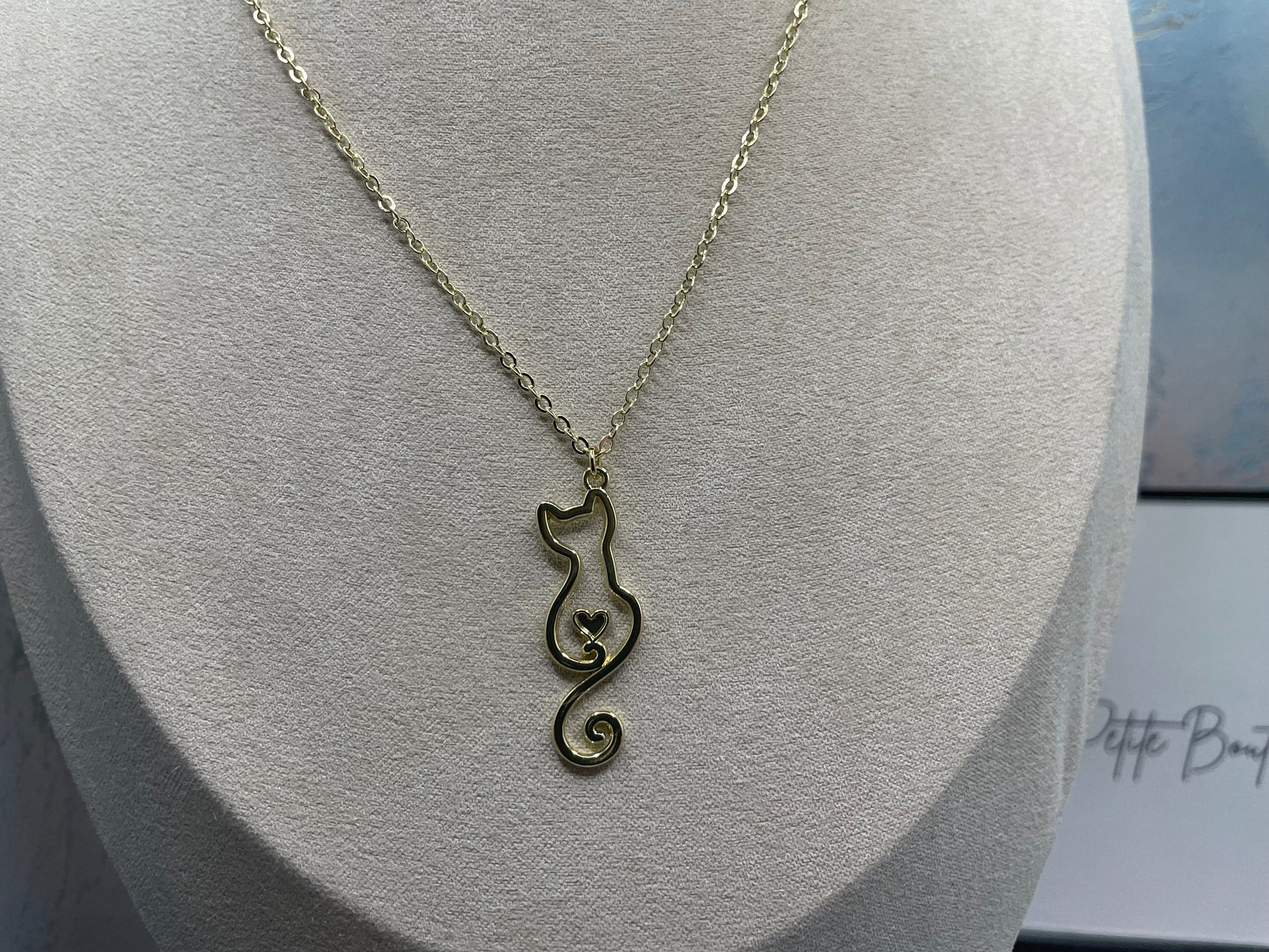 Celebrate your love for cats with this beautifully crafted Cat with Heart Jewelry Set. Featuring a sleek gold-tone design with delicate gold-plated materials, this set is both stylish and meaningful. The pendant and earrings showcase a graceful feline silhouette with a heart.