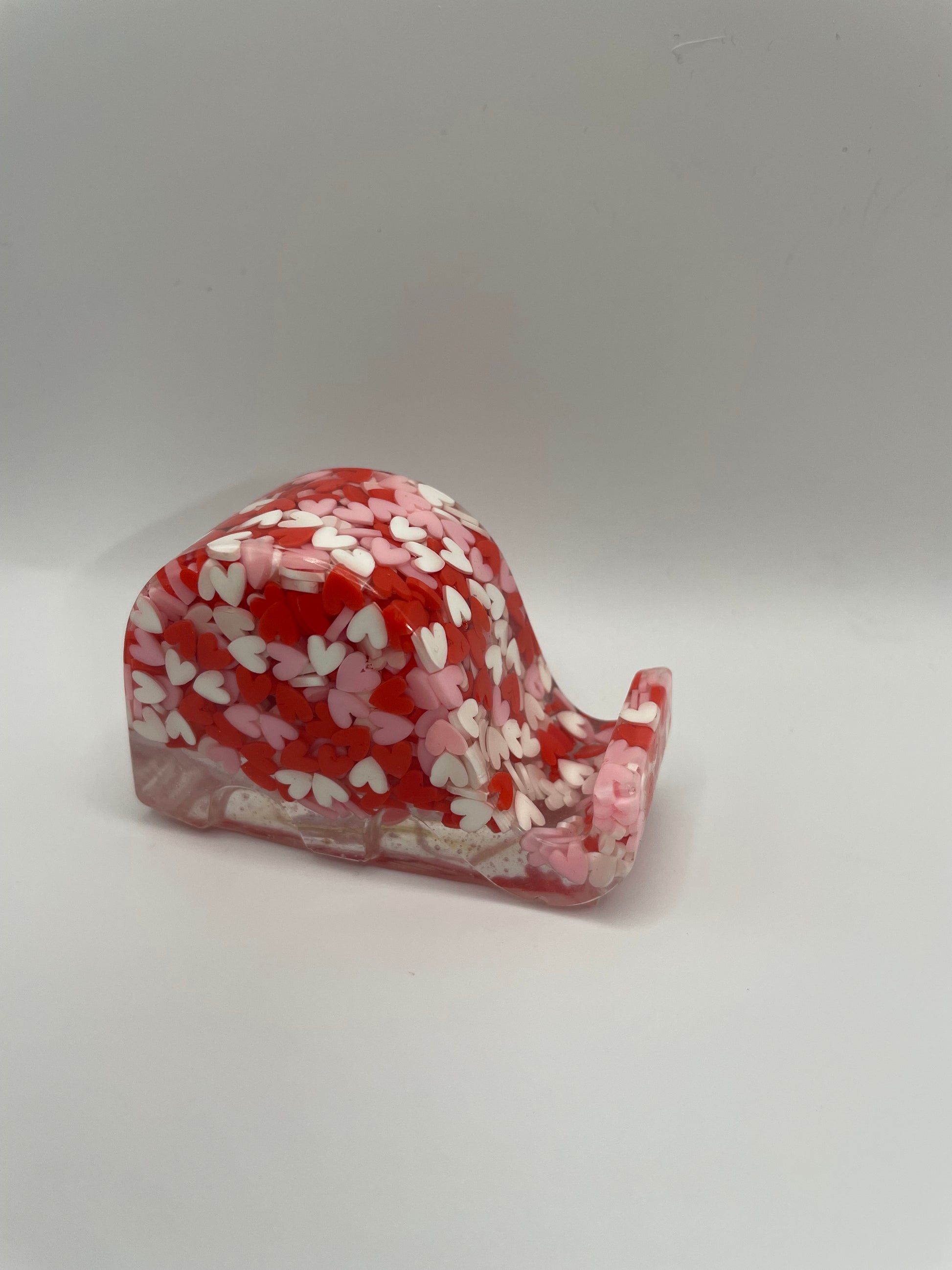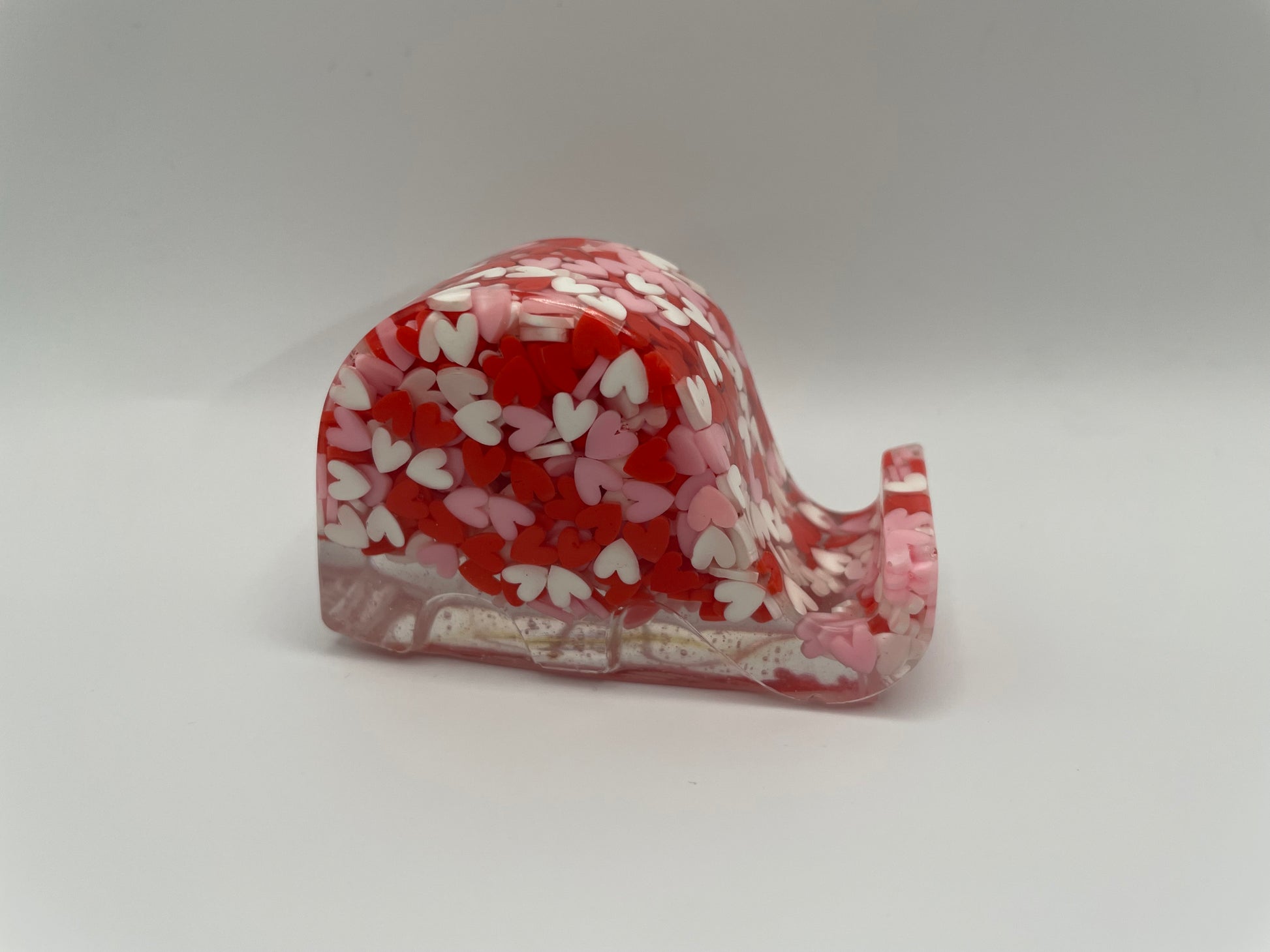 Keep your phone standing in style with this adorable elephant-shaped phone holder, handcrafted with love from resin and filled with pink, red, and white heart accents.