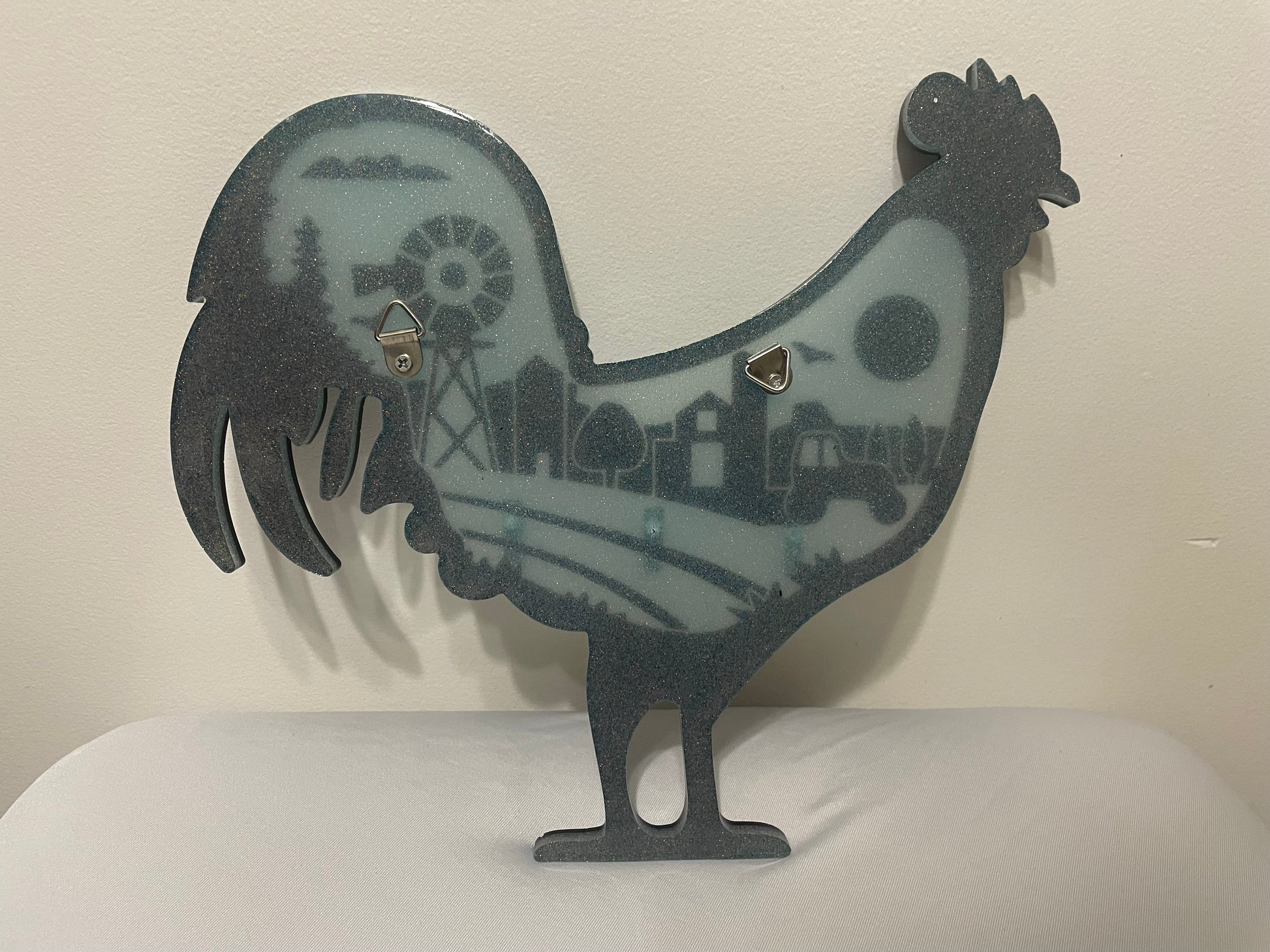Farm Scene Rooster Wall Decoration or Key Hanger