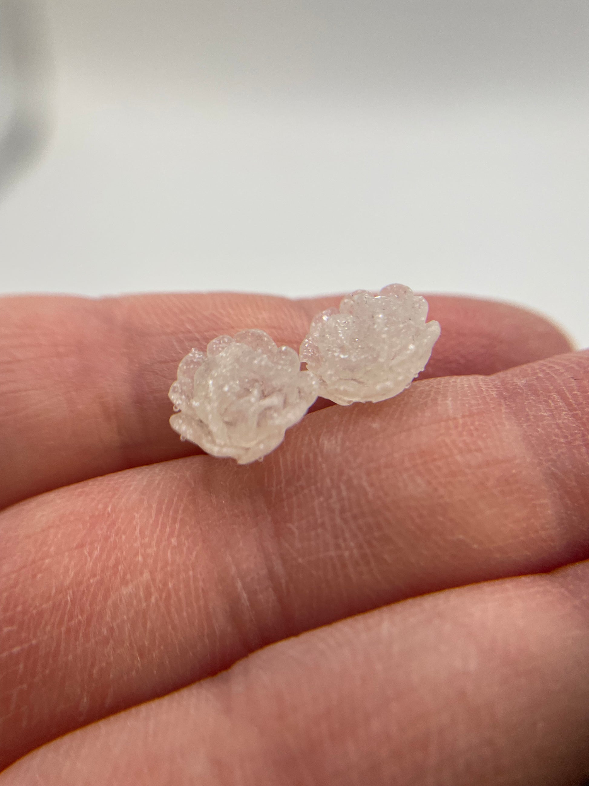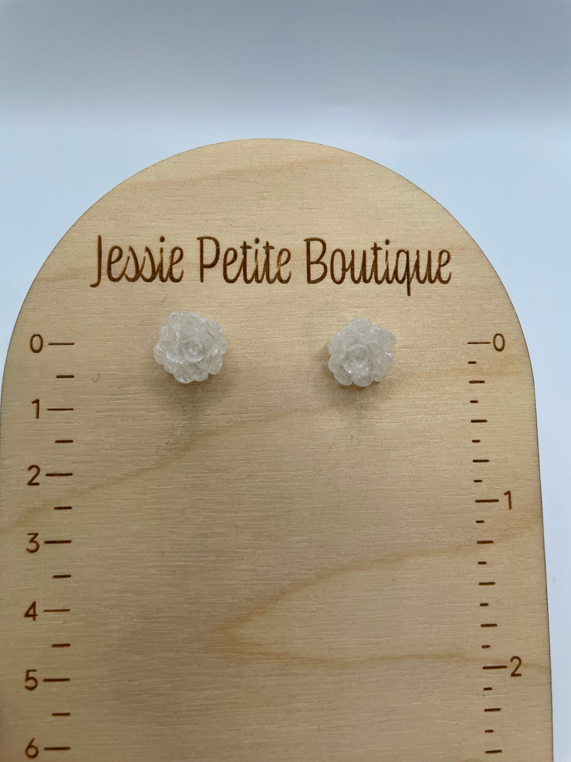 Delicate and lightweight, these handcrafted flower stud earrings add a subtle sparkle to any outfit. Made from resin with shimmering mica powder, their gentle white tone and textured petals create a timeless, feminine look. The hypoallergenic plastic posts make them perfect for sensitive ears, offering both comfort and style.