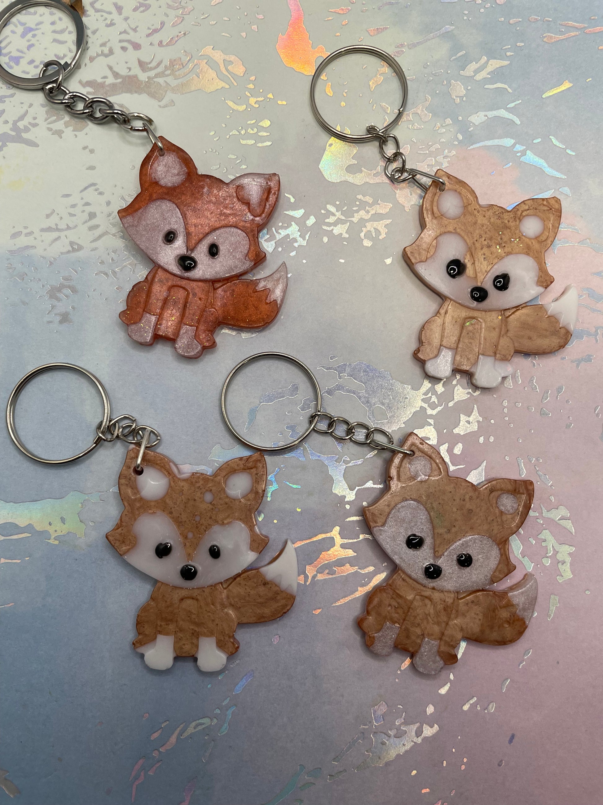 Add a playful woodland touch to your keys or bag with this adorable handmade fox keychain. Carefully crafted in resin and enhanced with mica powder, this piece features soft natural tones and a charming fox silhouette with glossy details.