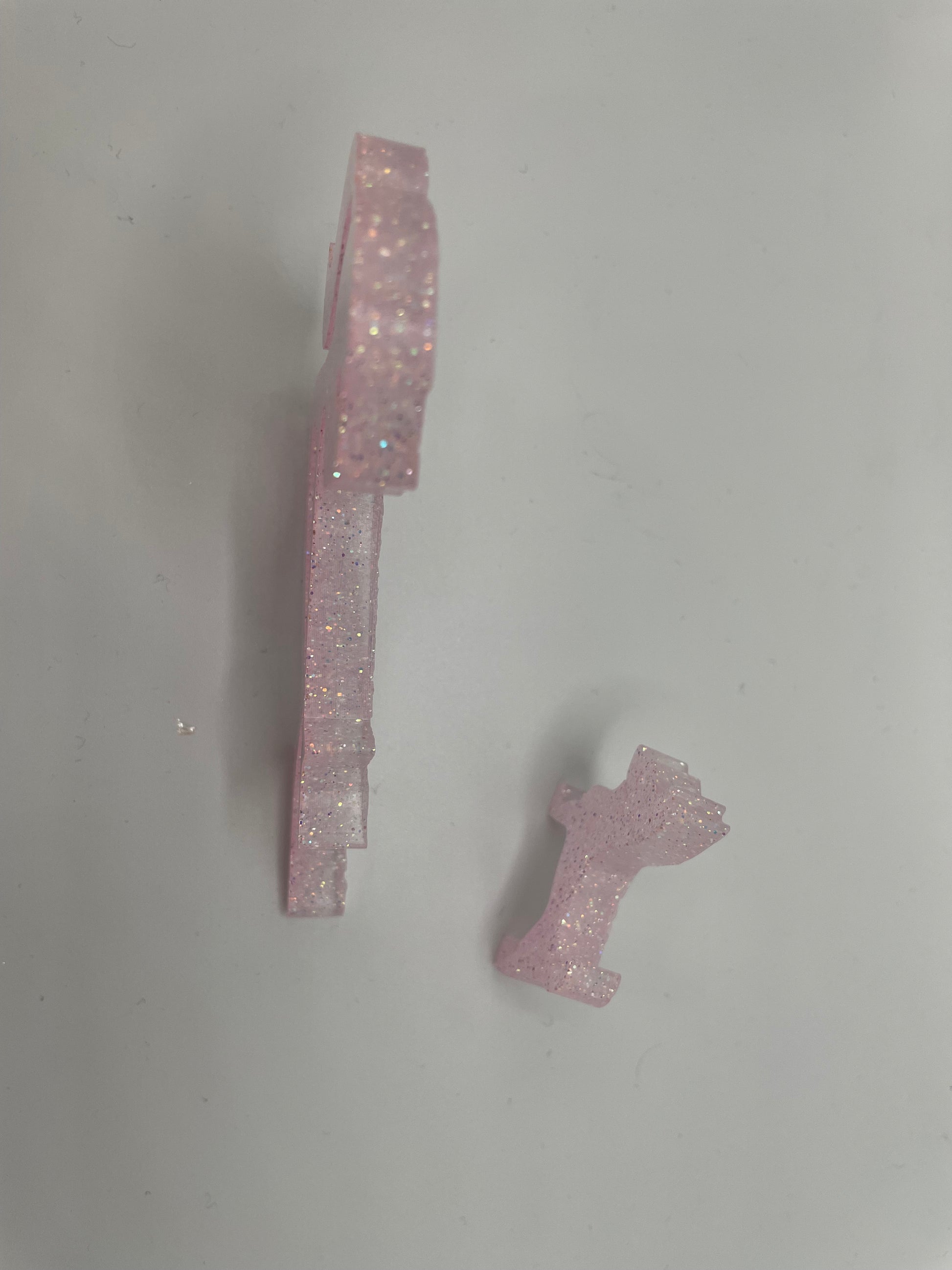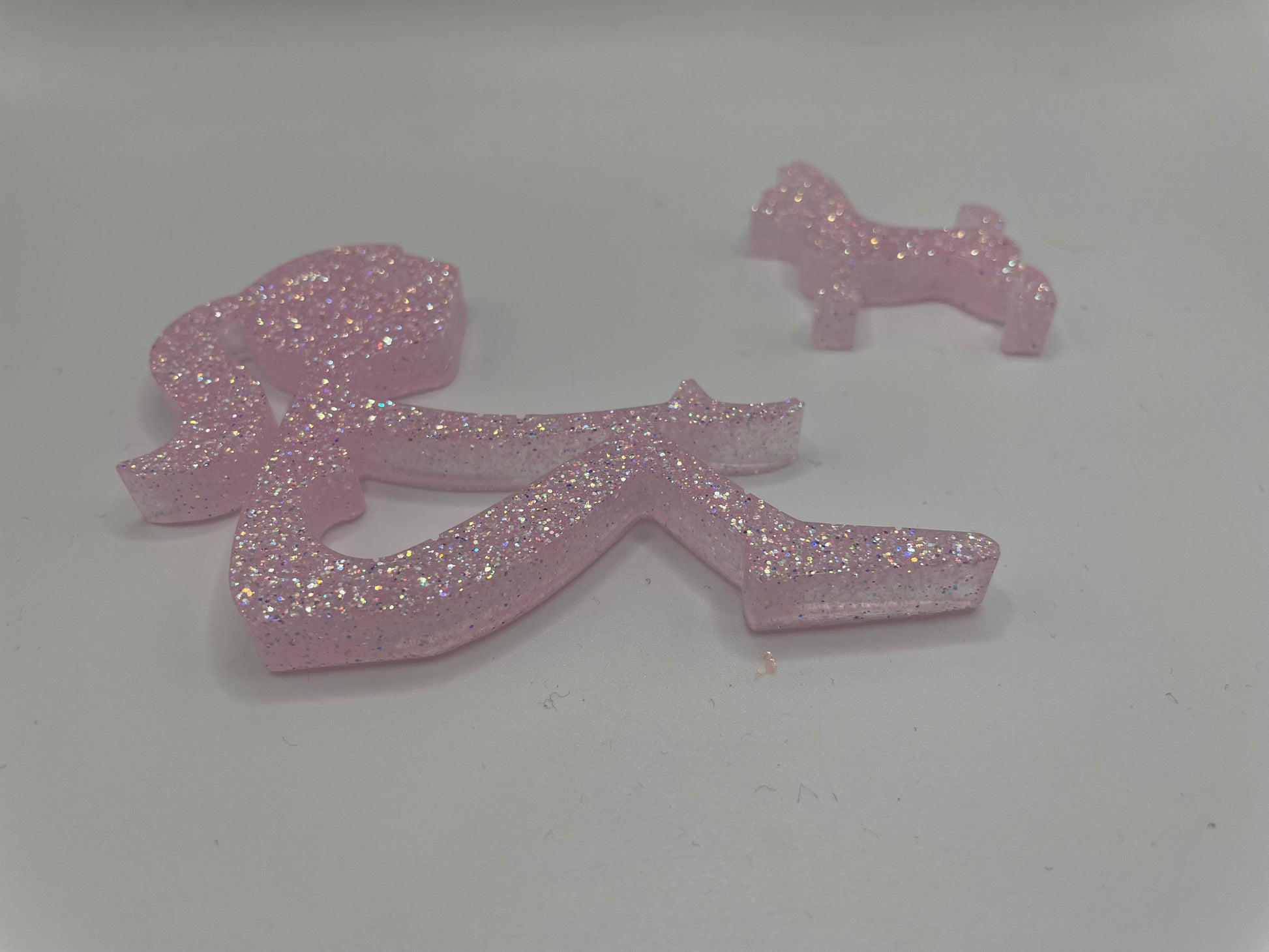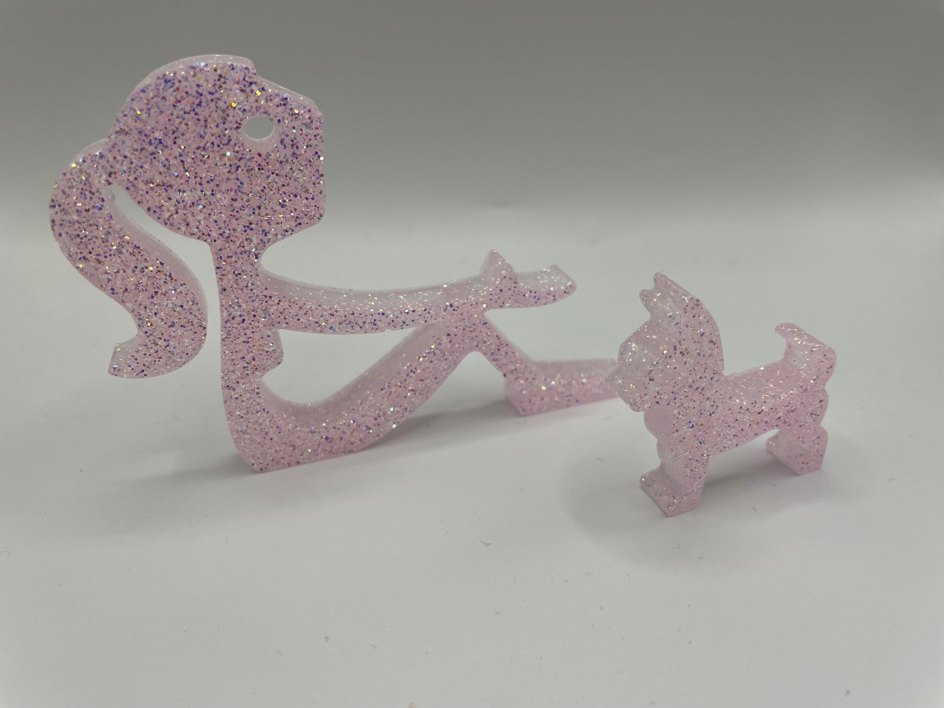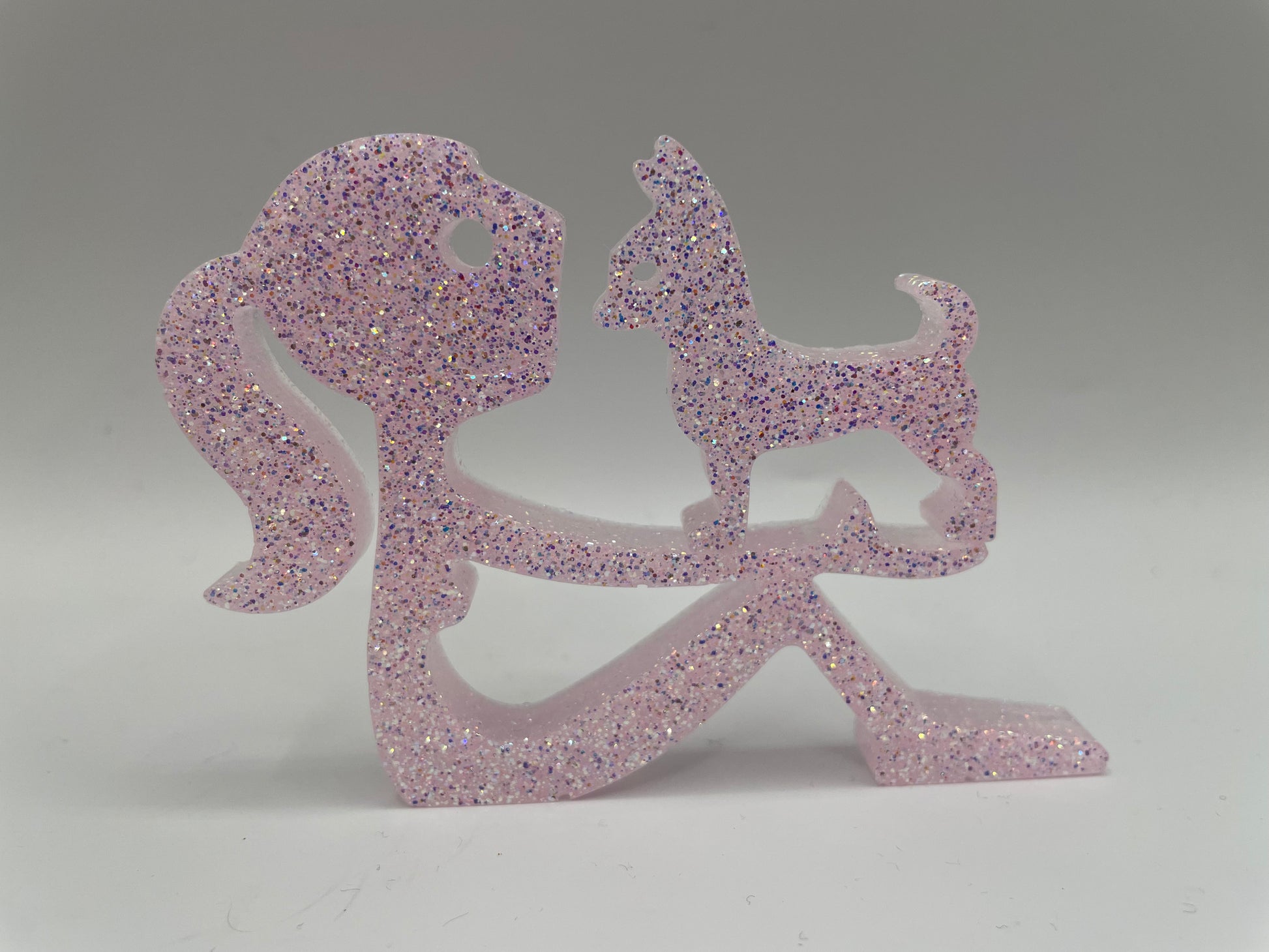 Add a touch of sparkle and sweetness to your space with this adorable pink glitter resin duo. ✨ Featuring a girl sitting with her playful dog, this handmade set shines beautifully under any light and makes a lovely decorative accent for shelves, desks, or gift displays.