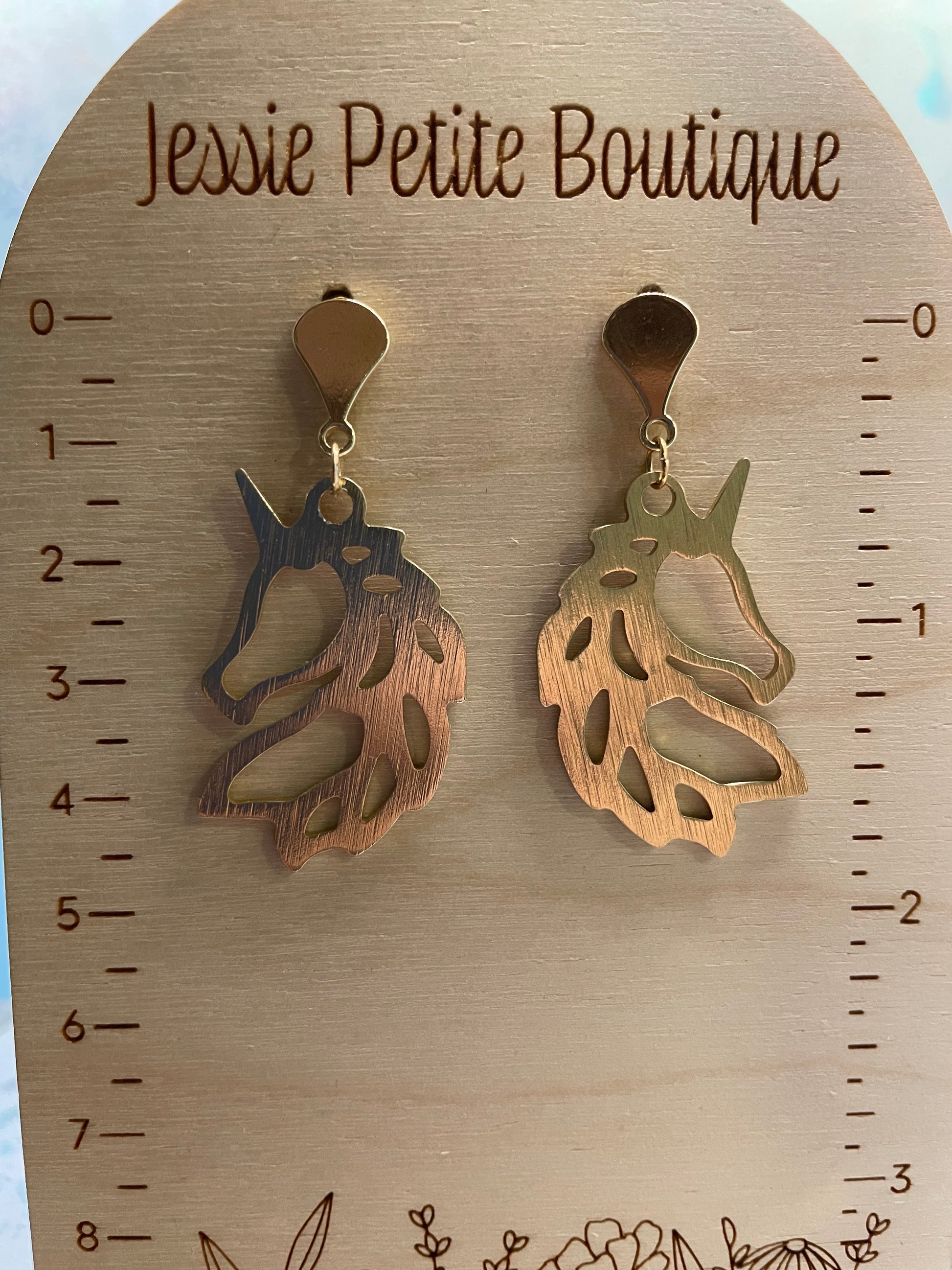 Bring a touch of whimsy and magic to your look with these Gold-plated Unicorn Earrings. Crafted from gold-plated brass, these elegant unicorn-shaped earrings add a playful yet sophisticated charm. With their lightweight design and nickel-free butterfly closure, they ensure comfort while making a striking statement.