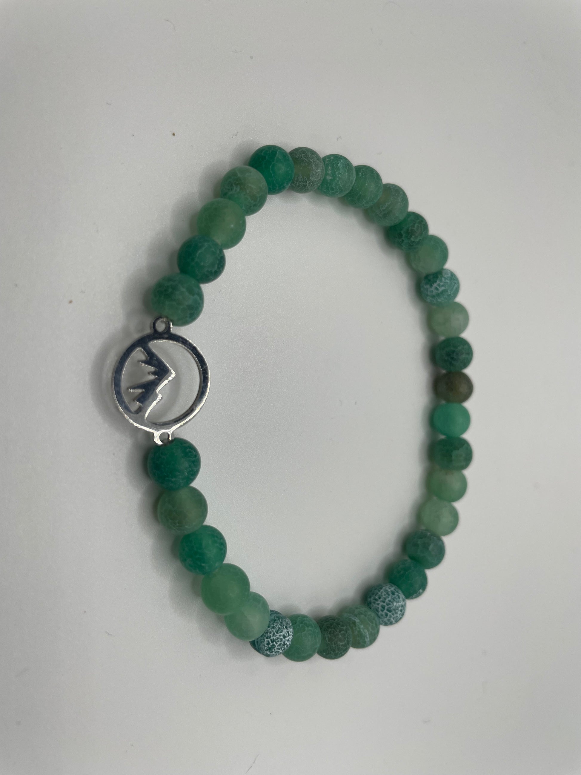 Fresh and balanced, this handcrafted bracelet combines soft green dragon vein agate beads with a sleek stainless steel mountain charm. The natural crackled pattern of the beads adds depth and character, making this piece both elegant and unique.