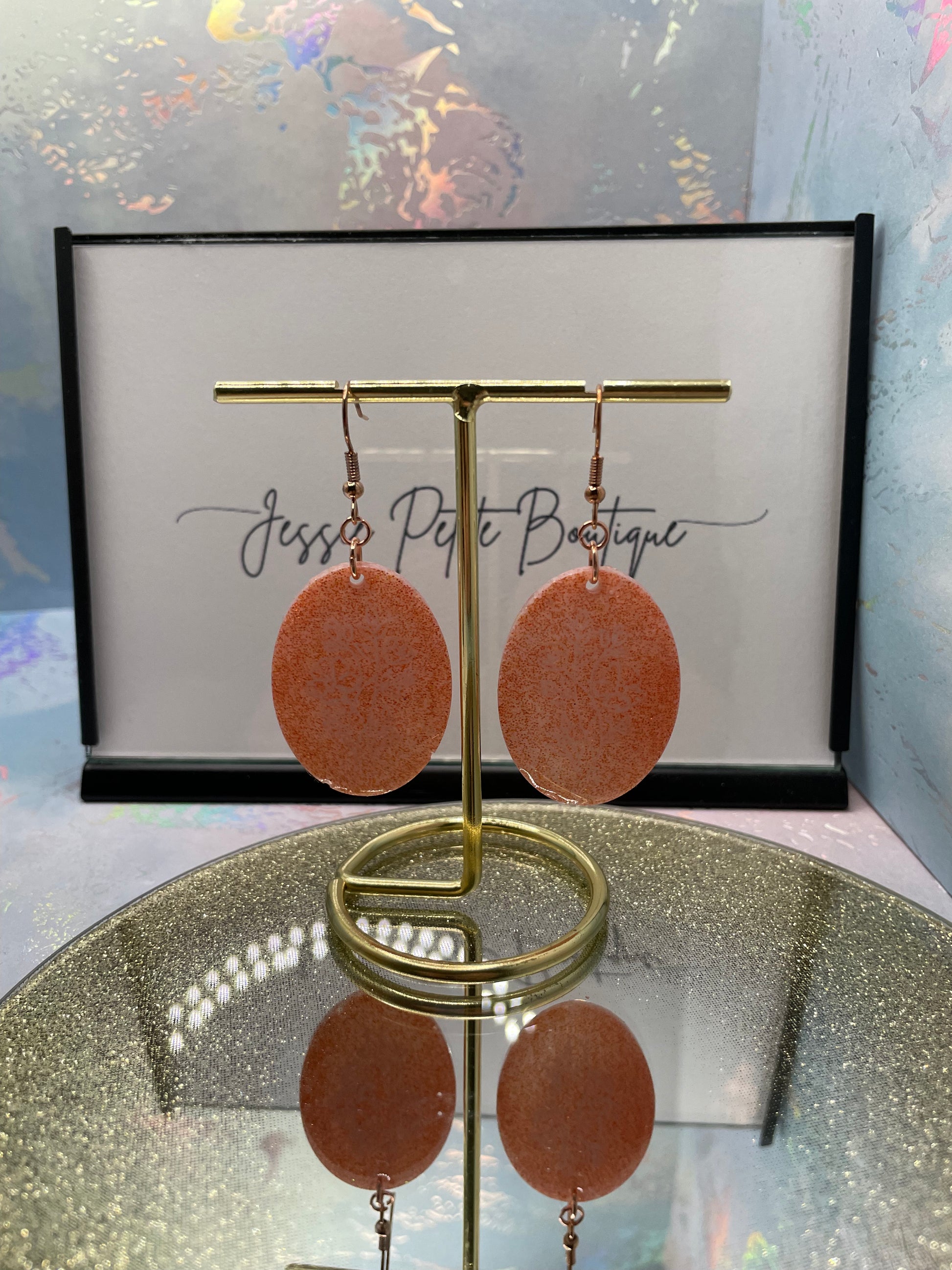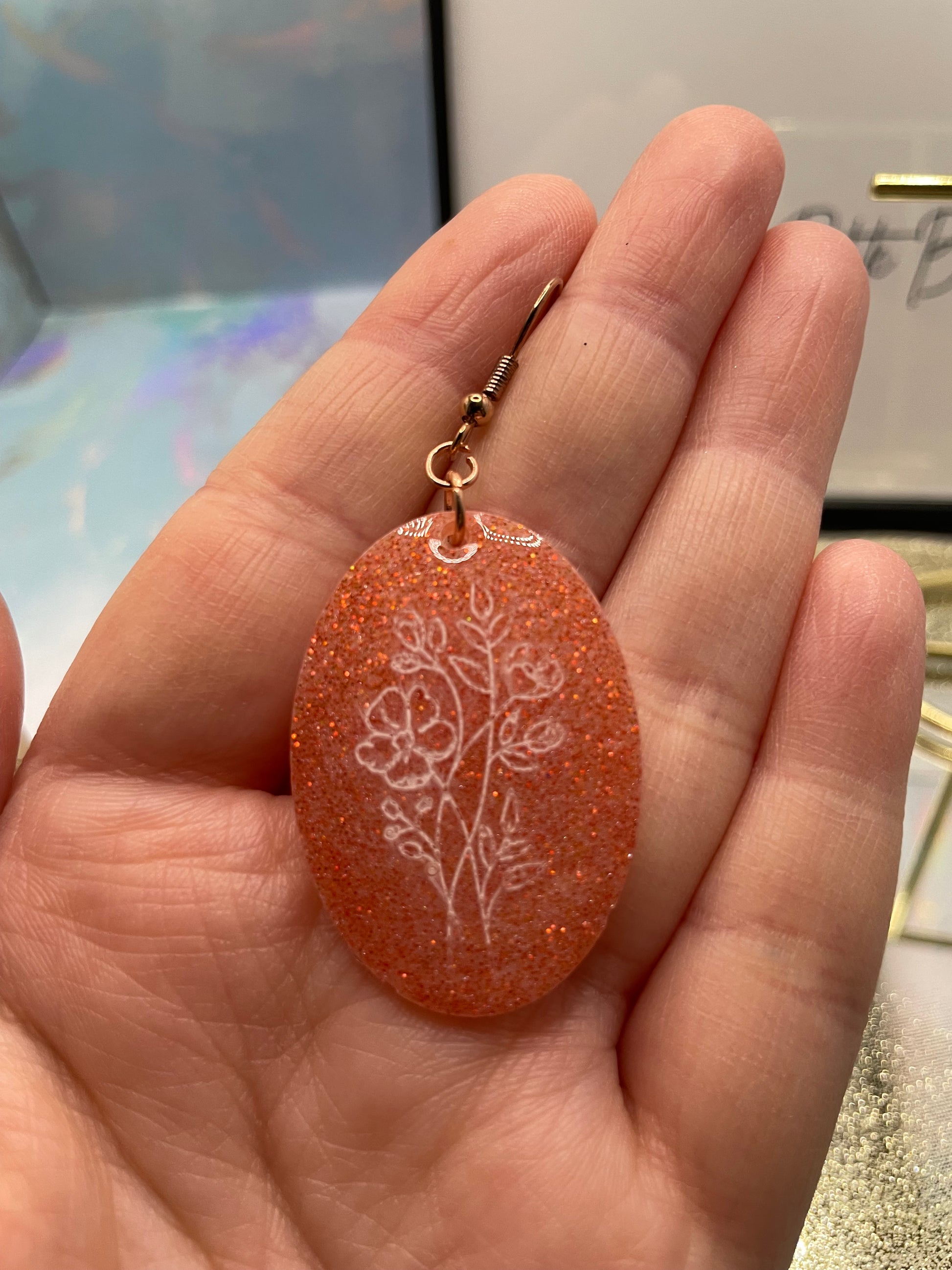 Capture the timeless beauty of nature with these Herbier Oval Earrings. Featuring a delicate floral pattern, these earrings are crafted from resin, mica powder, paint, and glitter to create a dreamy, sparkly pink design or white with accents of gold. The elegant oval shape and shimmering details evoke a sense of sophistication and charm, perfect for any occasion. Lightweight yet eye-catching, these earrings are secured with ear wire fishhook closures for comfortable wear.
