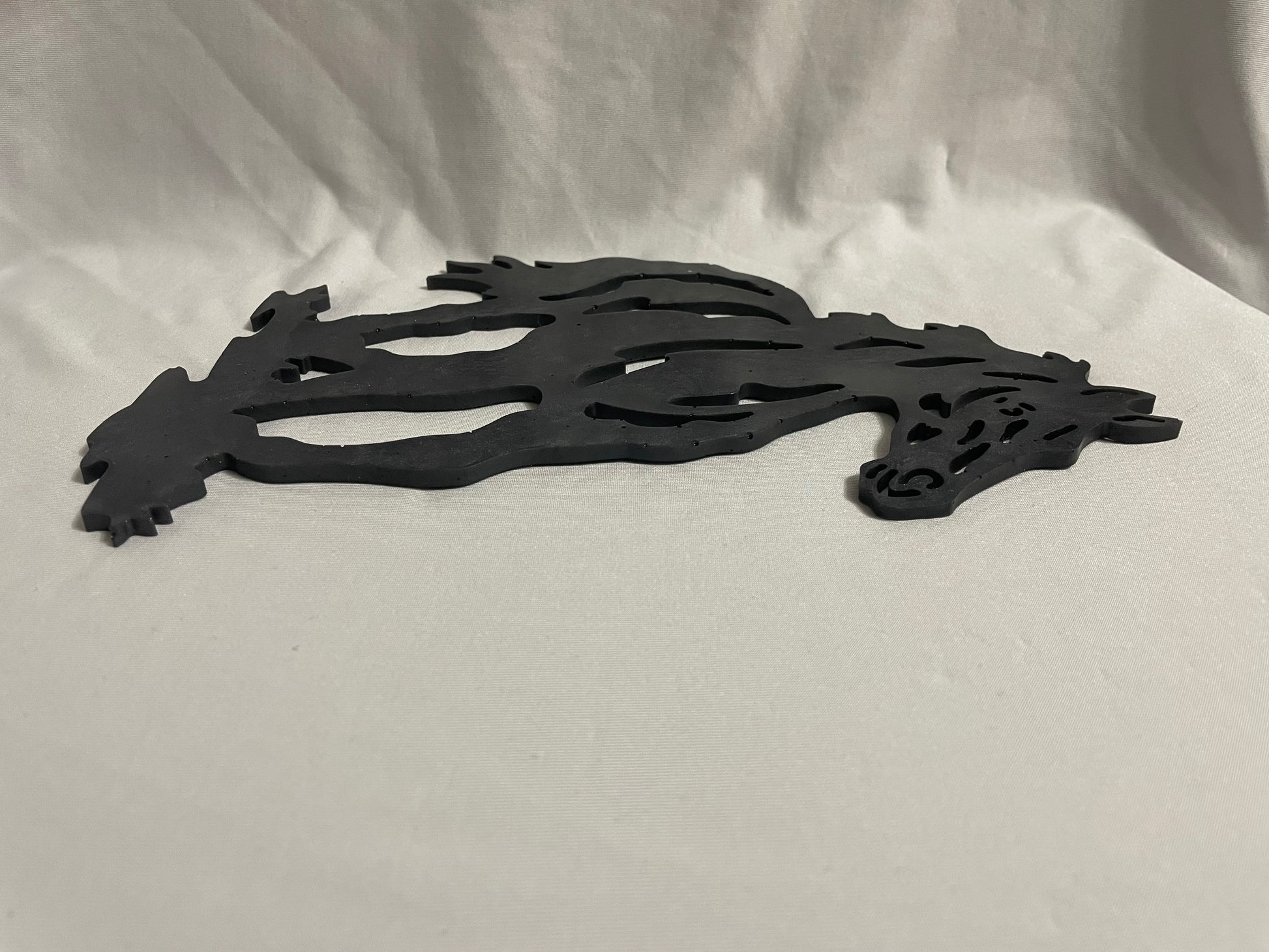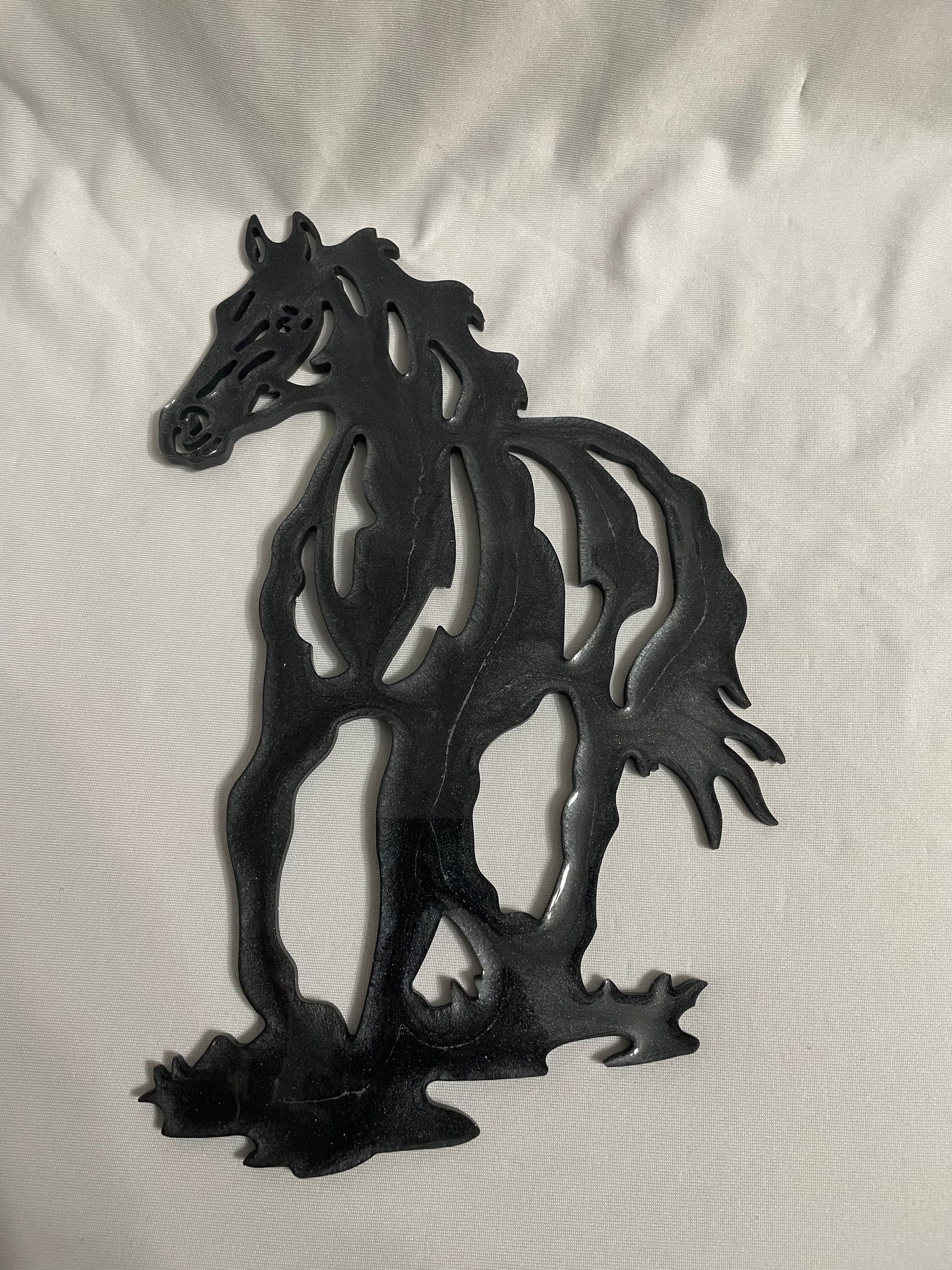 Celebrate the grace and spirit of the horse with this elegant handcrafted wall décor piece. Sculpted in resin and enhanced with subtle mica shimmer, this silhouette captures movement and form in a minimalist yet artistic way.