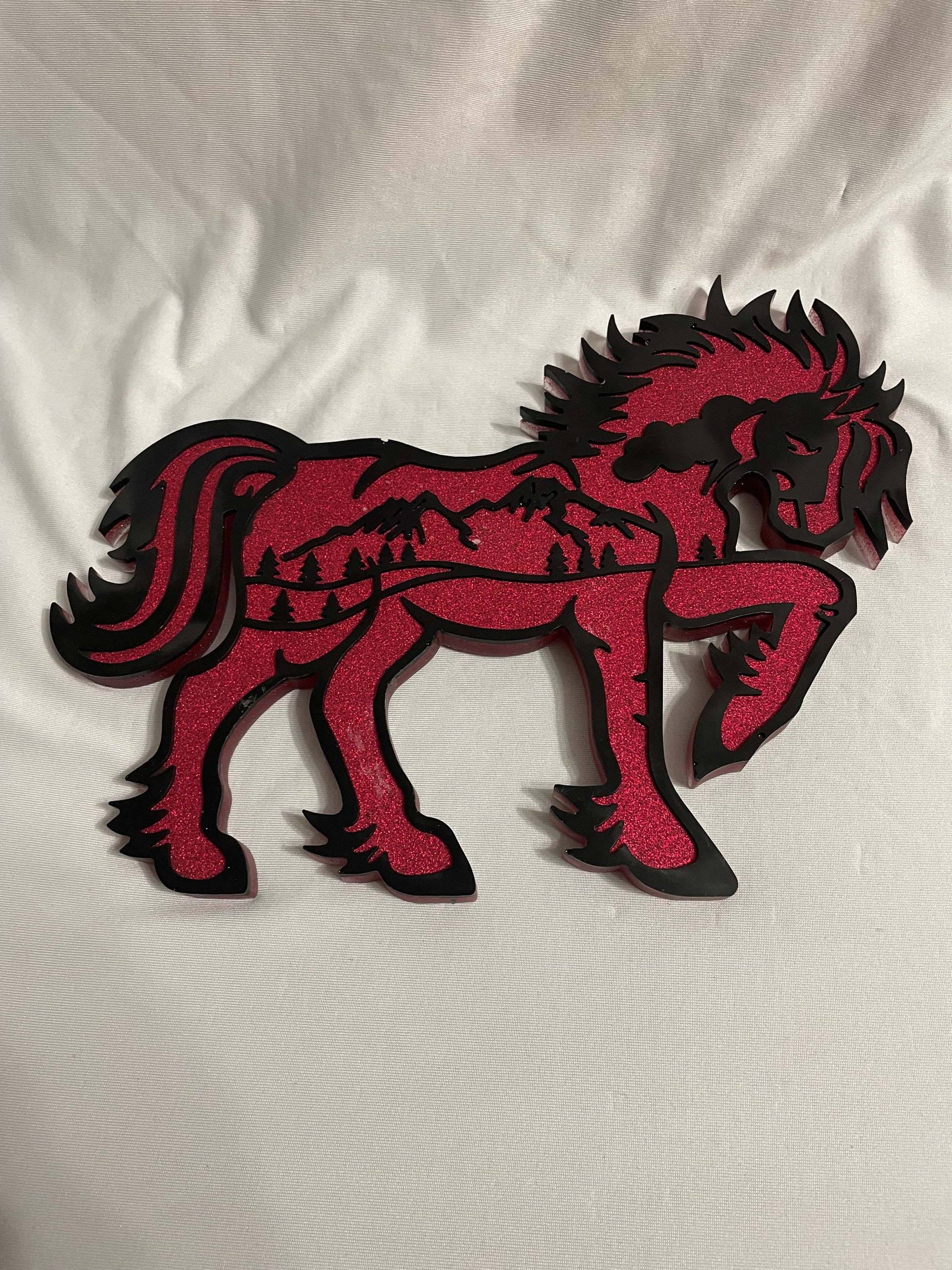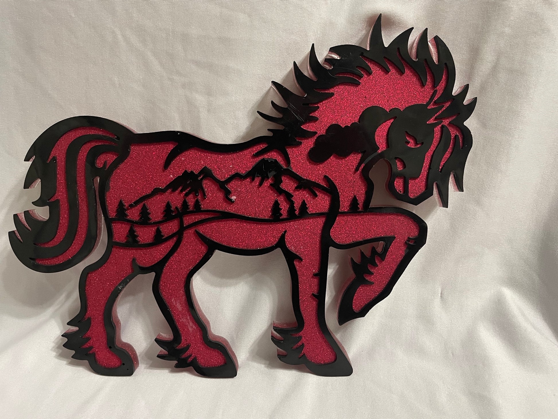 This Horse Wall Art as imperfection. Featuring the elegant silhouette of a horse—adorned with intricate detailing—this wall décor piece is perfectly imperfect for adding a touch of the wild to any room.