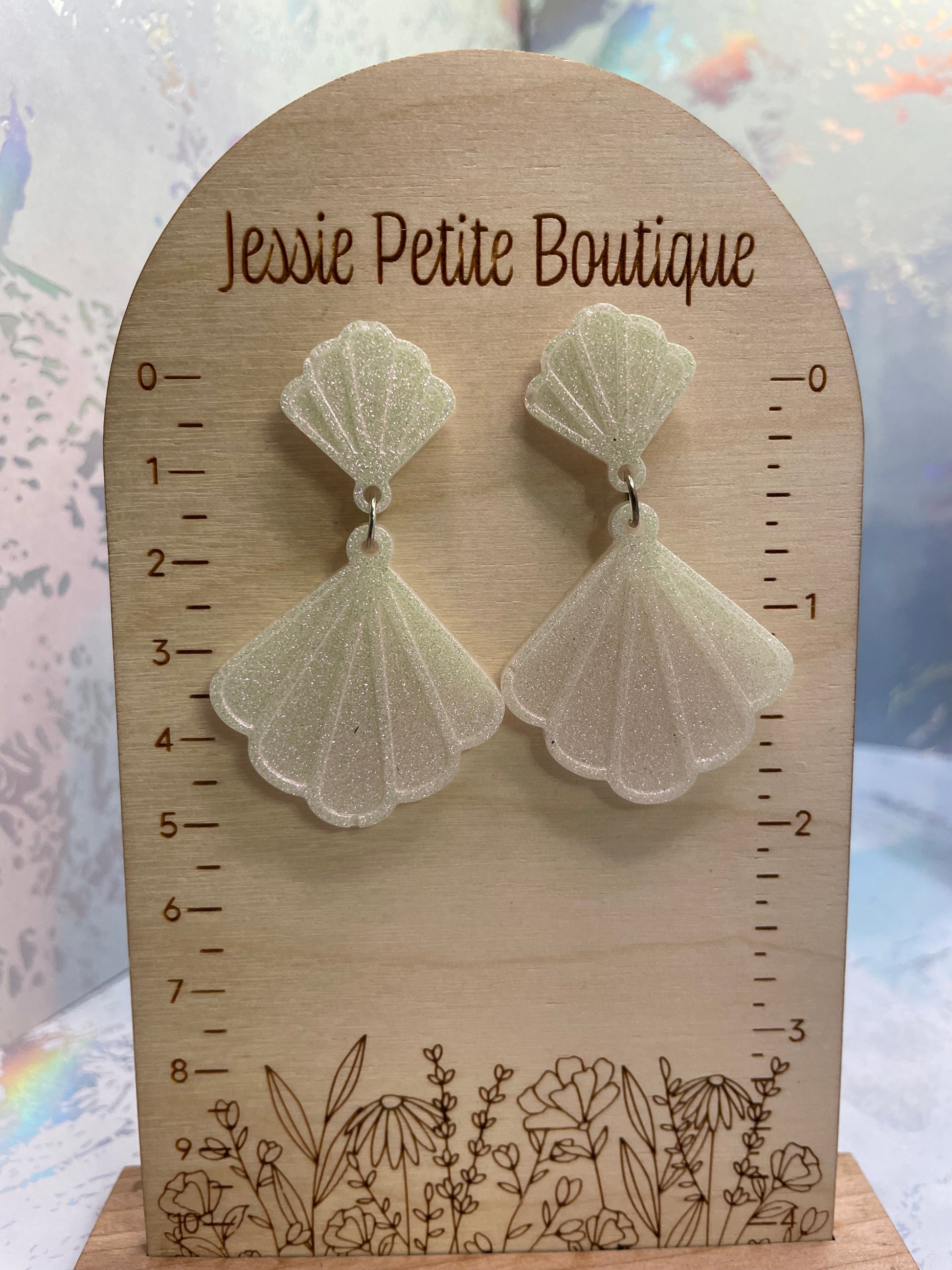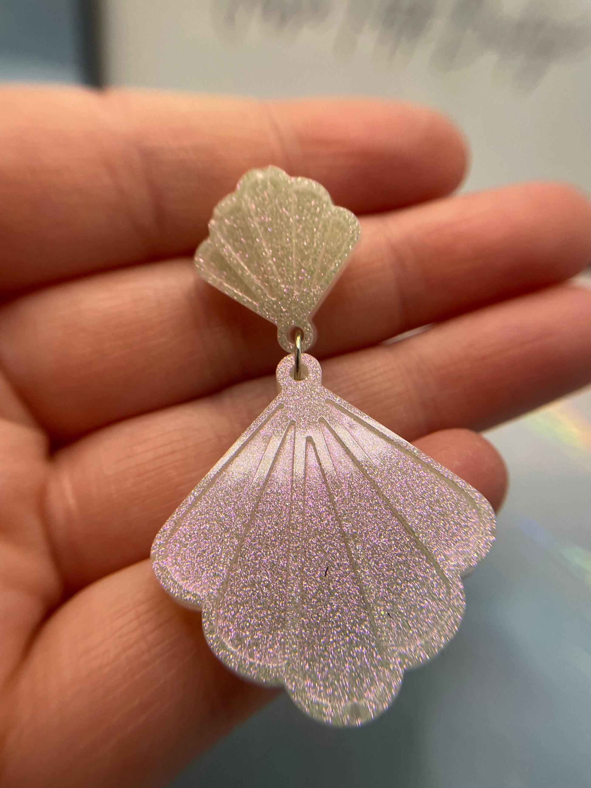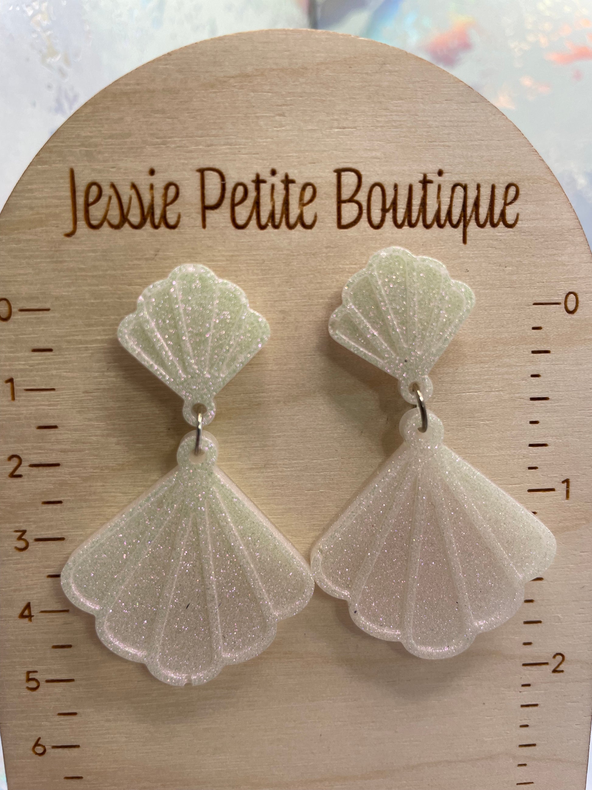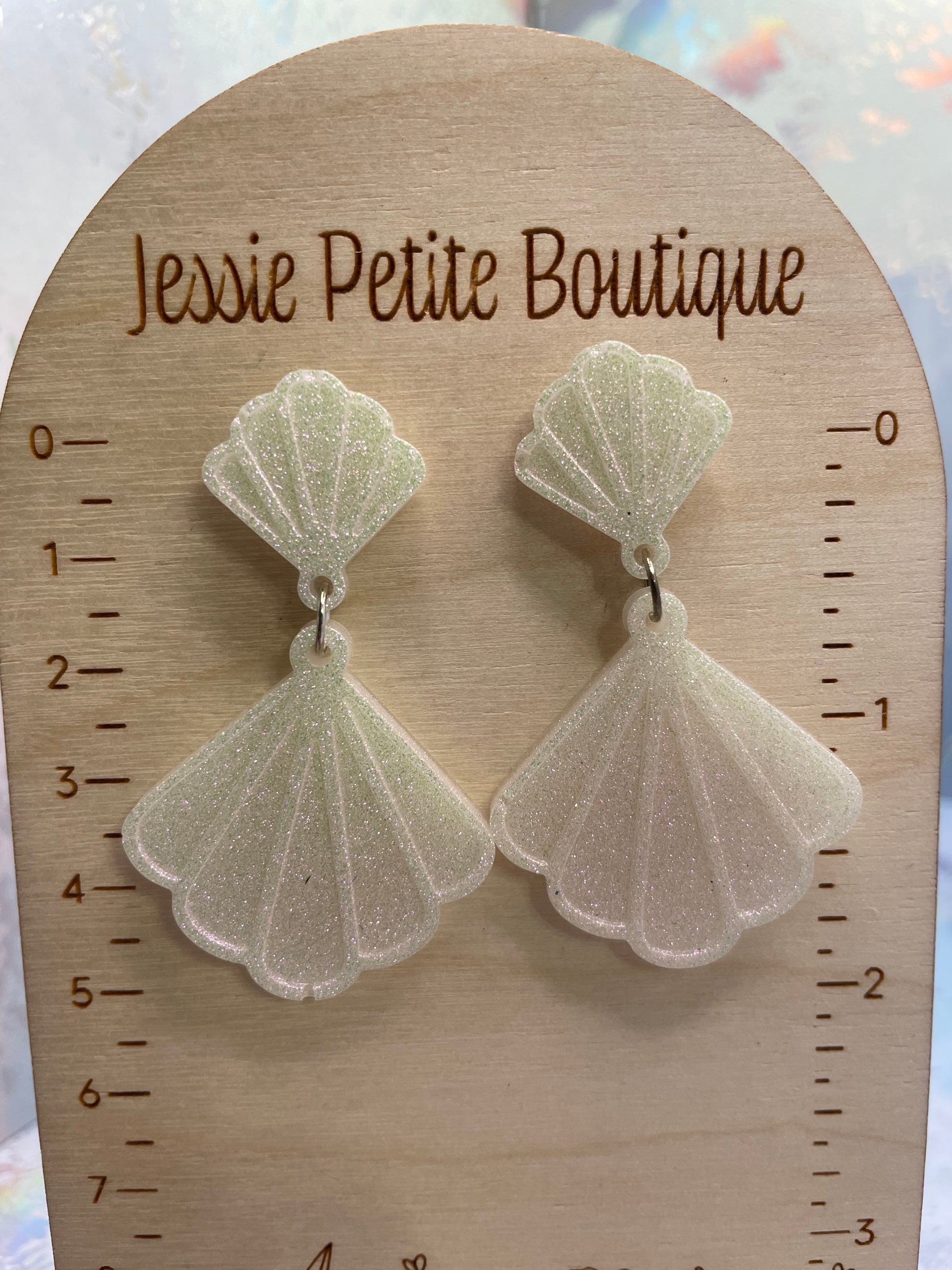 Elevate your style with these Sparkly White Kalita Earrings. Designed in an elegant clam shape, these earrings shimmer beautifully with their sparkly white finish, crafted from resin, mica powder, and glitter for a dazzling effect. The hypoallergenic plastic stud and butterfly closure ensure a secure and comfortable fit, making these earrings perfect for sensitive ears. Lightweight and durable, they offer effortless wear for any occasion.