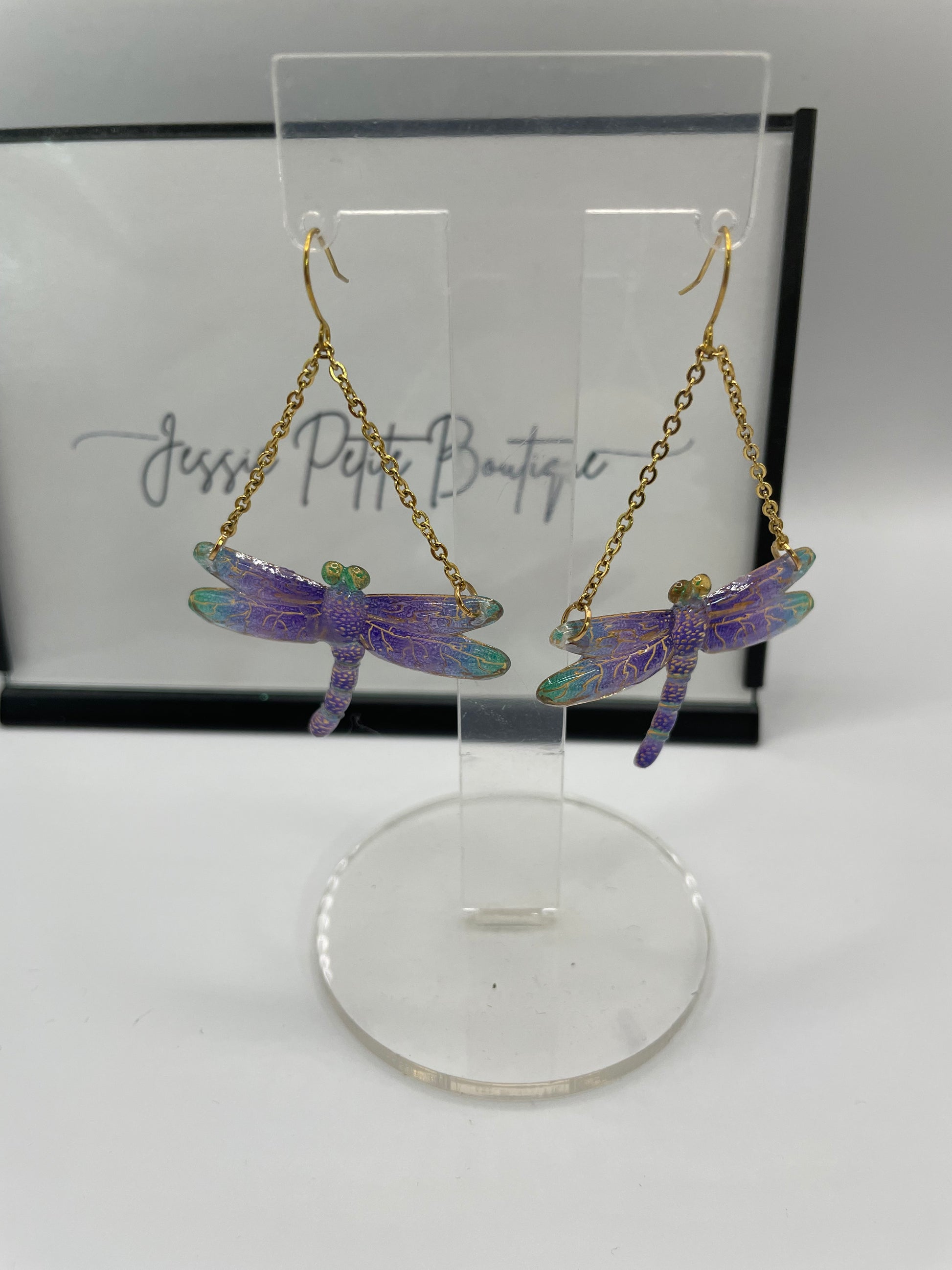 Add a touch of whimsy and elegance to your summer look with this one-of-a-kind dragonfly jewelry set from Jessie Petite Boutique. Featuring a matching necklace and earrings, this exclusive purple set is the only one of its kind – part of a limited edition crafted in three dreamy colourways: purple, yellow, and blue.