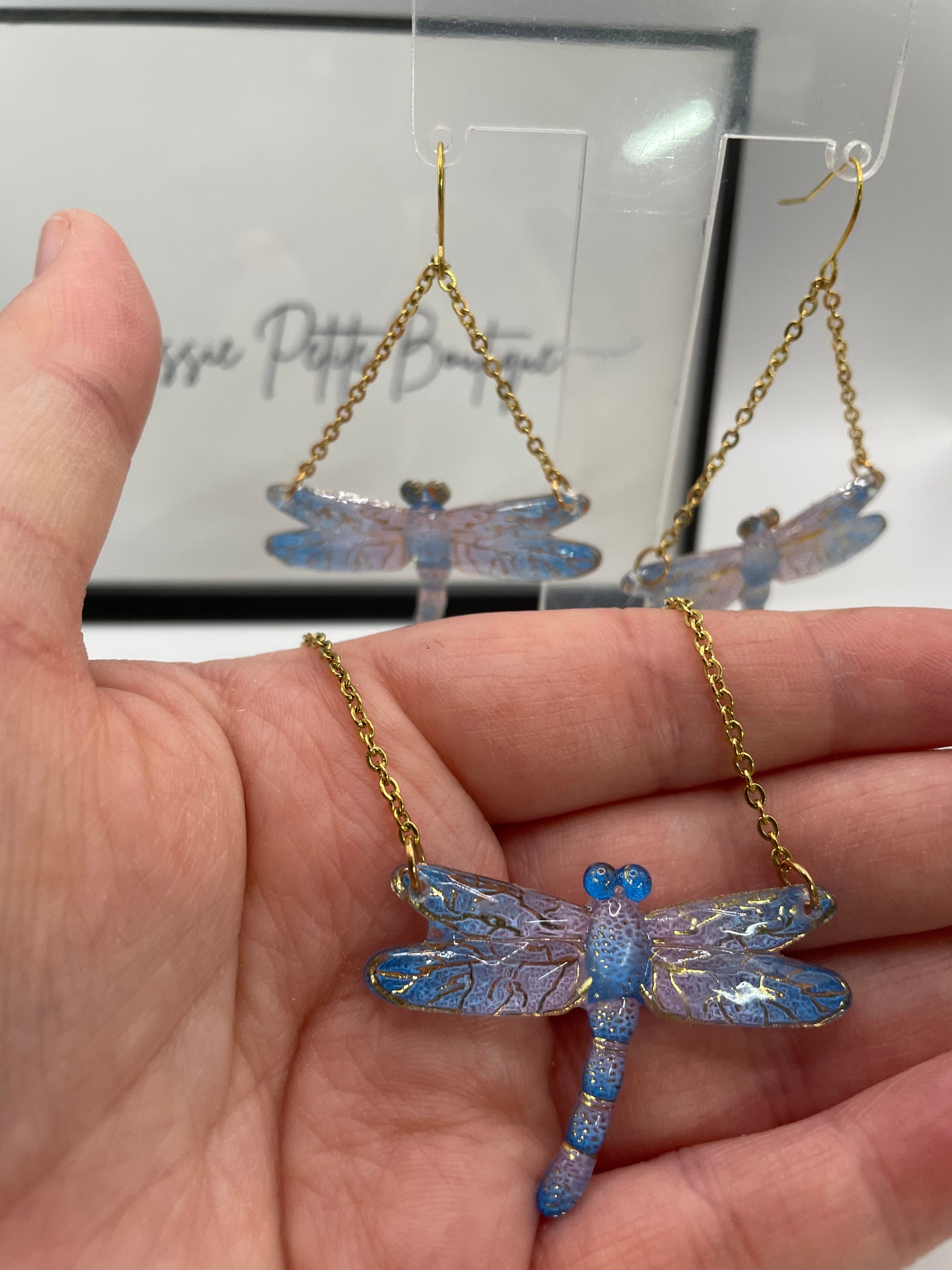 Limited Edition Dragonfly Jewelry Set – Blue Glow