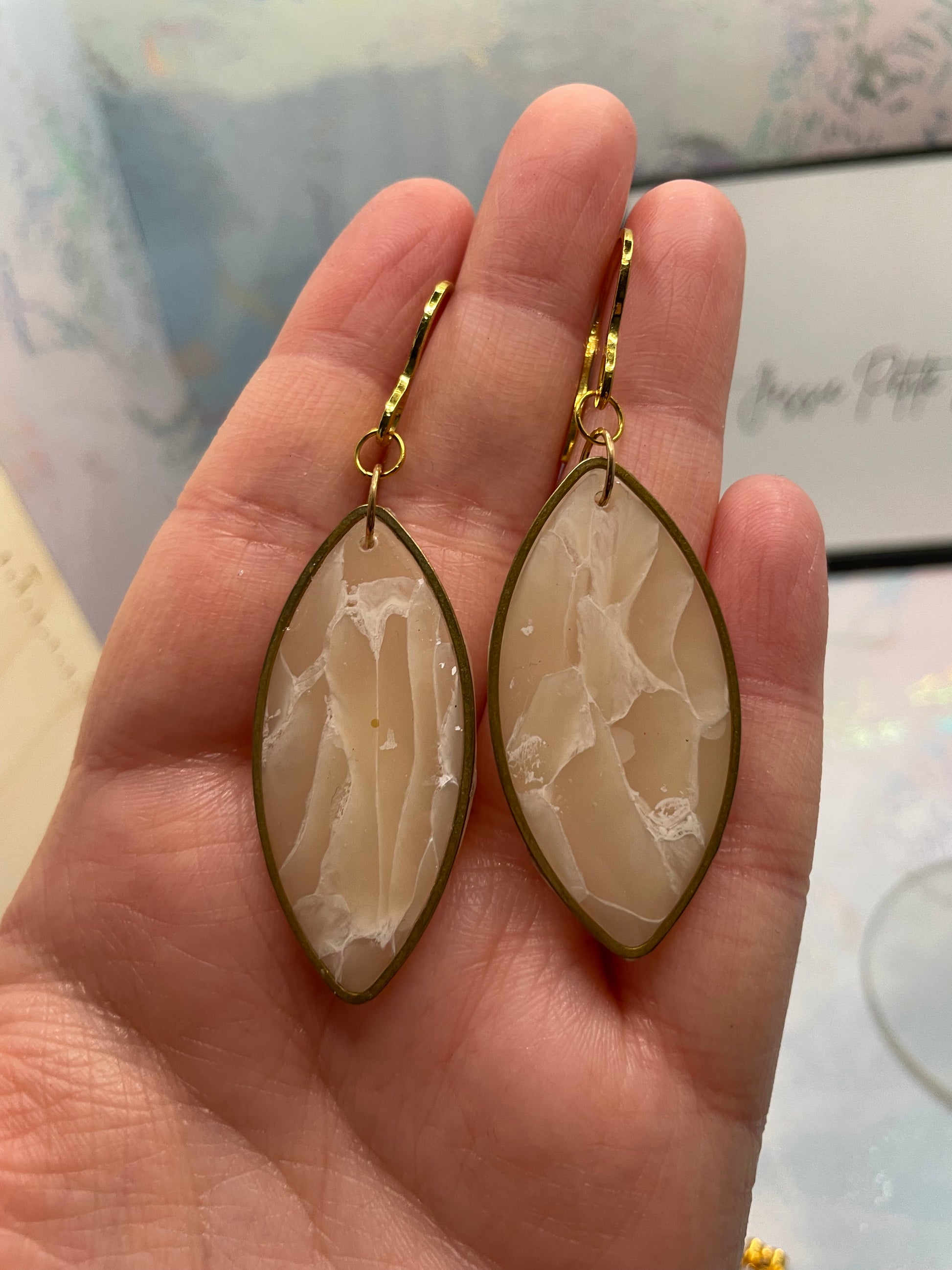 Exude timeless elegance with these long beige marble earrings, featuring a sleek and sophisticated design.