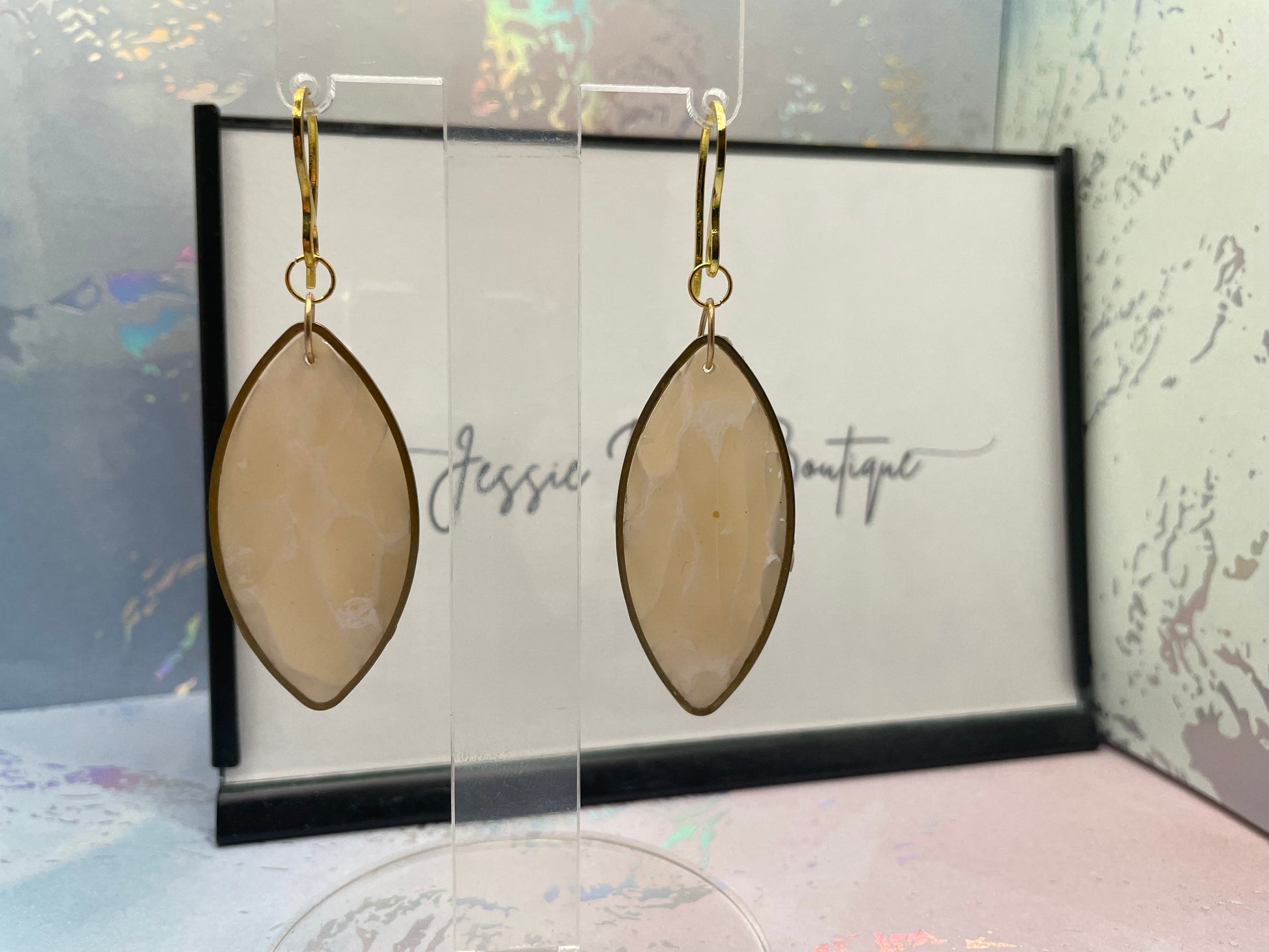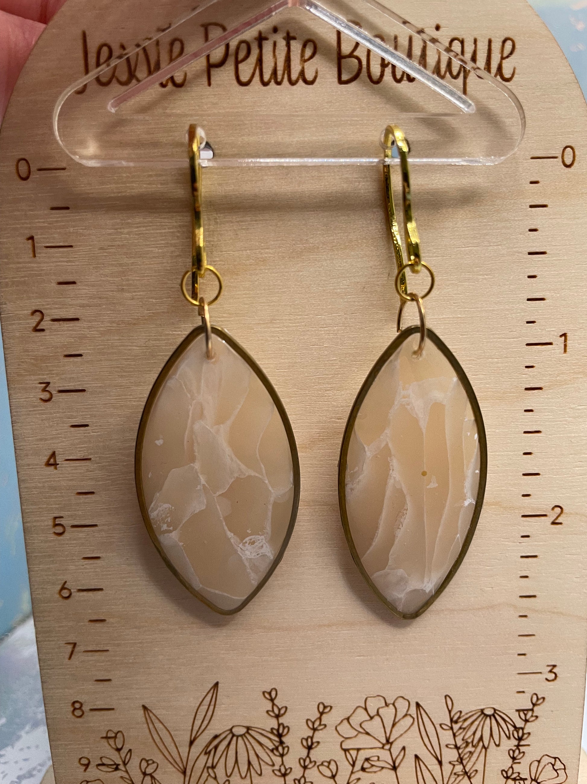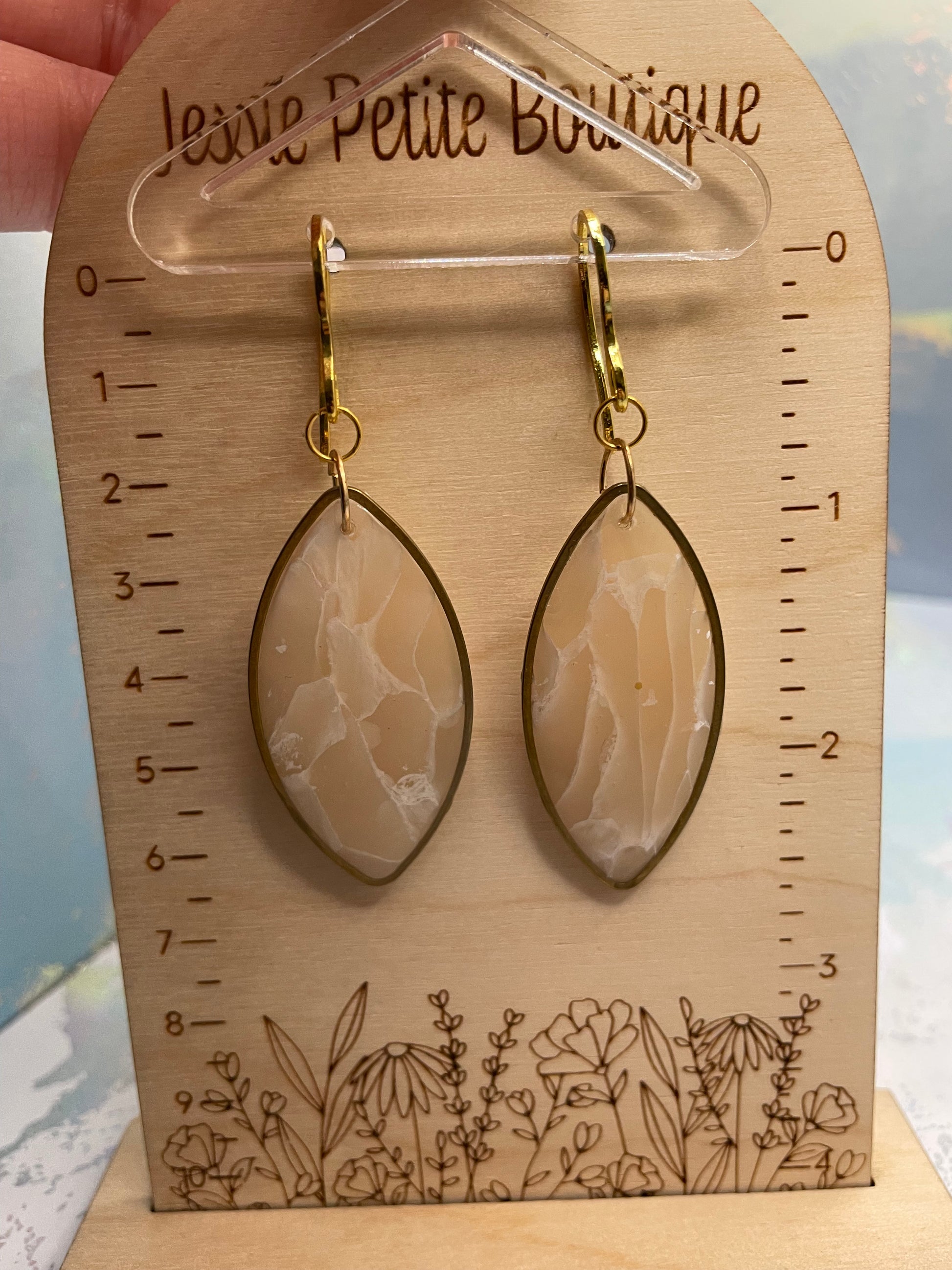 These durable and stylish earrings are a perfect accessory for any occasion. The neutral beige marble design pairs effortlessly with a variety of outfits, making them a versatile addition to your jewelry collection.