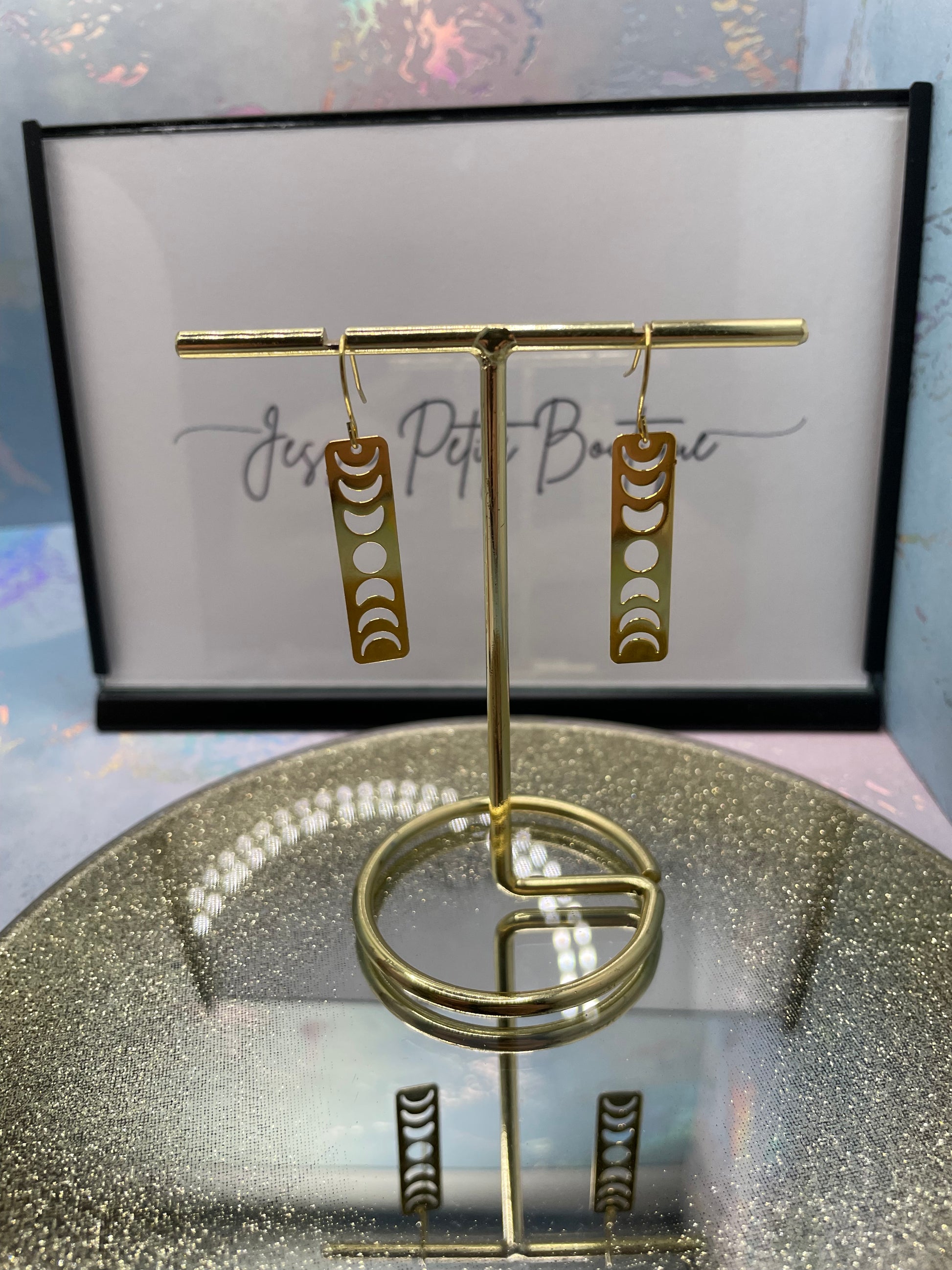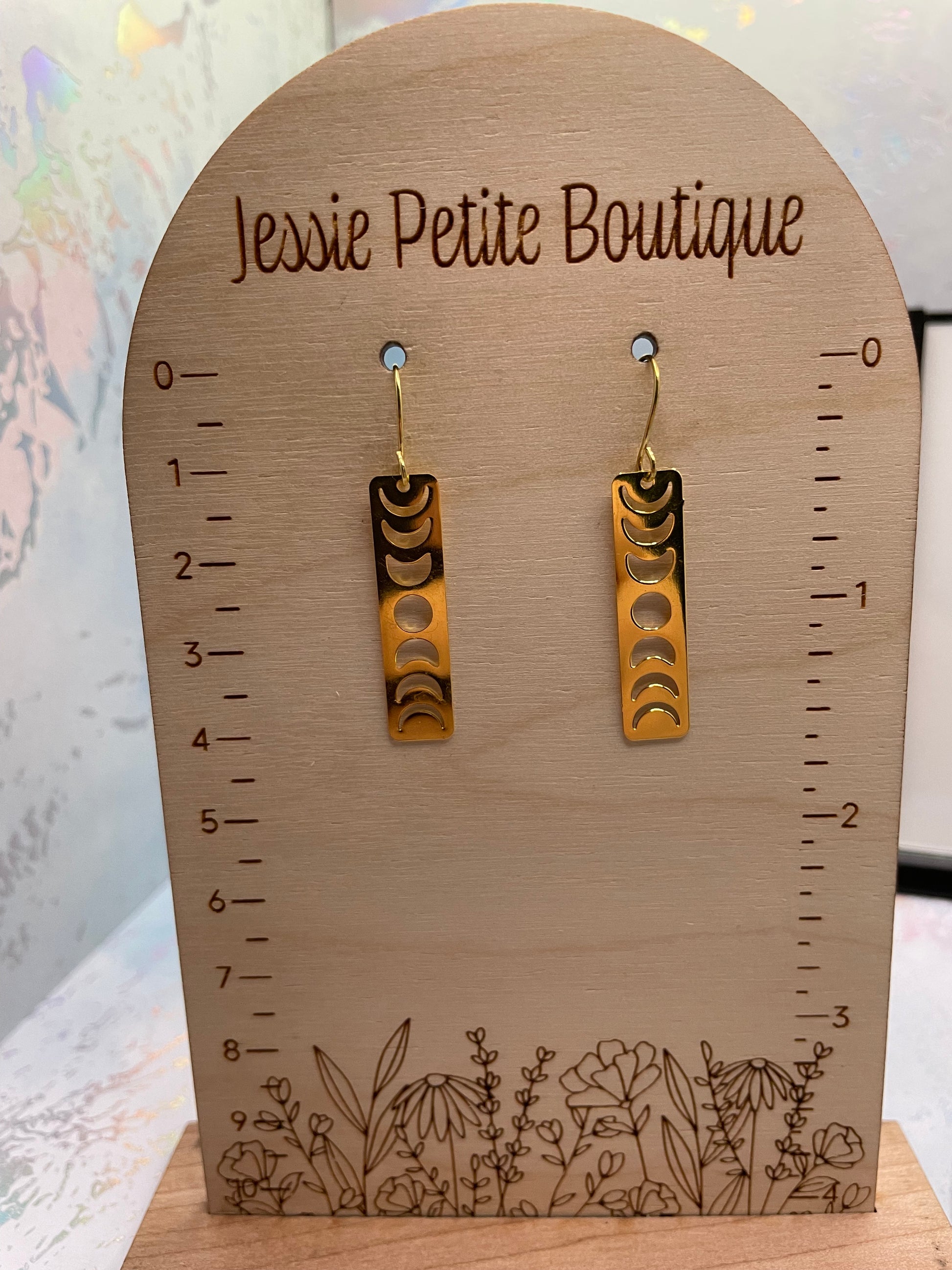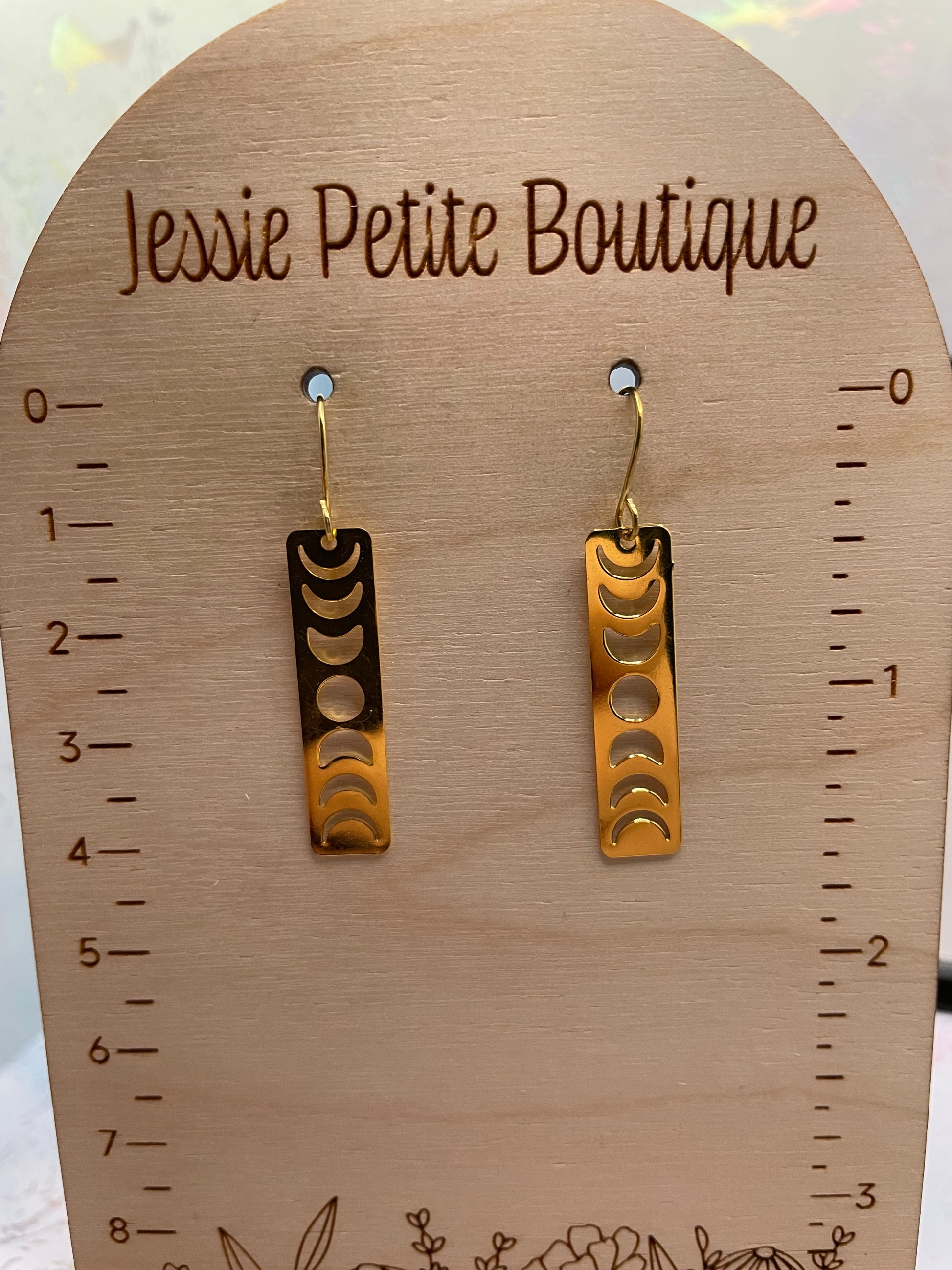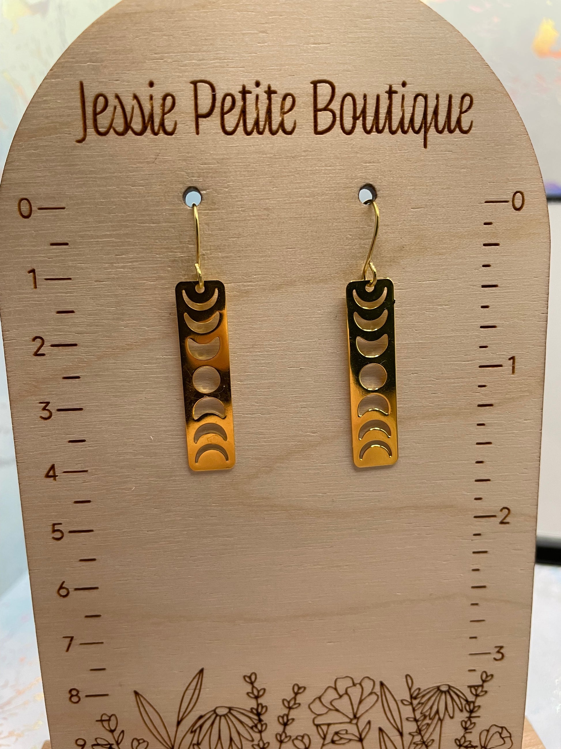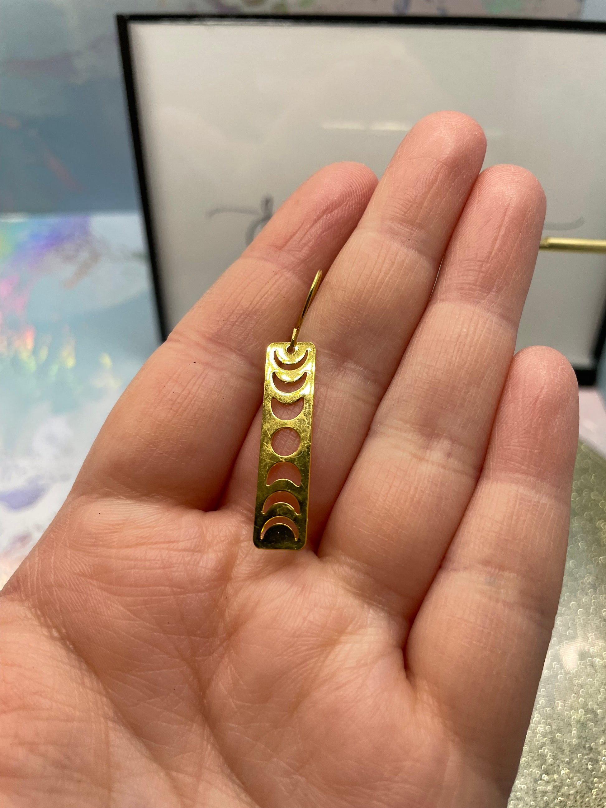 Moon Phases In Gold Rectangle Earrings NICKEL FREE