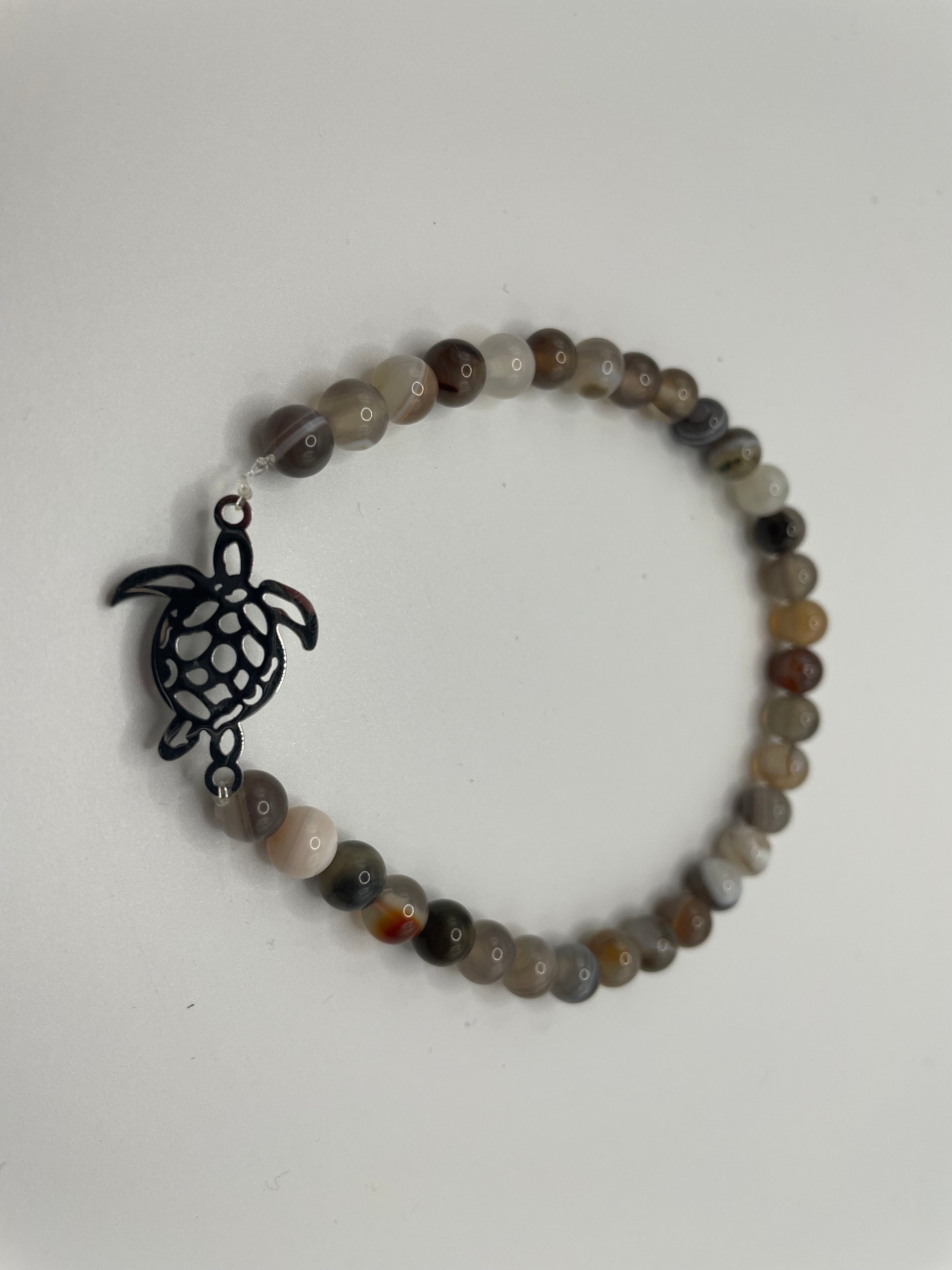 Neutral Agate Beaded Bracelet with Stainless Steel Turtle Charm