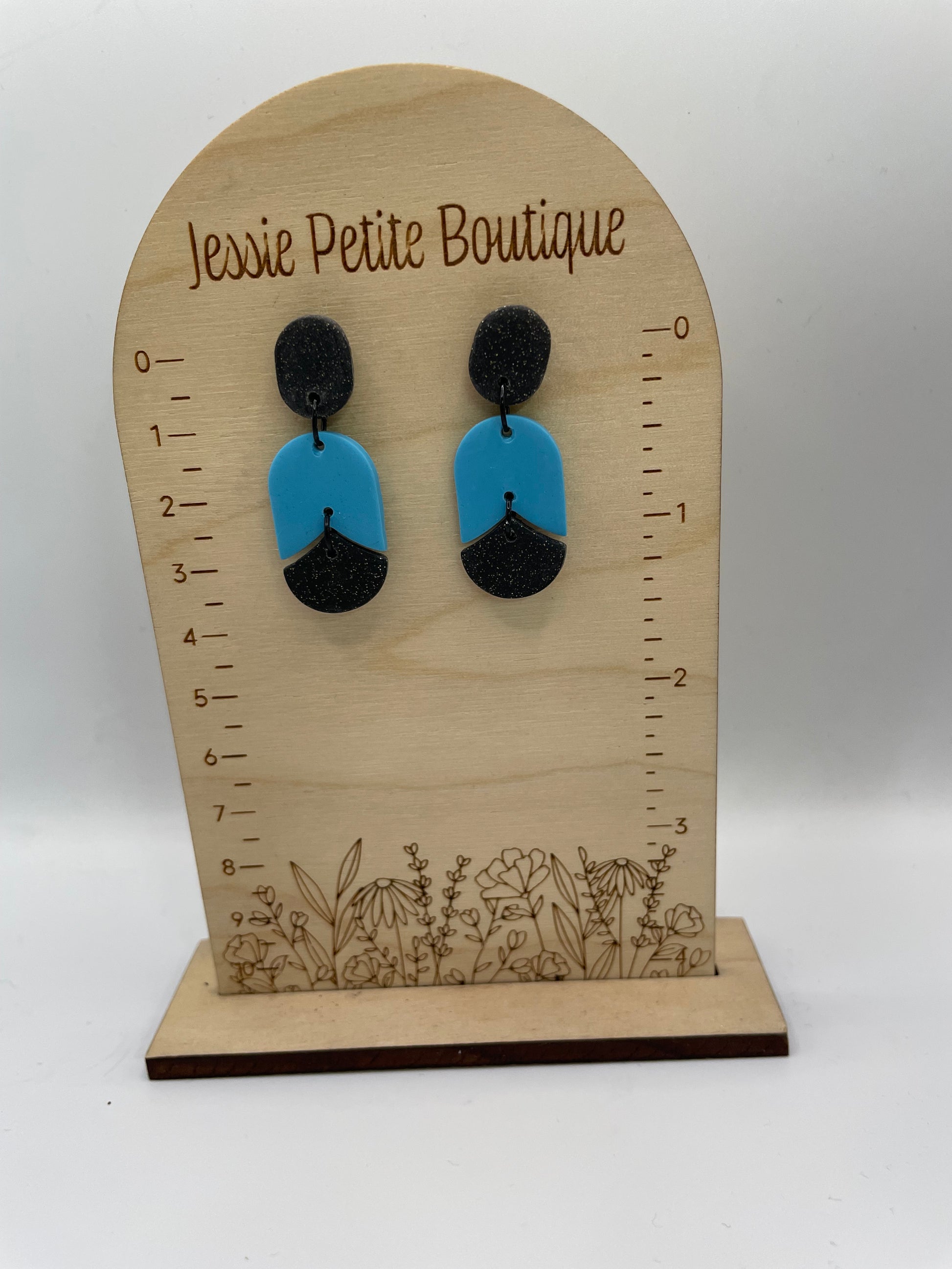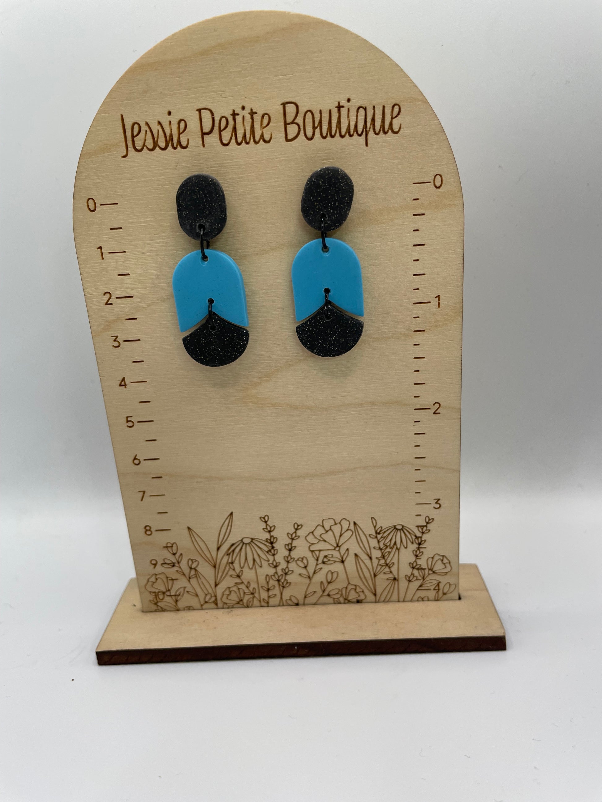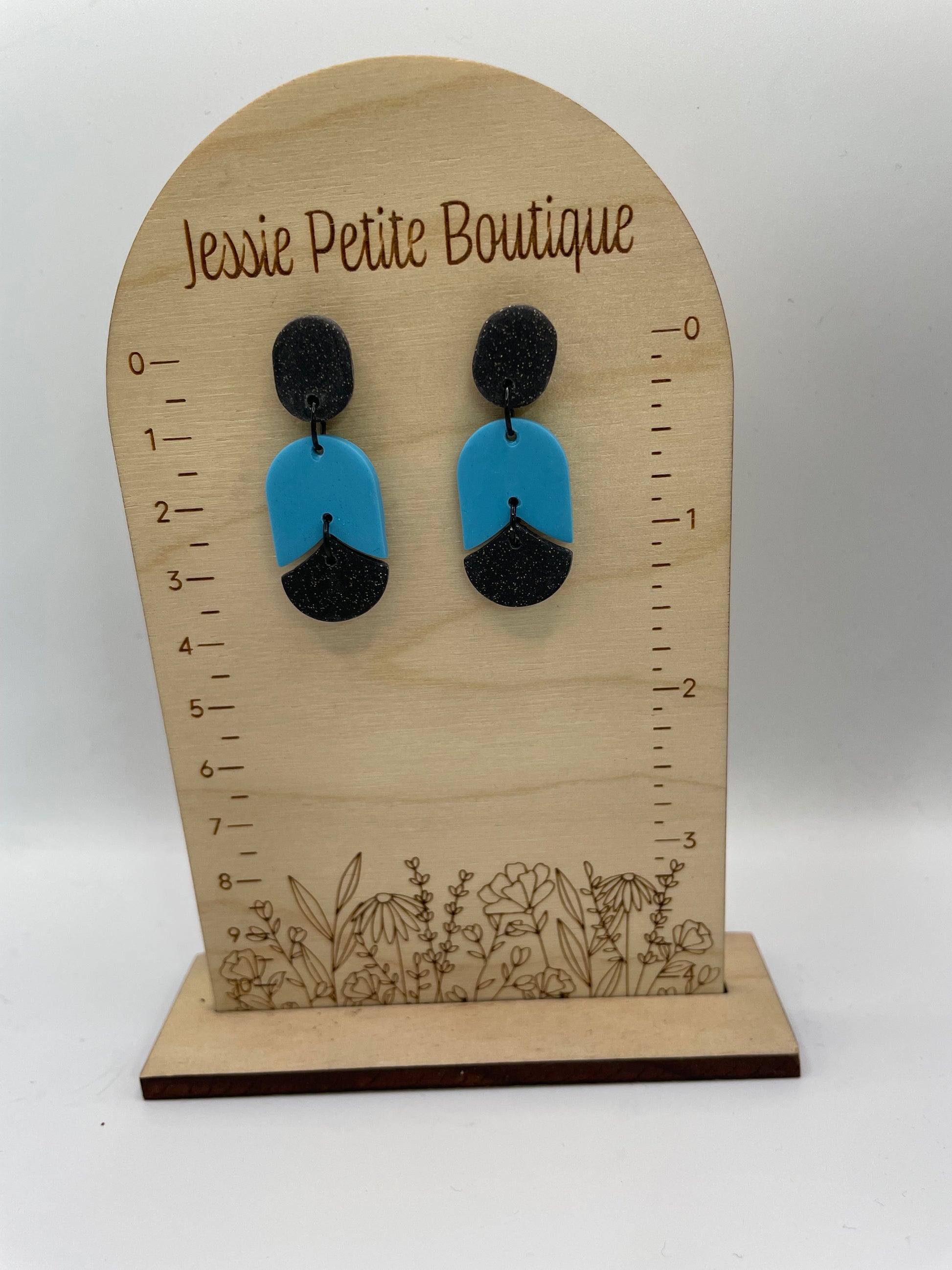 Modern and playful, the Paula earrings combine bold contrast with minimalist curves. Featuring layered ovals in matte black and vibrant blue, these handmade polymer clay earrings are a lightweight statement piece perfect for adding a pop of color to your look.