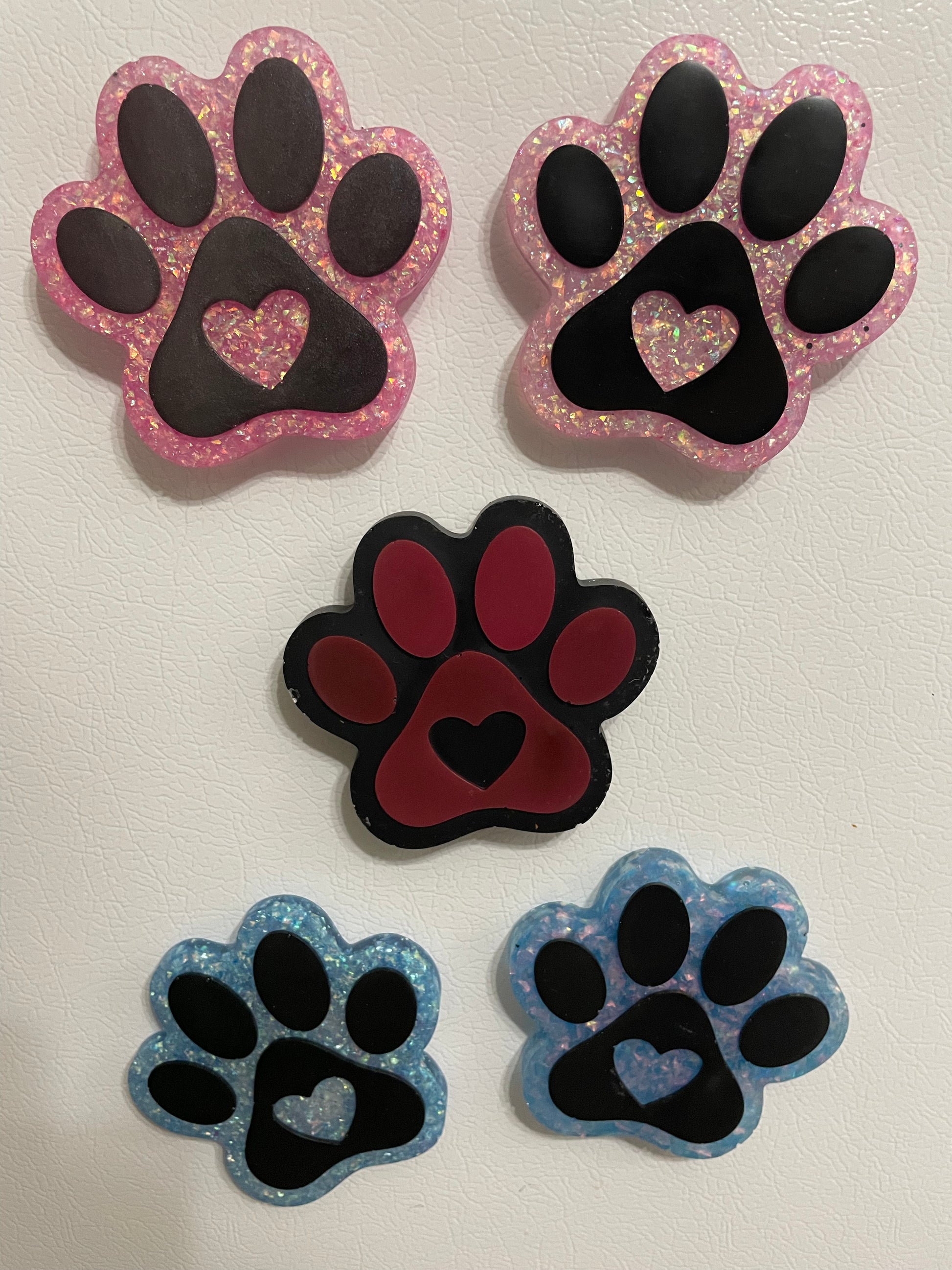 Paw Print Magnets – Sparkly Resin with Heart Design