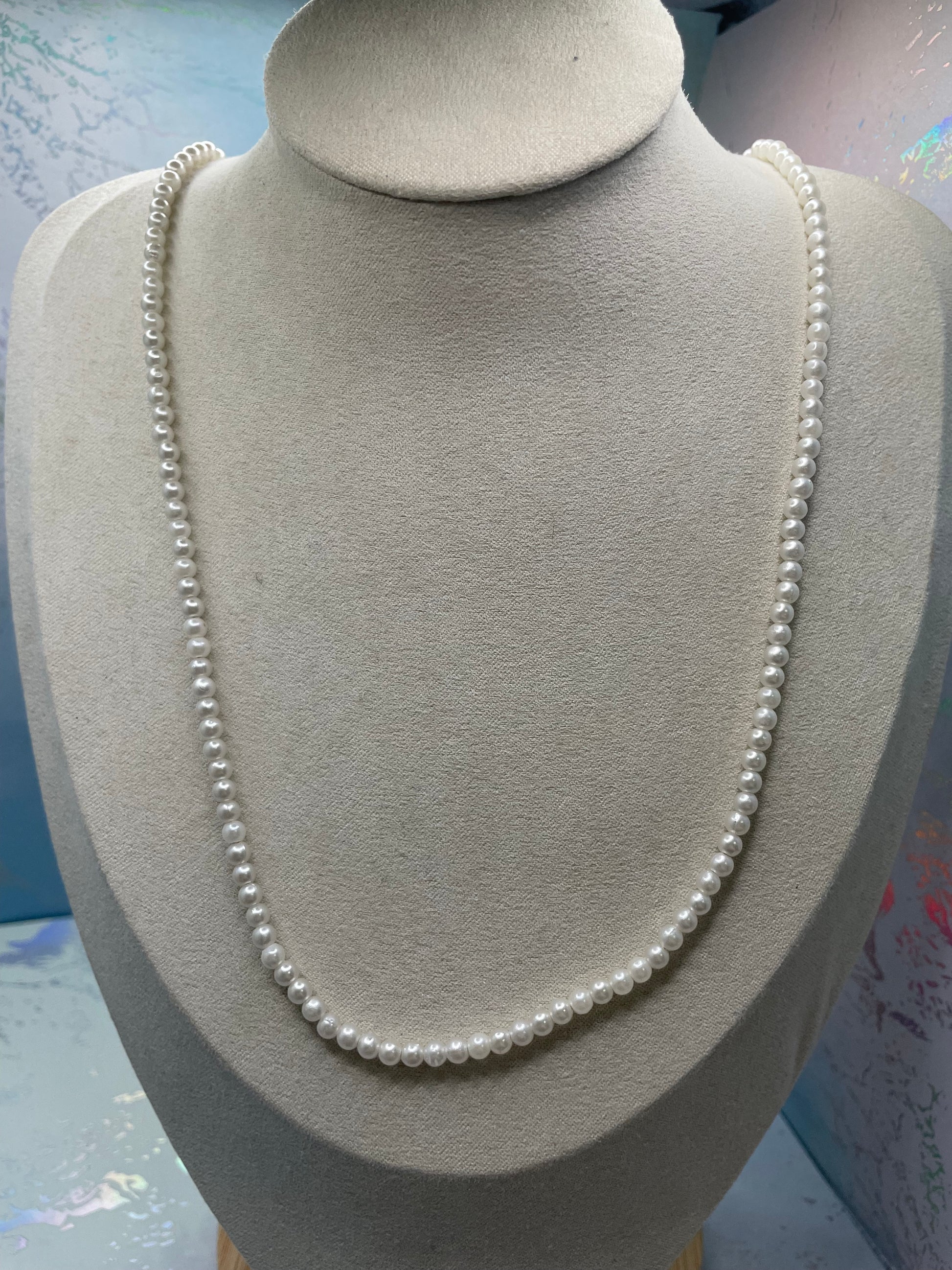 This delicate pearl necklace offers a timeless and minimalist look, perfect for everyday wear or effortless layering. Featuring smooth 4 mm pearls strung evenly along a stainless steel chain, it brings a soft, classic elegance to any outfit. The lightweight design makes it comfortable to wear all day, while the clean silhouette keeps it versatile and refined.