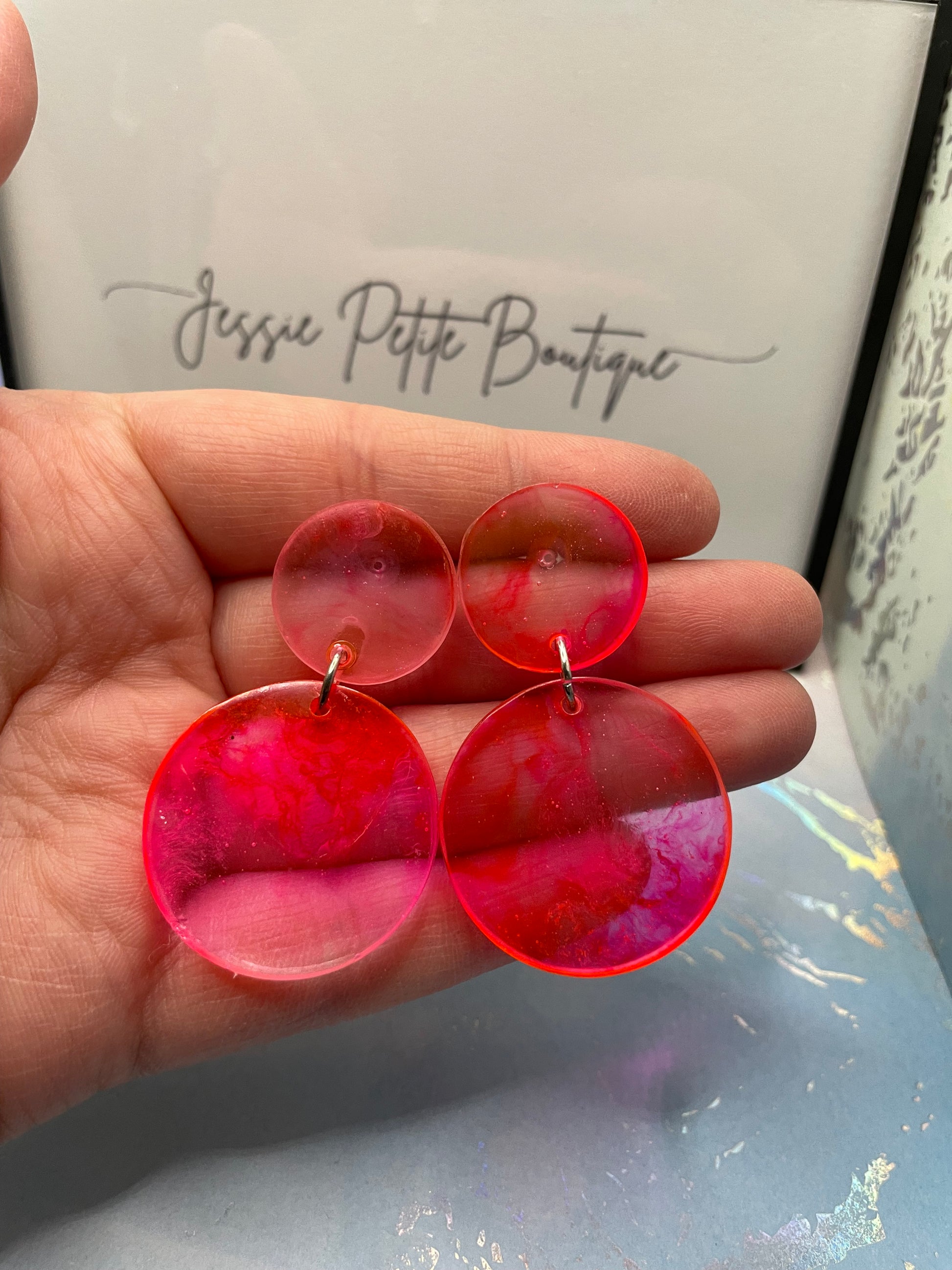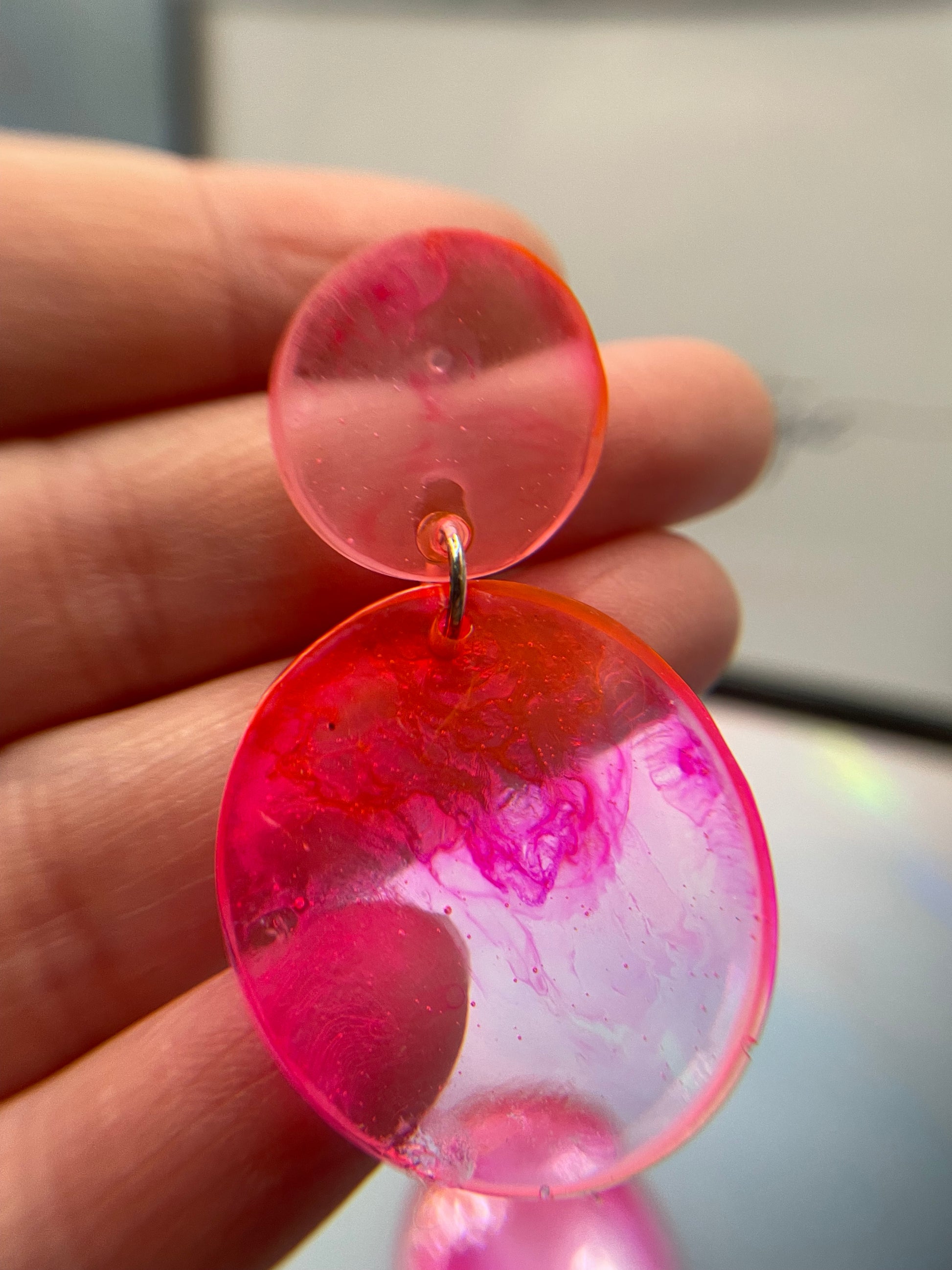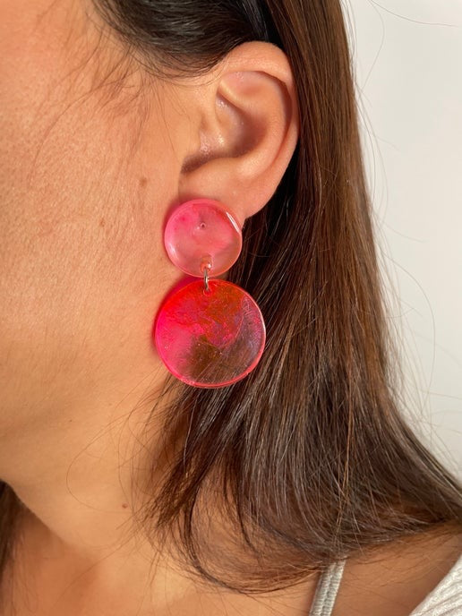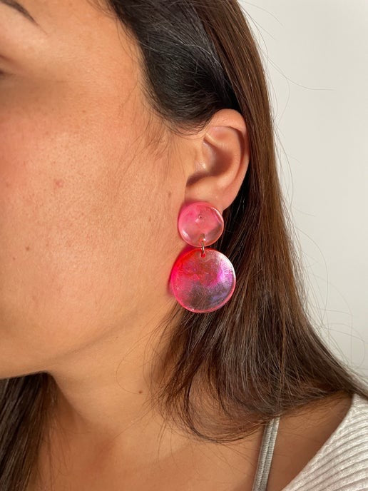 Pink And Clear Resin Circle Earrings -PLASTIC