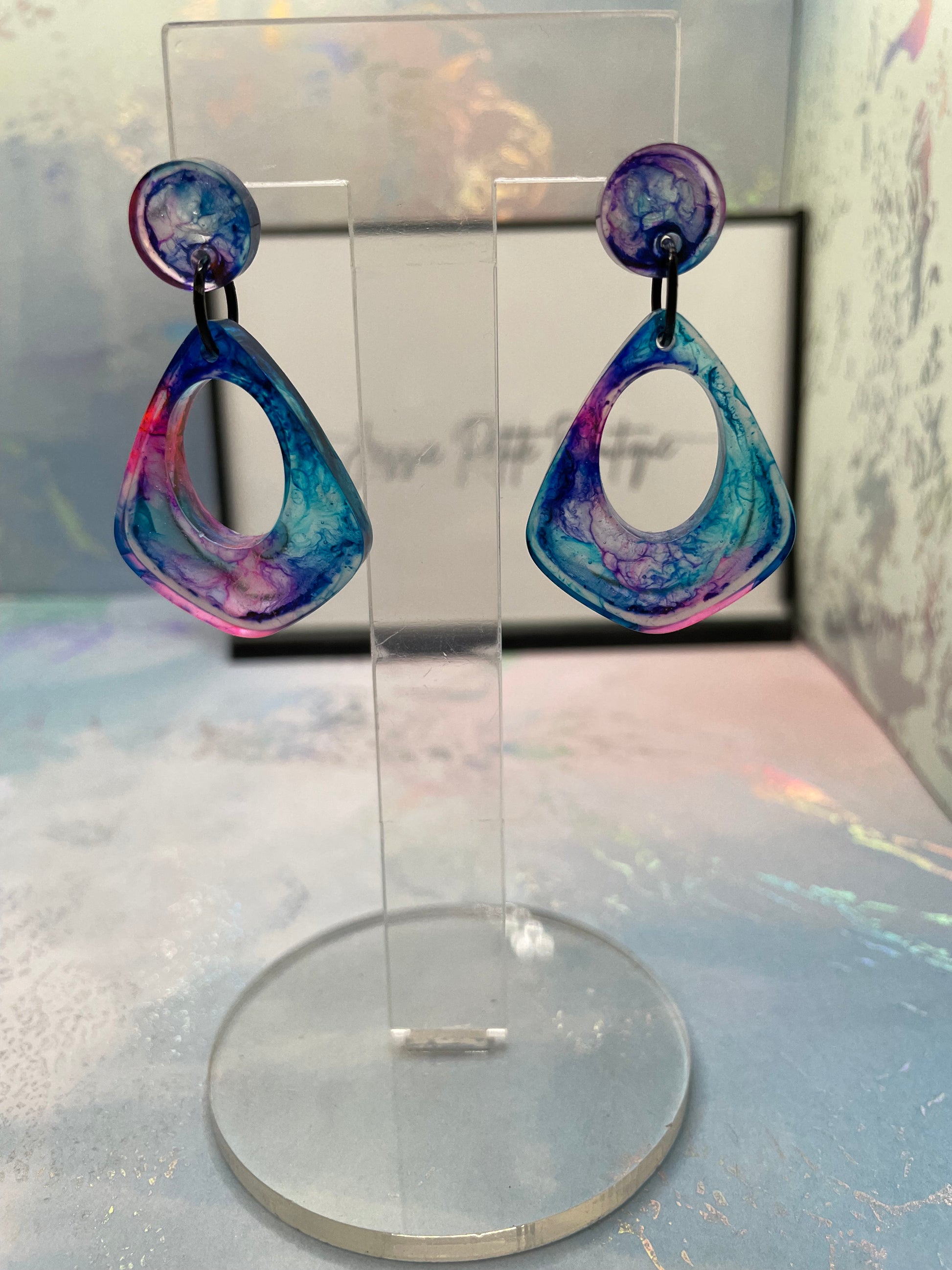 Pink, Blue & Purple Teardrop Earrings–PLASTIC