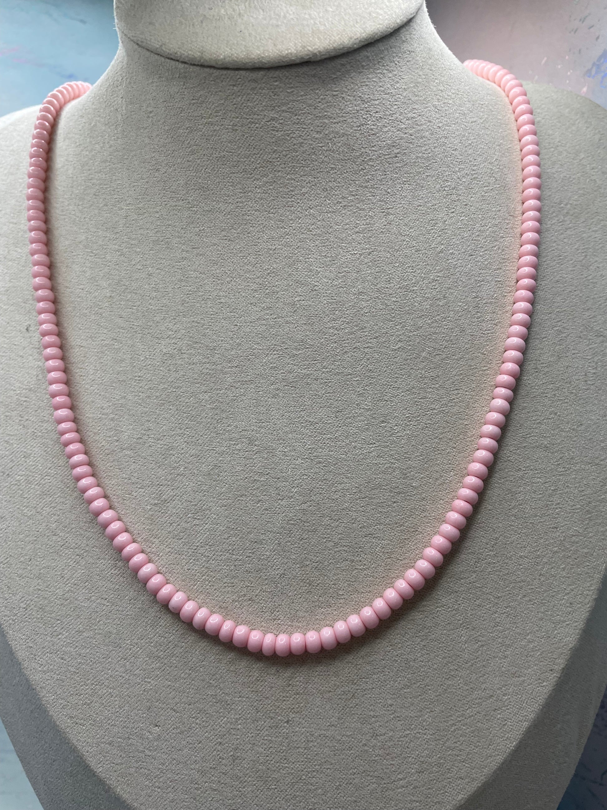 This delicate jewelry set features soft pink Czech seed beads, offering a clean and minimalist look with a subtle pop of colour. Designed for effortless everyday wear, the set includes a matching necklace and bracelet that can be worn together or separately.