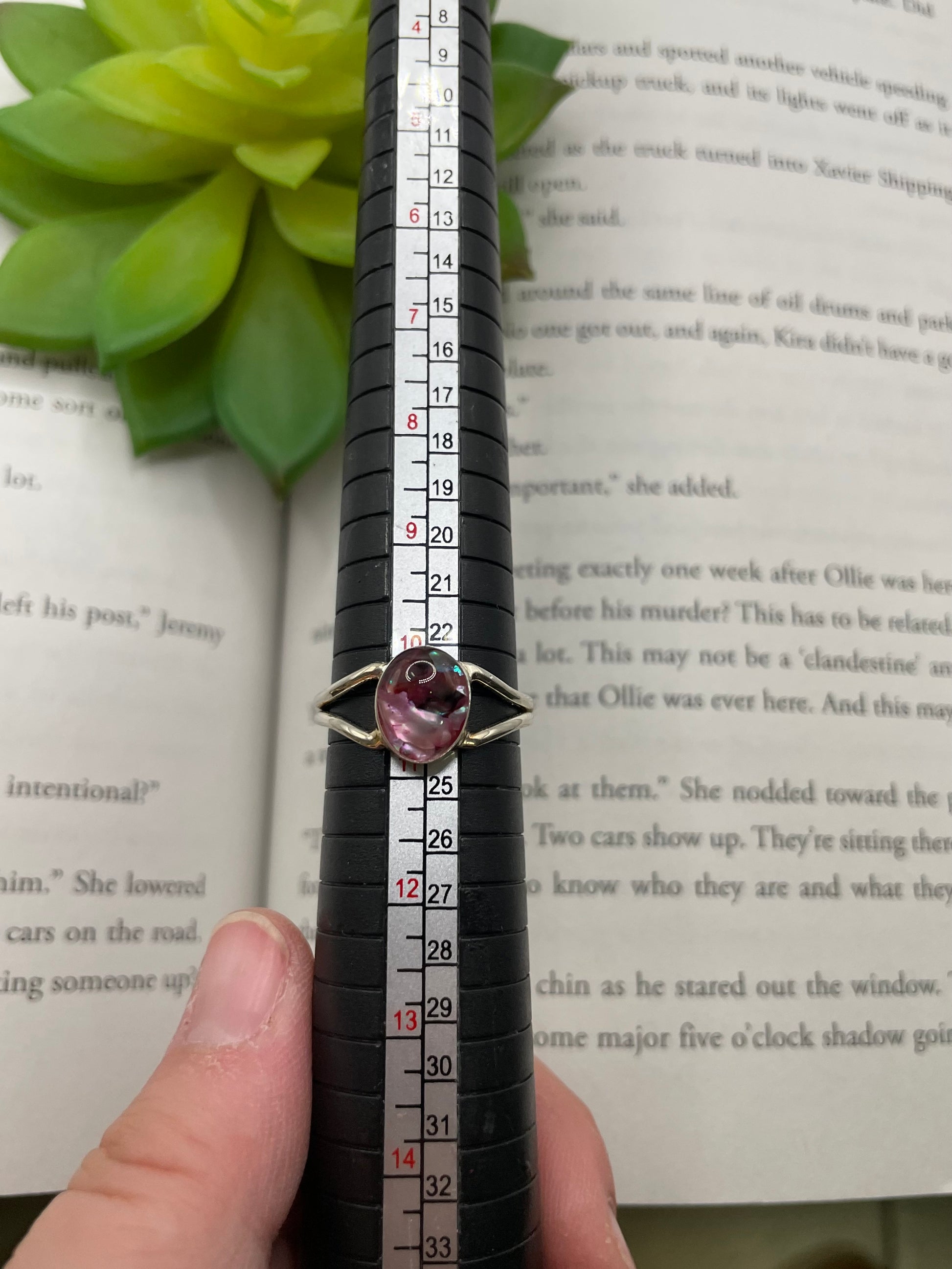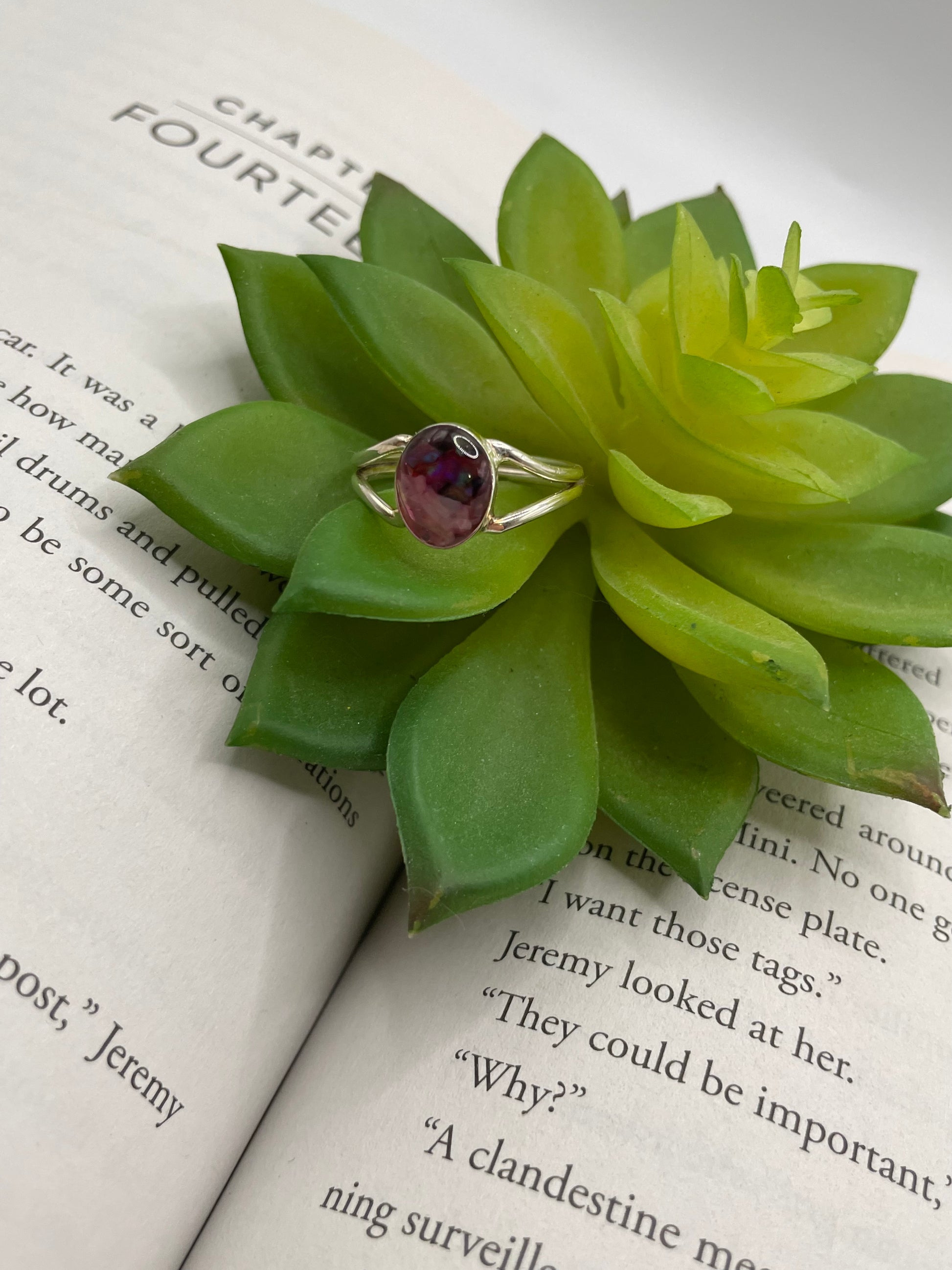 Delicate and luminous, this 925 sterling silver ring features a 9×11 mm oval bezel showcasing a pink shell preserved in resin.