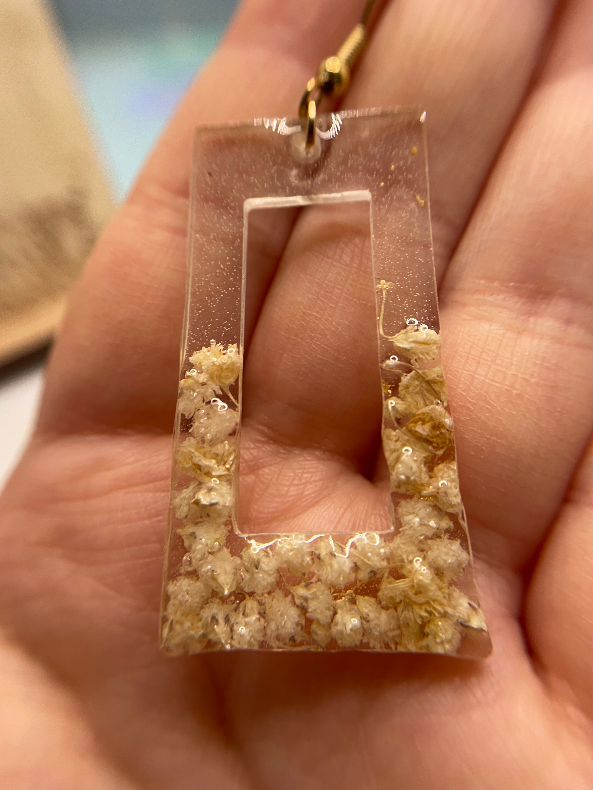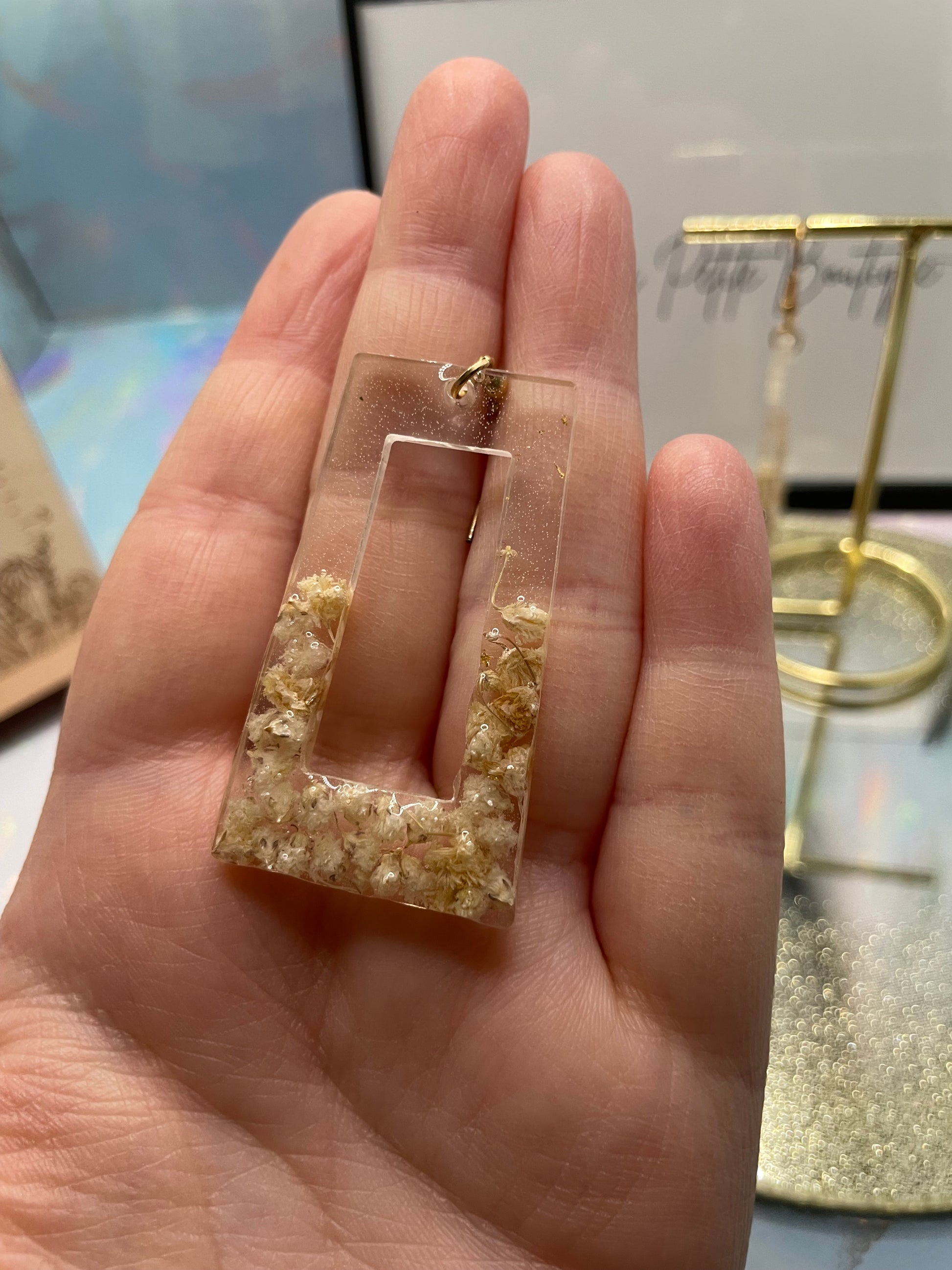 A delicate and natural touch with clear resin encapsulating dried baby’s breath flowers, perfect for nature lovers.