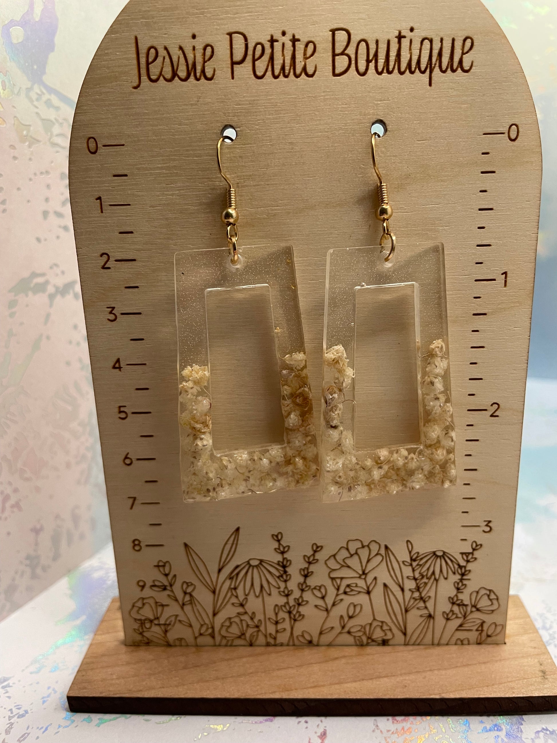 Whether you prefer a bold sparkle or a natural floral touch, these Rectangle Dangle Earrings cater to various styles and occasions. Perfect for adding a unique flair to your jewelry collection, they are lightweight, durable, and effortlessly chic.