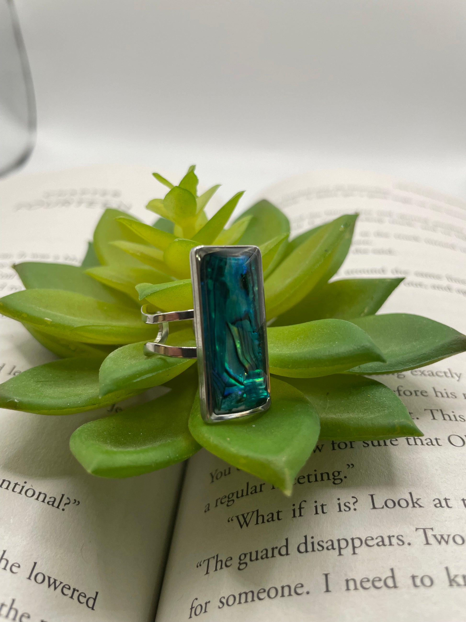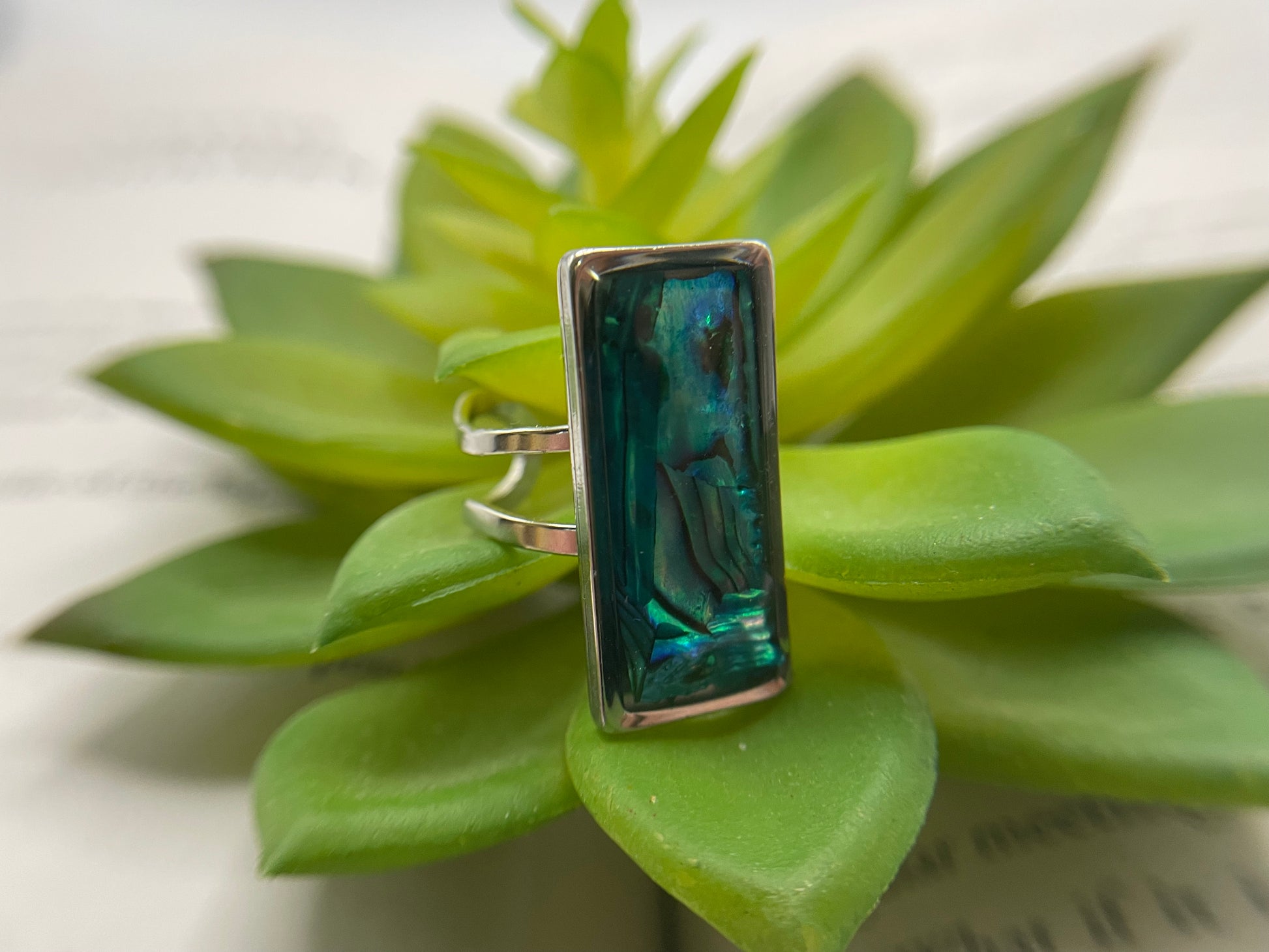 ✨ Each ring is handcrafted and unique, with naturally iridescent tones inspired by the ocean.