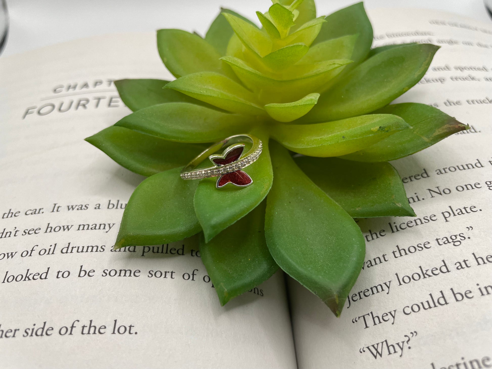 Red Butterfly ring with Zircon-Size 7 ½ US