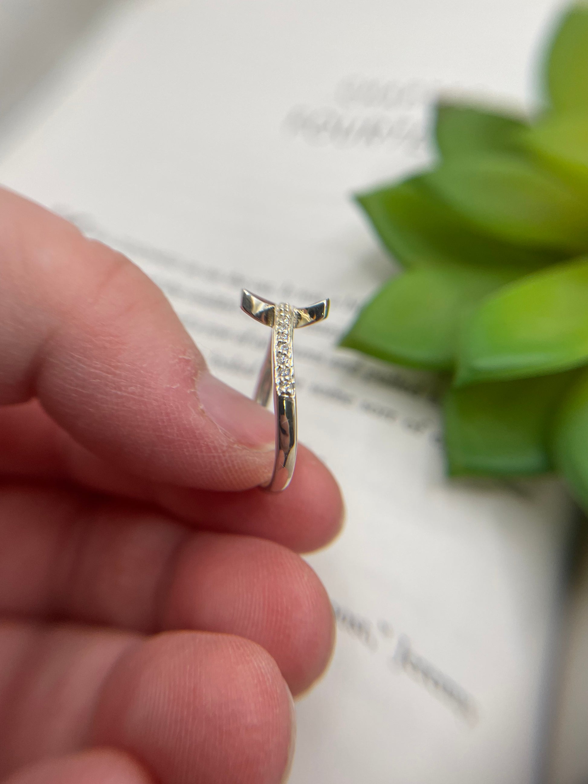 The zircon-studded band adds a refined sparkle that complements the vivid red tones of the butterfly.