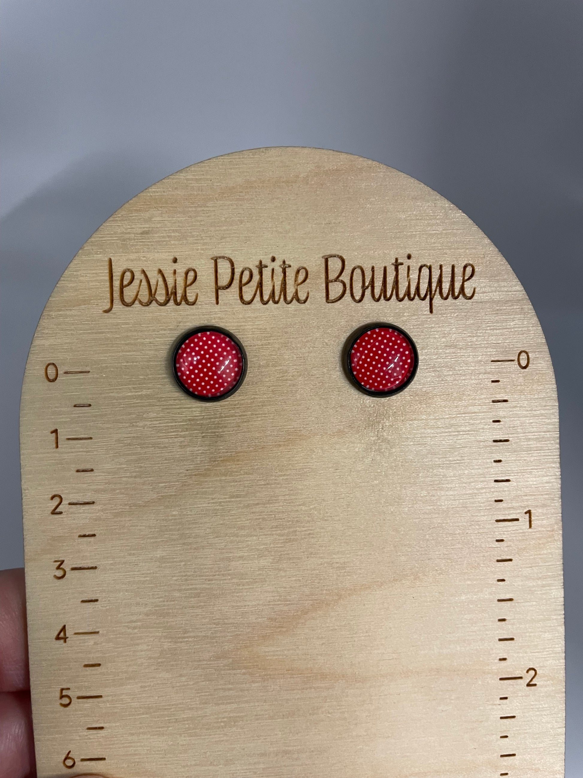 Red Polka Dot Stud Earrings-Nickel Free+Stainless Steel
