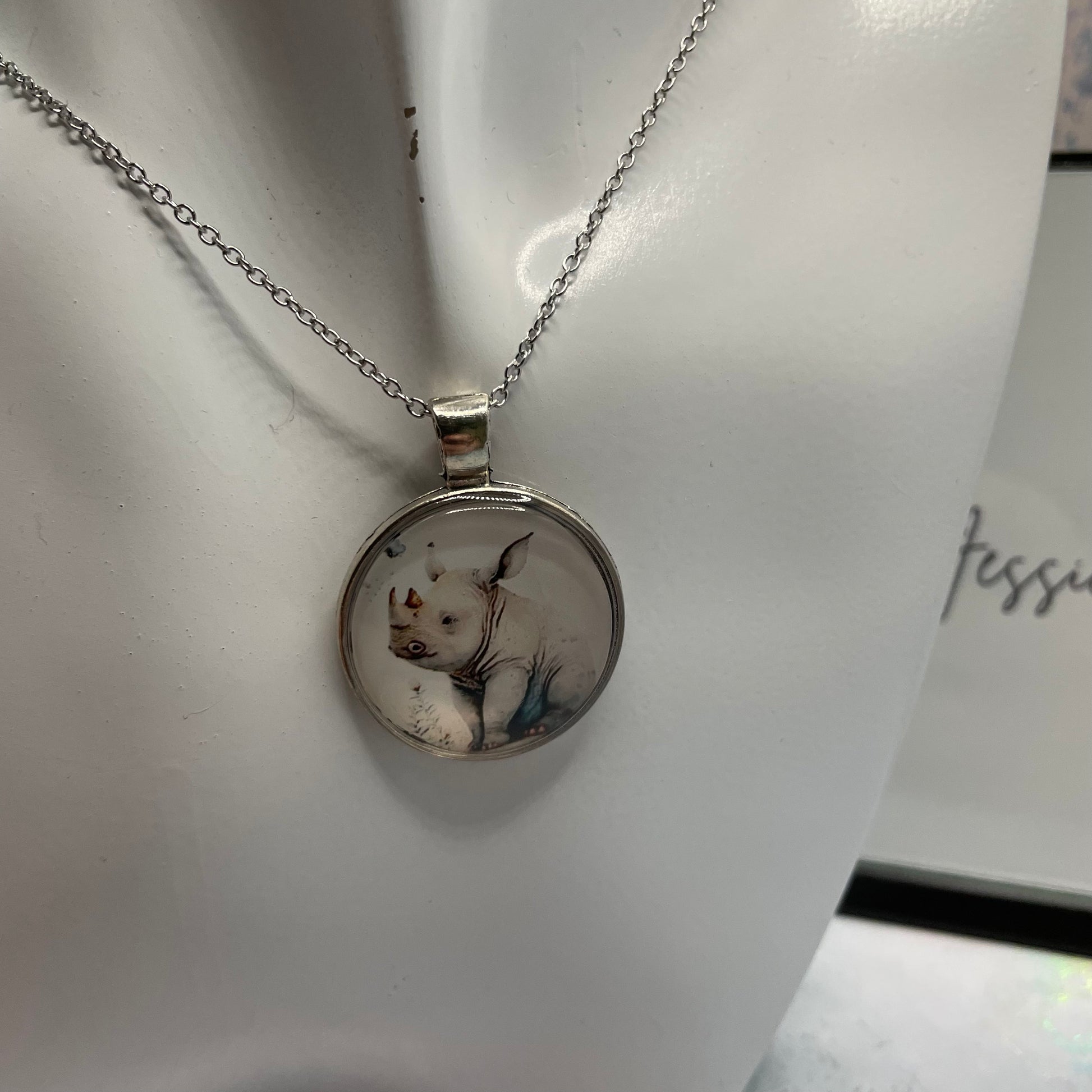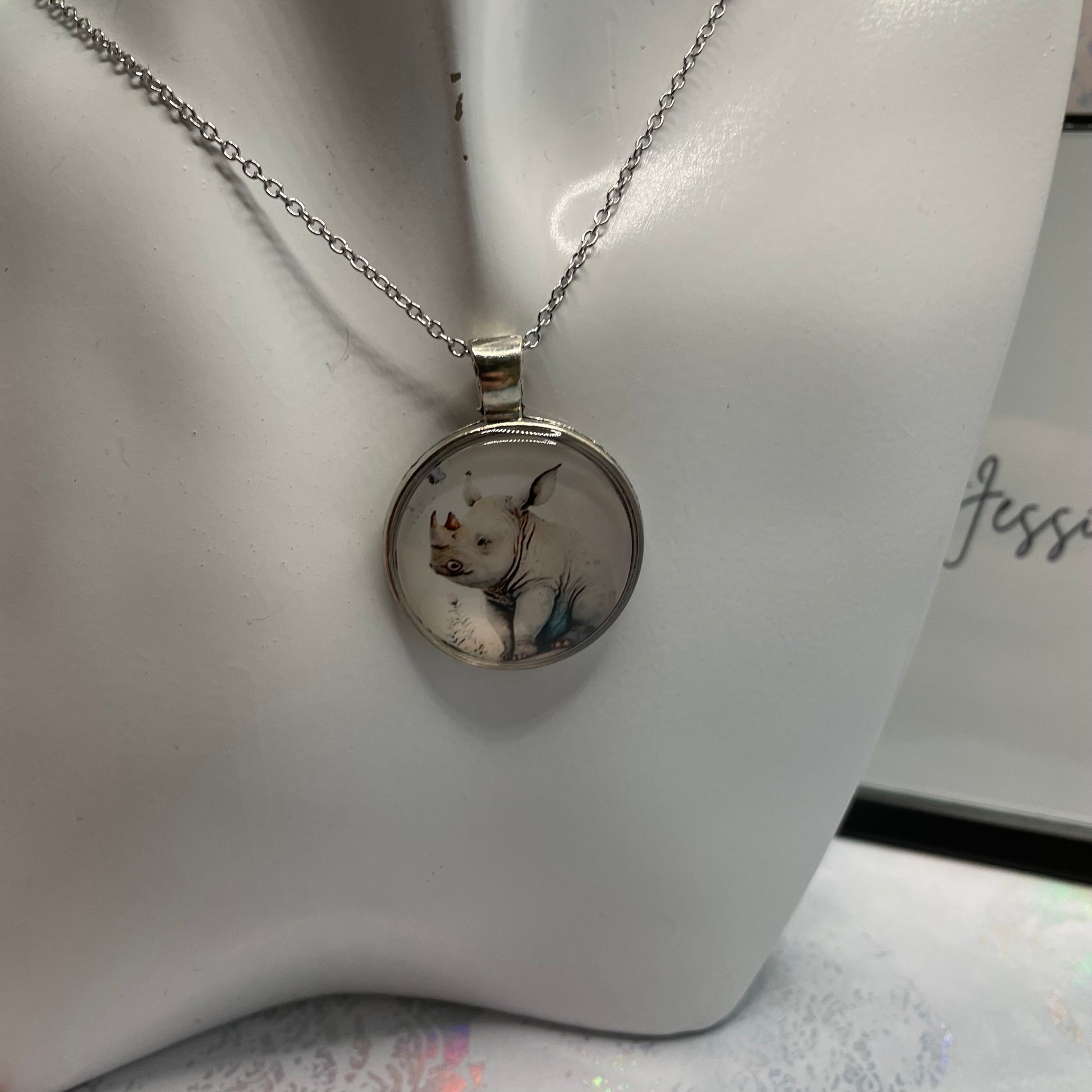 Rhinoceros Cabochon Necklace – 20'' Silver Chain