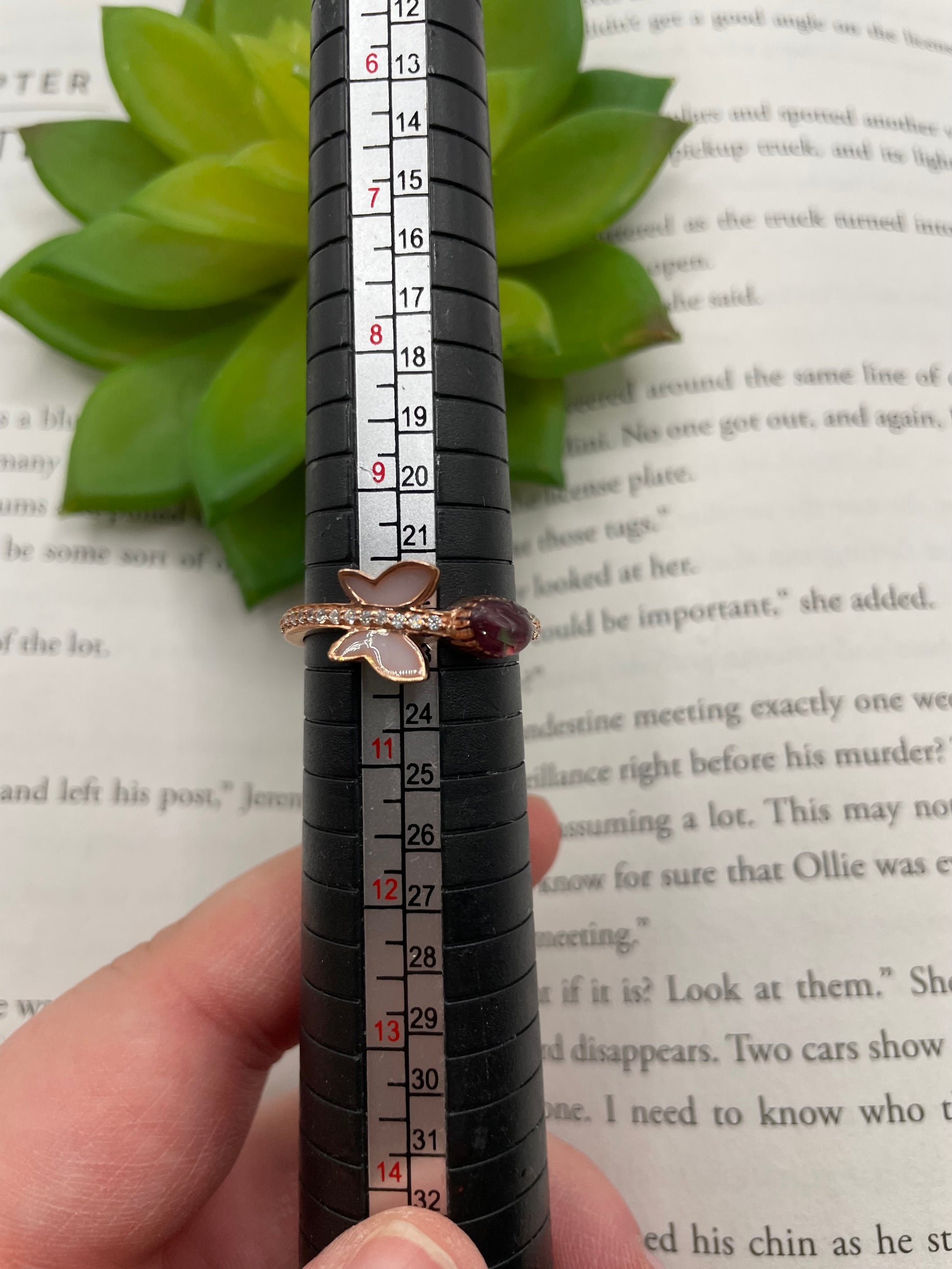 Rose Gold Butterfly Ring with Shell Accent-Size 10US
