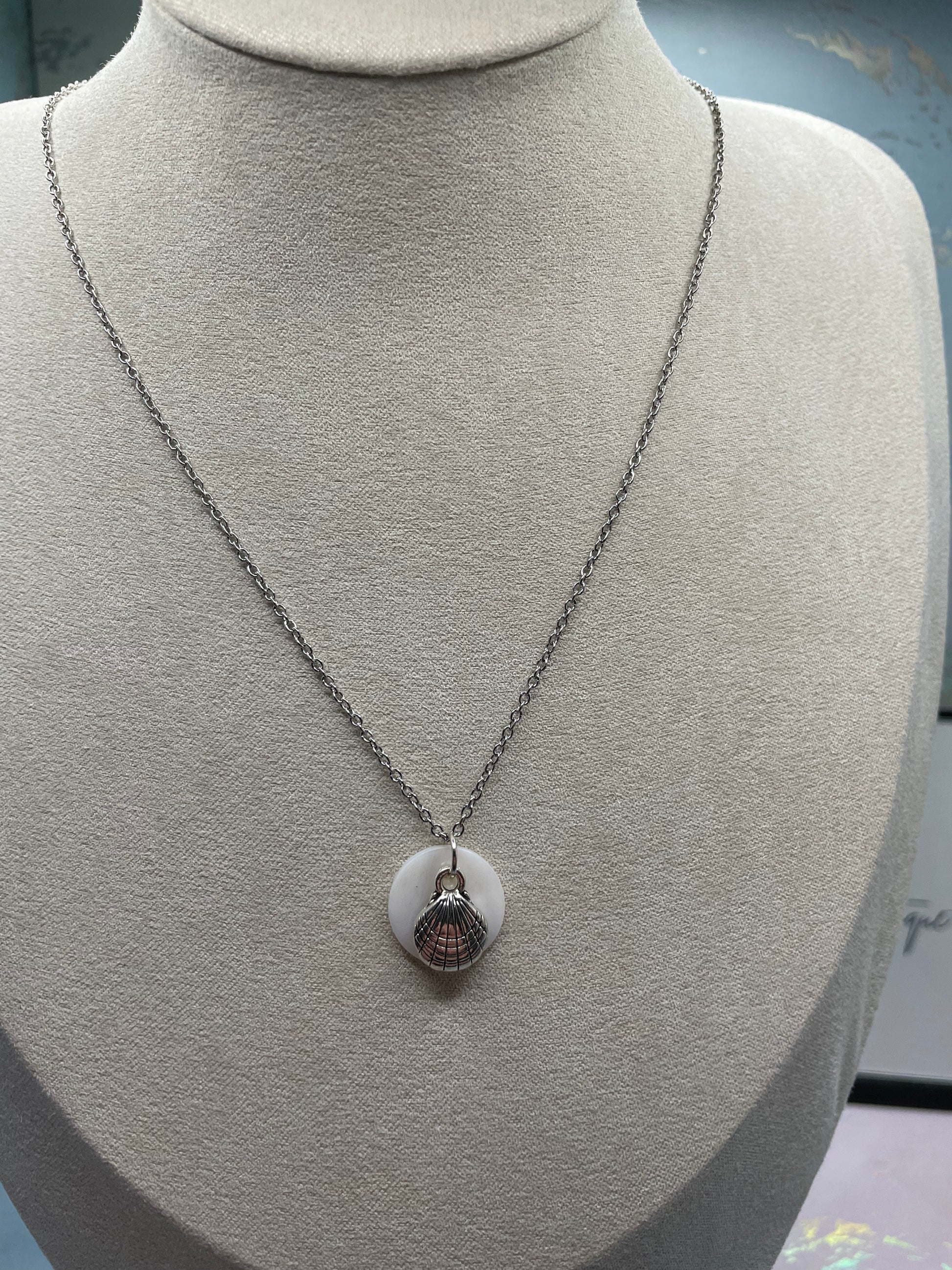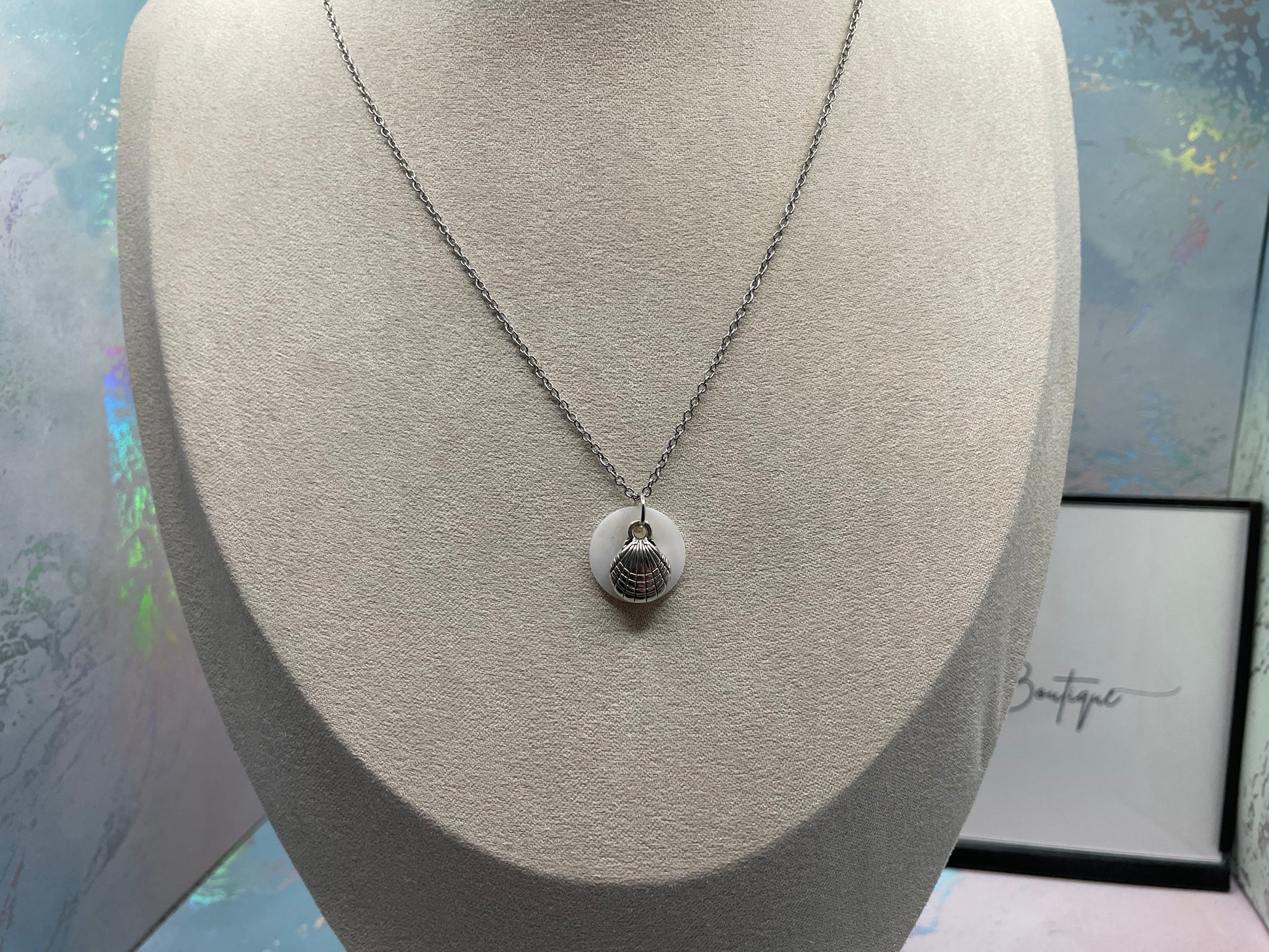 Silver Clam On Shell Necklace - 18''STAINLESS STEEL