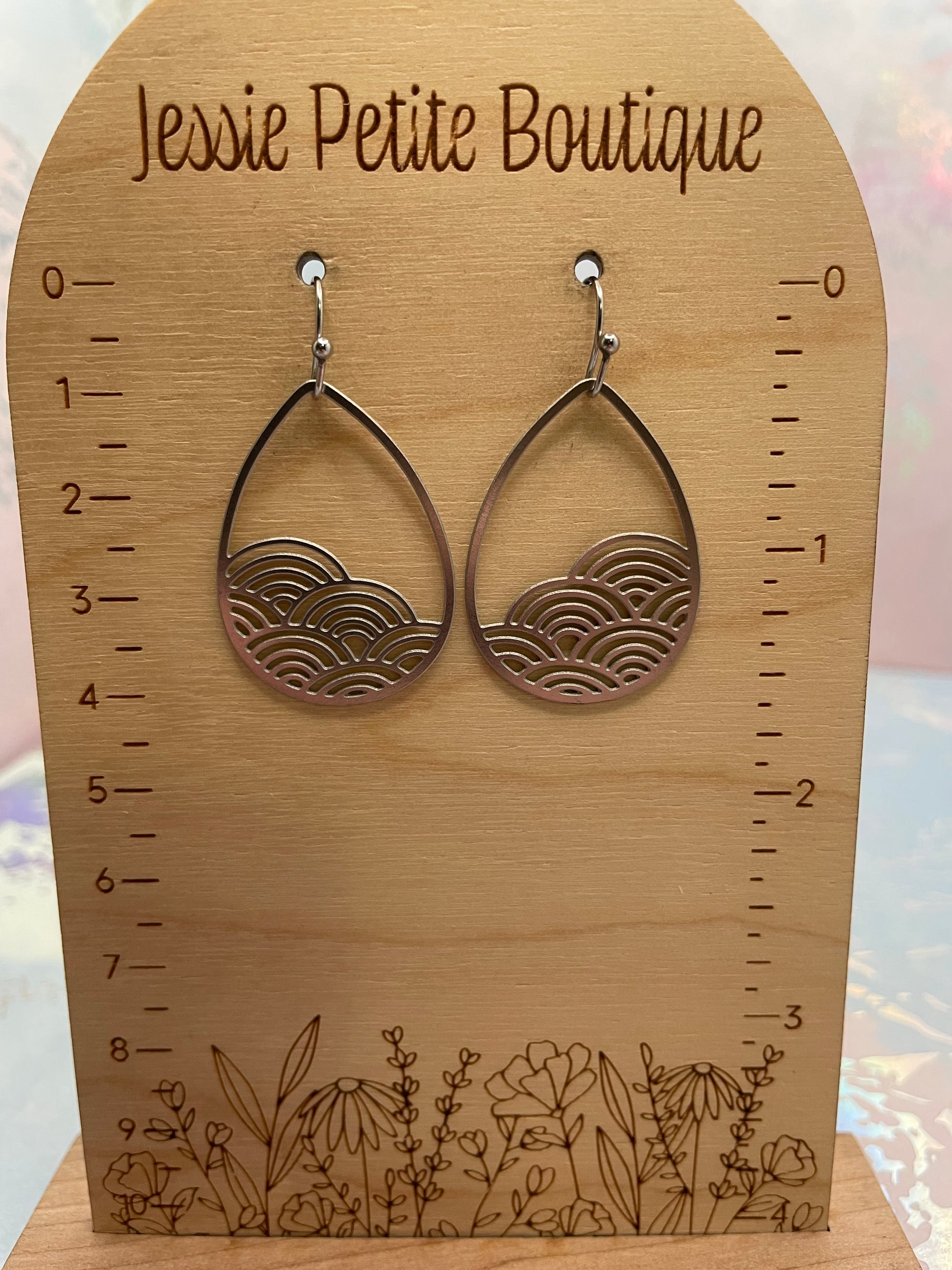 Silver Metal Teardrop Earrings With Circle designs-Stainless Steel