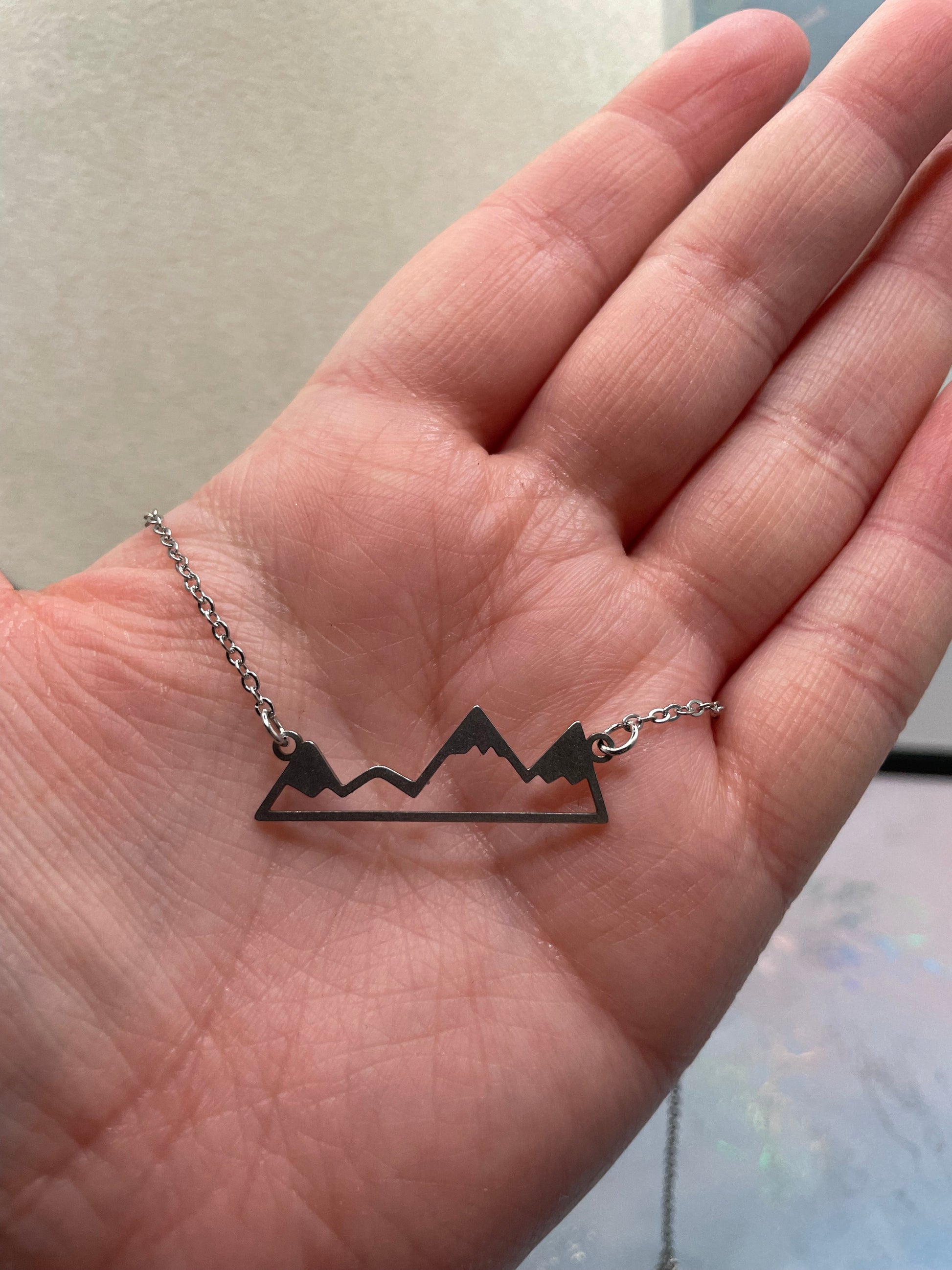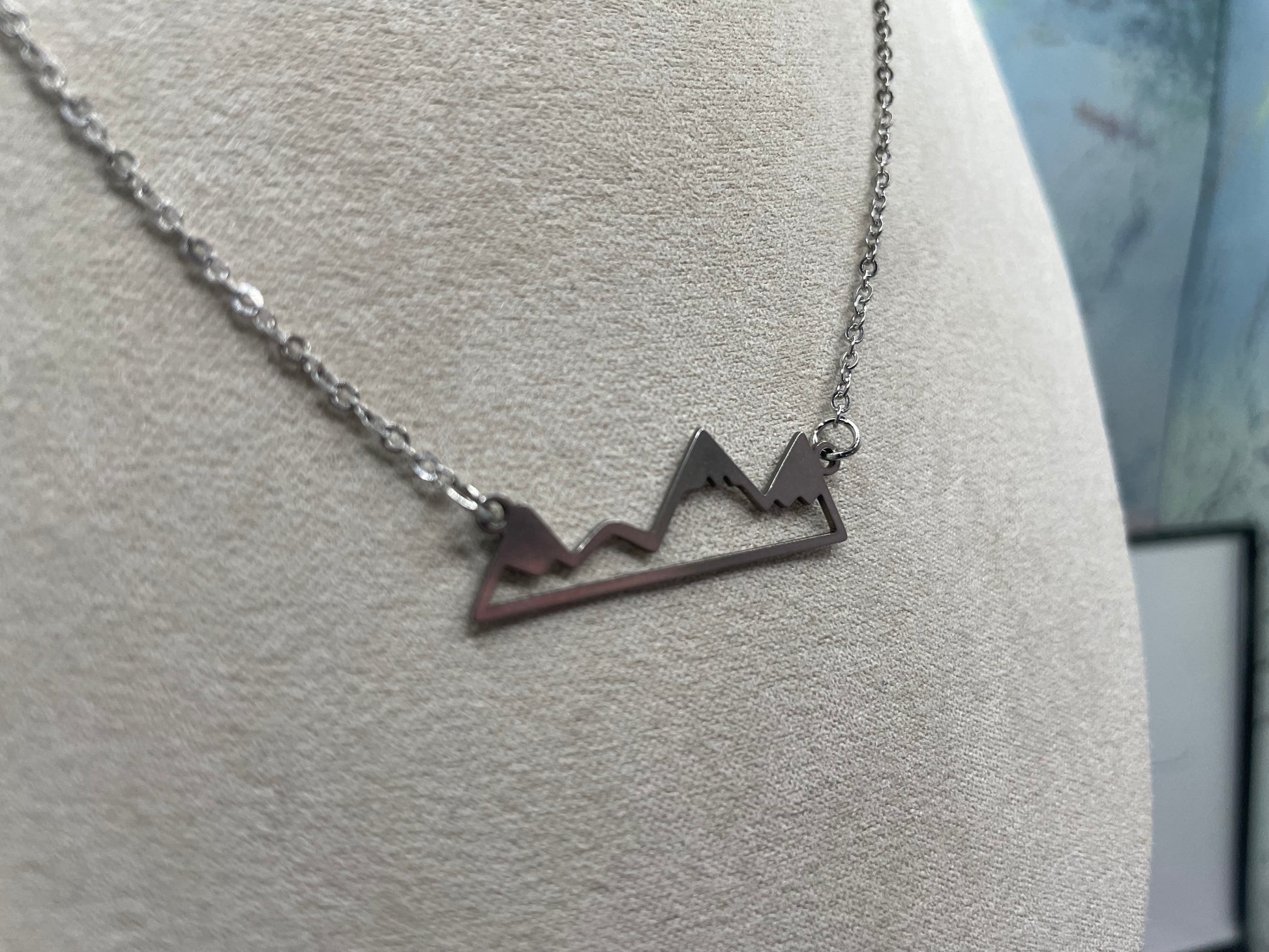 Capture the beauty of nature with this elegant silver mountain-shaped pendant necklace. A perfect accessory for outdoor enthusiasts or those who find inspiration in the great outdoors, this minimalist design adds a touch of serenity to your everyday look.