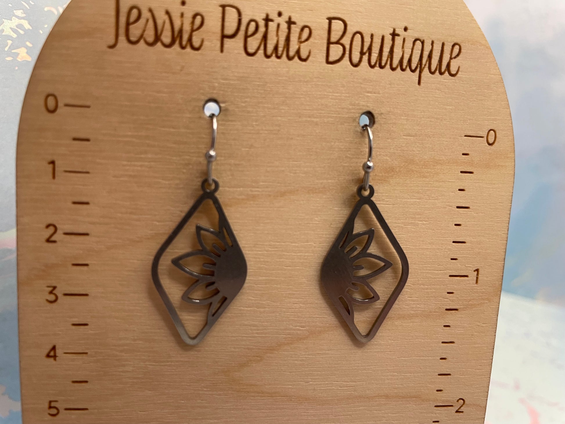 Their understated floral design makes them easy to style, whether worn casually or as a refined accent for a polished look. Finished with stainless steel, nickel-free ear wires, they offer both simplicity and ease of wear.