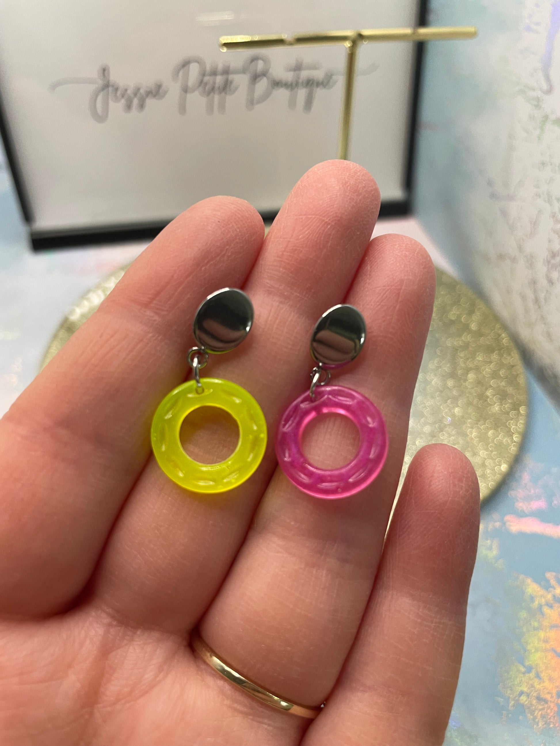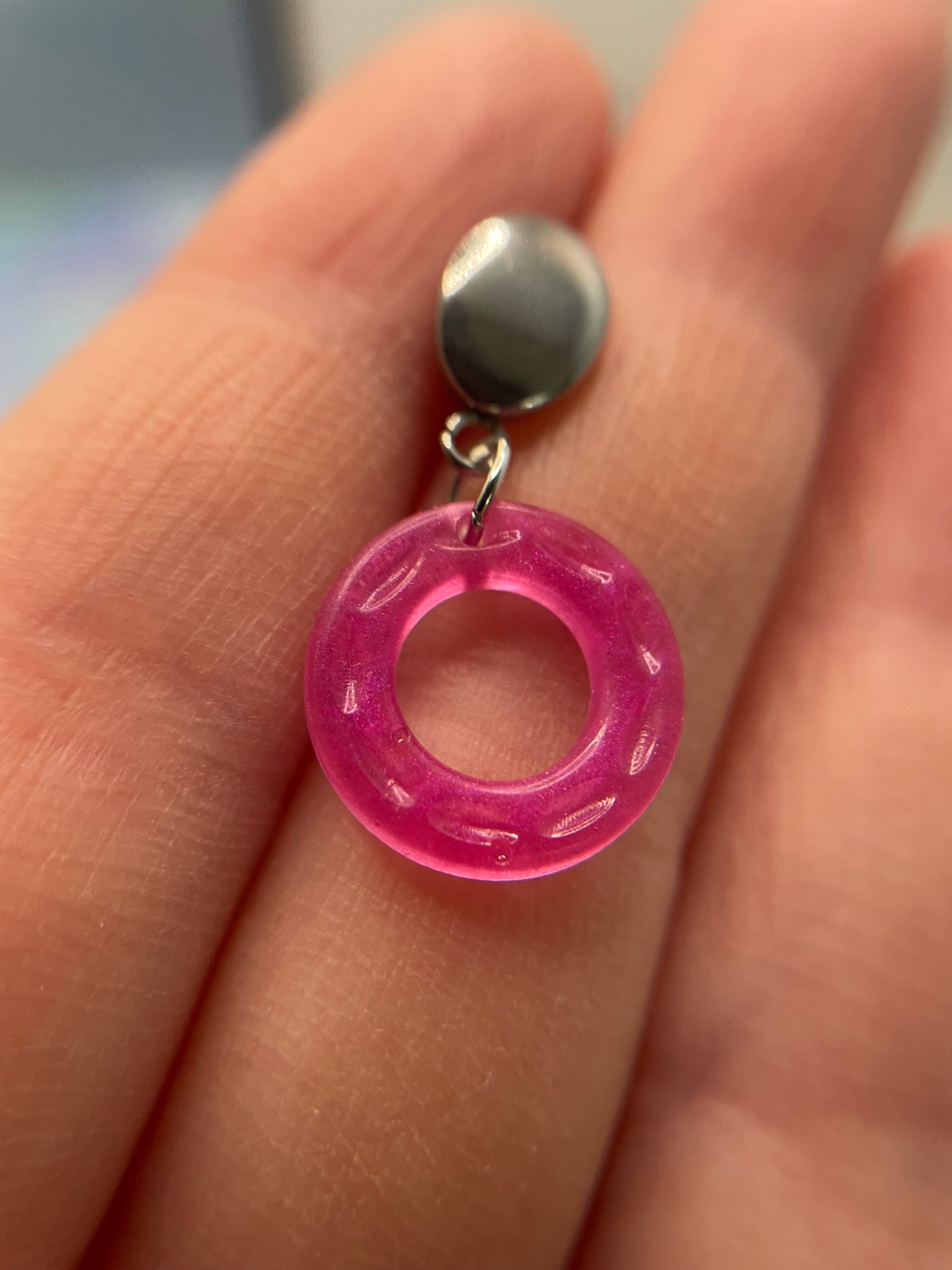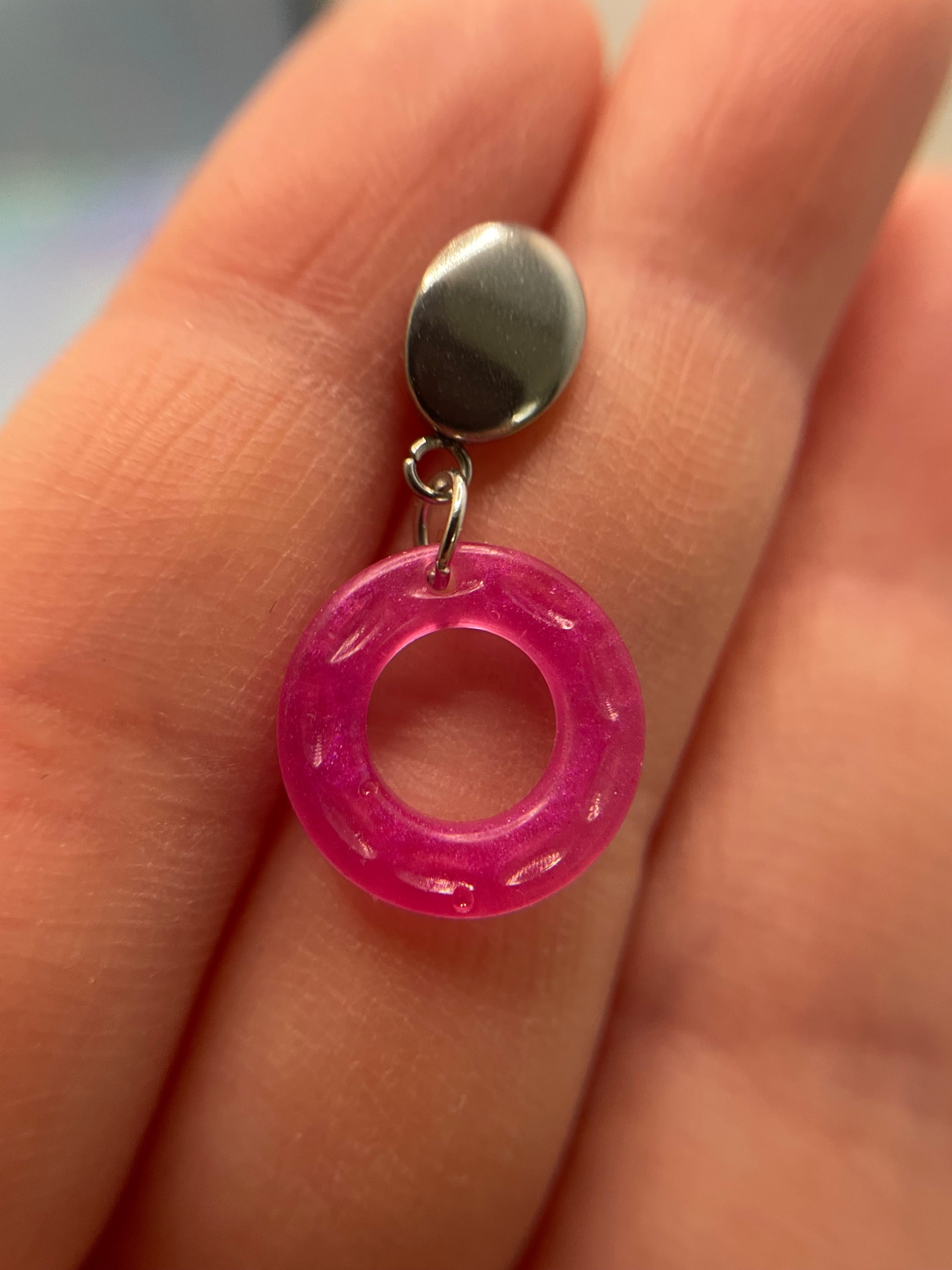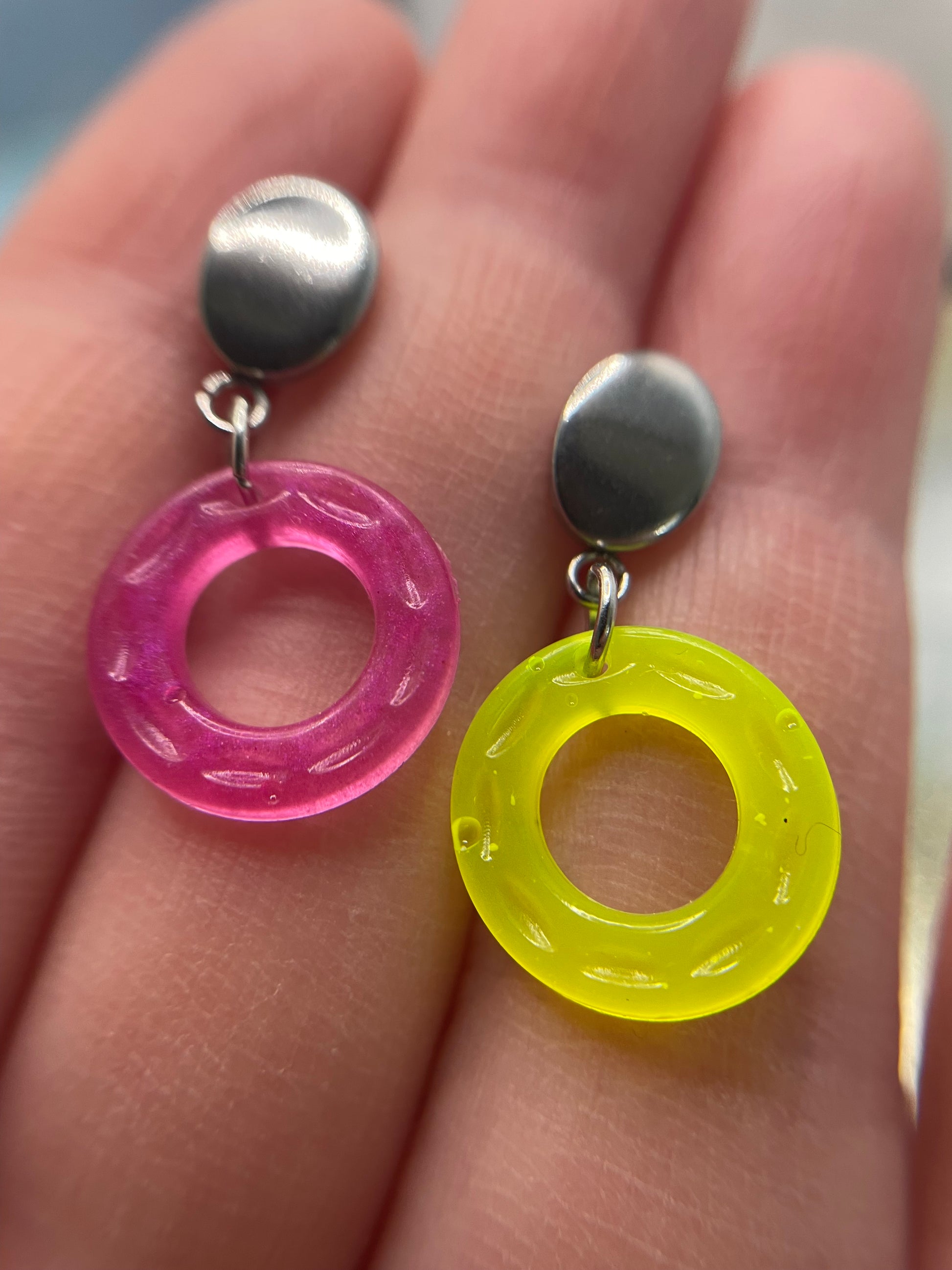 Small Neon Donut Earrings + Silver Stud – STAINLESS STEEL